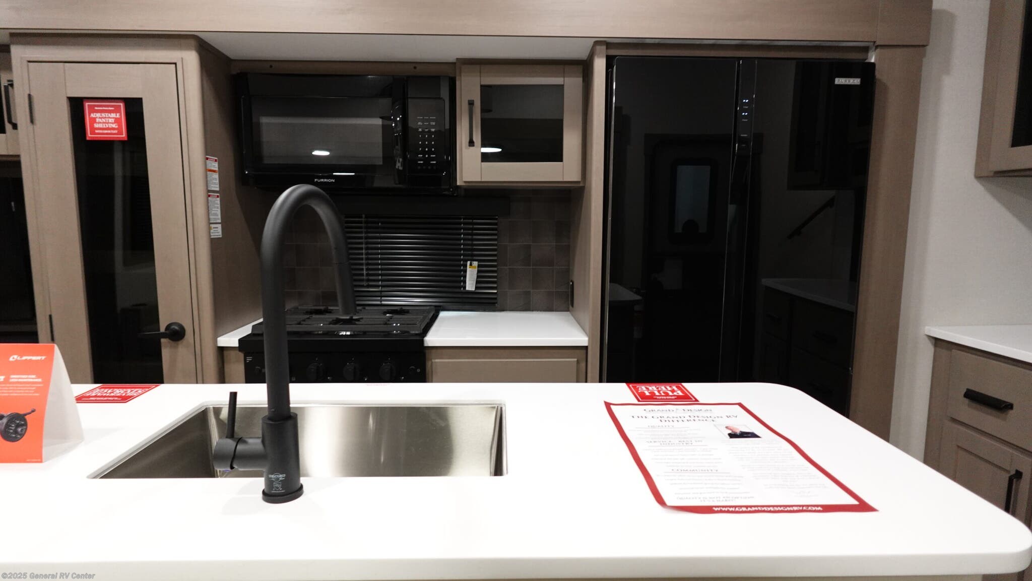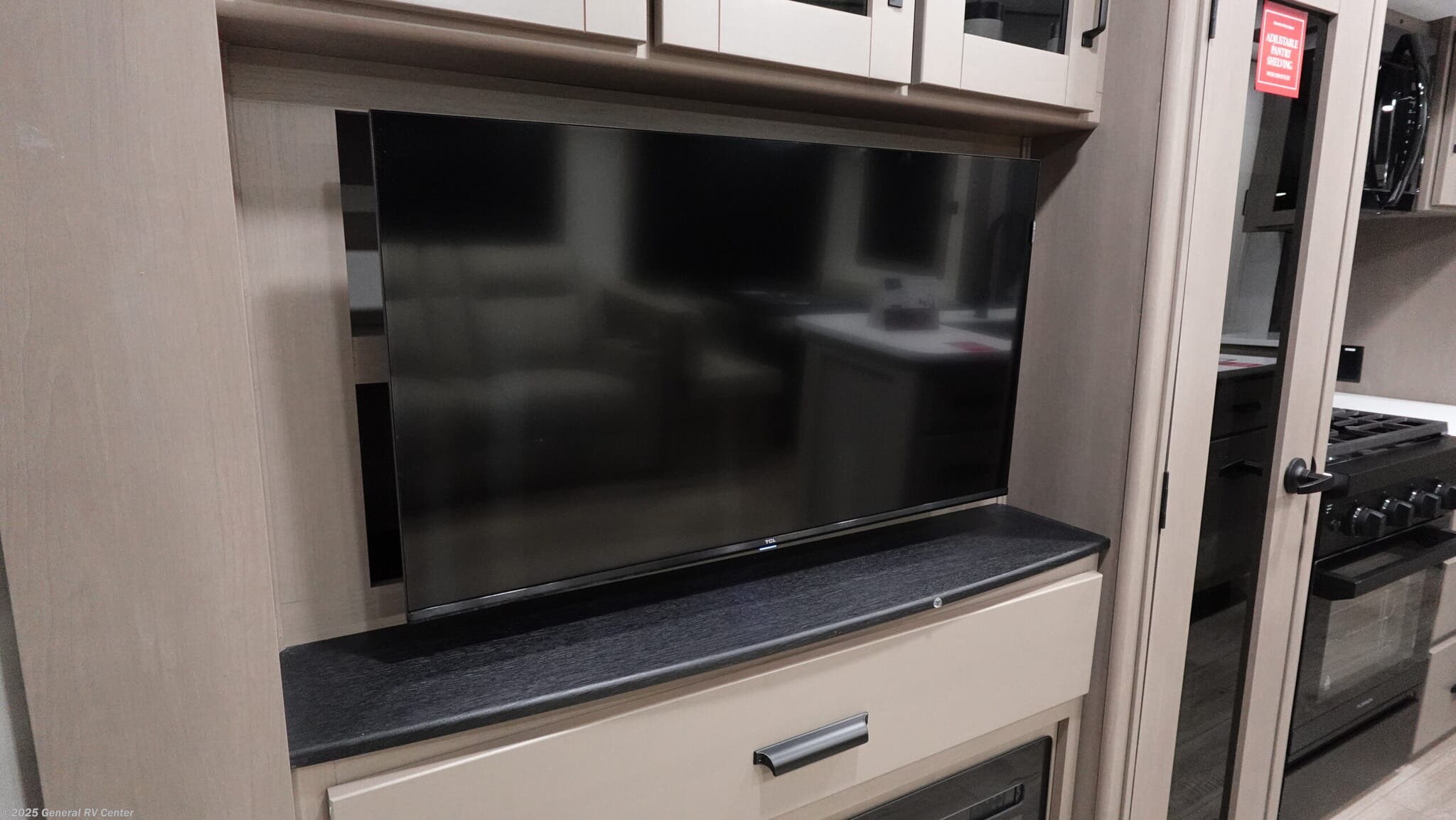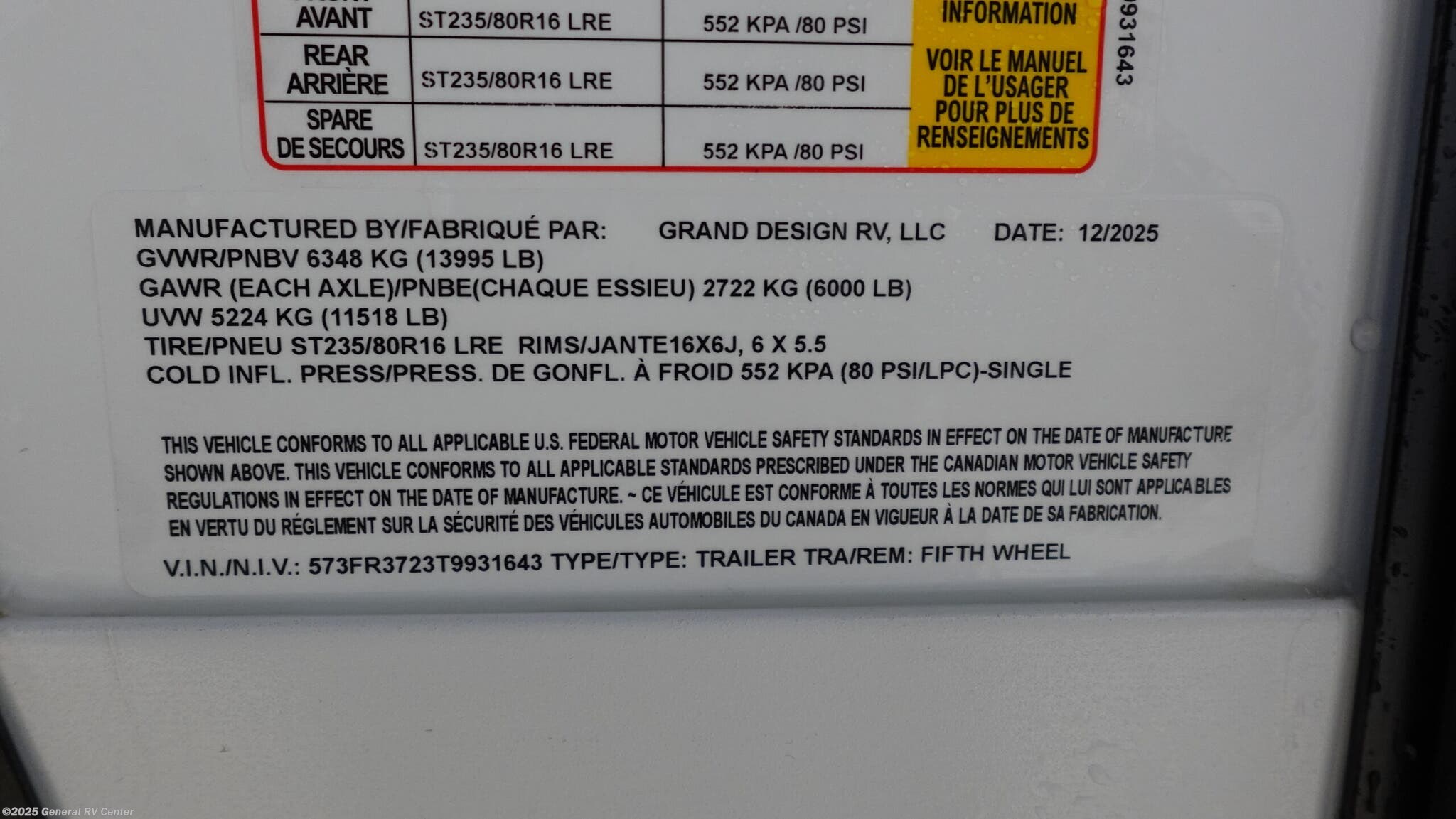 Experience the ultimate in comfort and style with the 2026 Grand Design Reflection 337RLS. This luxurious fifth wheel is designed for those who crave the perfect blend of elegance and functionality. As you enter, you'll be greeted by a spacious rear living area featuring plush theater seating and a tri-fold sofa, perfect for relaxing after a day of adventure. The entertainment center, complete with a 40" TV, ensures that movie nights are nothing short of spectacular. The center kitchen boasts a full-size refrigerator and a three-burner cooktop, making meal preparation a breeze, whether you're serving a quick snack or a gourmet dinner. Moving towards the front, the Reflection 337RLS offers a serene sanctuary in the bedroom with a 60" x 80" queen bed. The ample storage and washer/dryer prep provide convenience for extended stays. The center bath, equipped with a plastic/glass shower, offers a refreshing space to unwind. With a powered retractable awning stretching over 26 feet, outdoor relaxation is just as inviting. This RV is not just a vehicle; it's a home on wheels, ready to take you on unforgettable journeys. For more details, visit your nearest General RV dealership.