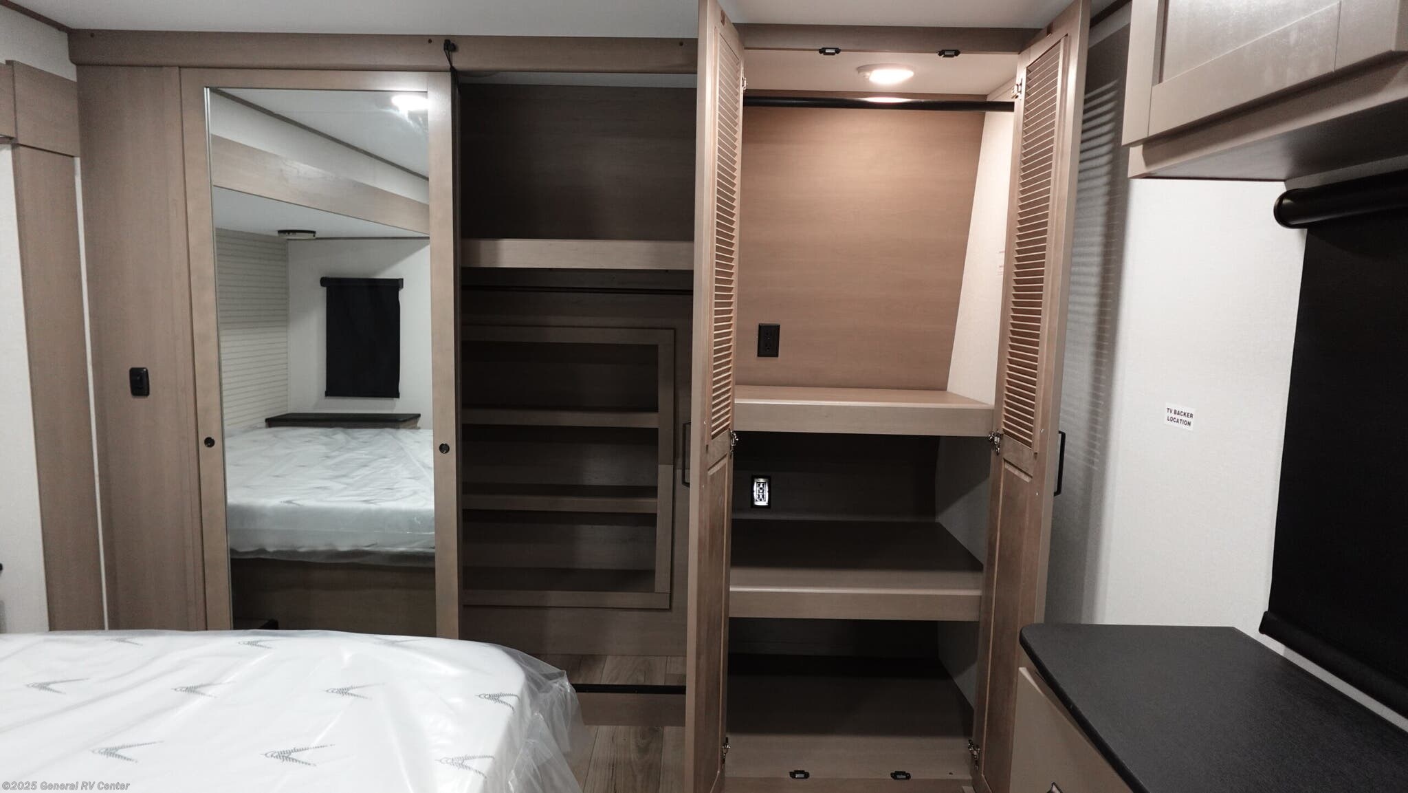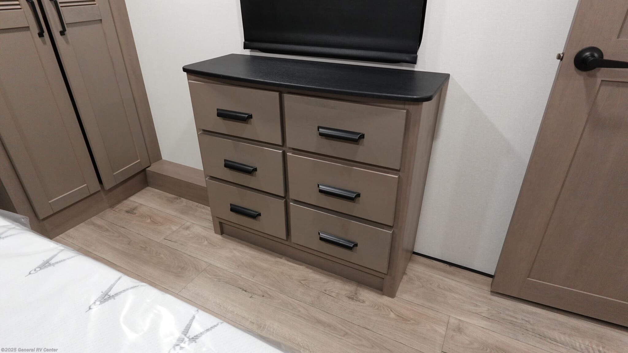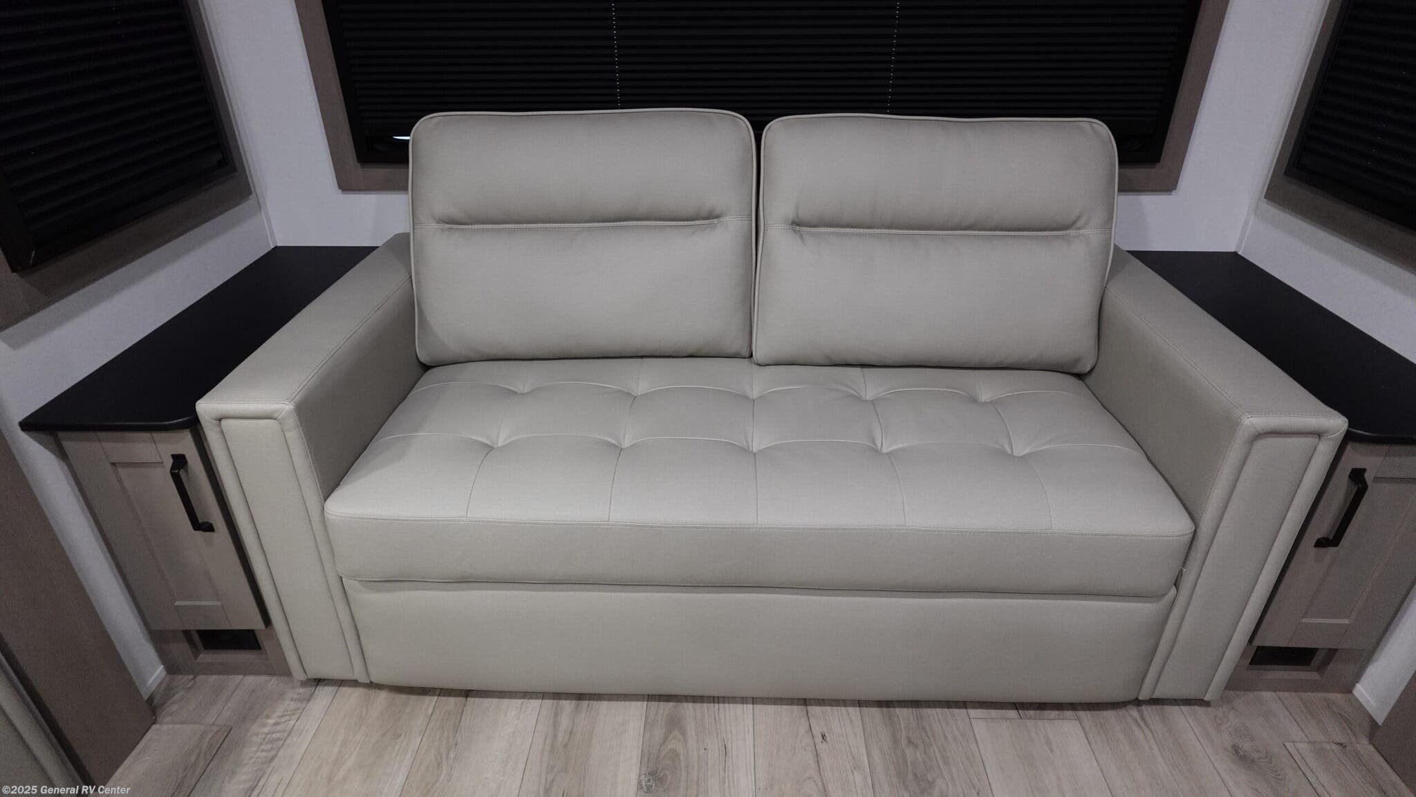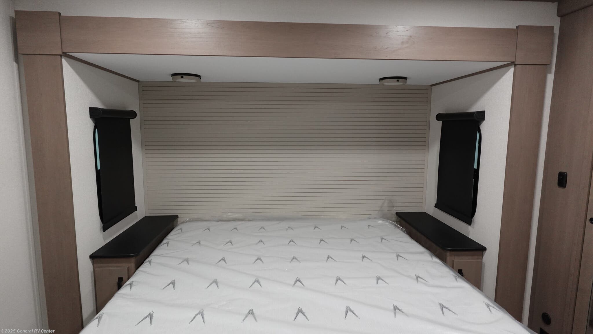 Experience the ultimate in comfort and style with the 2026 Grand Design Reflection 337RLS. This luxurious fifth wheel is designed for those who crave the perfect blend of elegance and functionality. As you enter, you'll be greeted by a spacious rear living area featuring plush theater seating and a tri-fold sofa, perfect for relaxing after a day of adventure. The entertainment center, complete with a 40" TV, ensures that movie nights are nothing short of spectacular. The center kitchen boasts a full-size refrigerator and a three-burner cooktop, making meal preparation a breeze, whether you're serving a quick snack or a gourmet dinner. Moving towards the front, the Reflection 337RLS offers a serene sanctuary in the bedroom with a 60" x 80" queen bed. The ample storage and washer/dryer prep provide convenience for extended stays. The center bath, equipped with a plastic/glass shower, offers a refreshing space to unwind. With a powered retractable awning stretching over 26 feet, outdoor relaxation is just as inviting. This RV is not just a vehicle; it's a home on wheels, ready to take you on unforgettable journeys. For more details, visit your nearest General RV dealership.