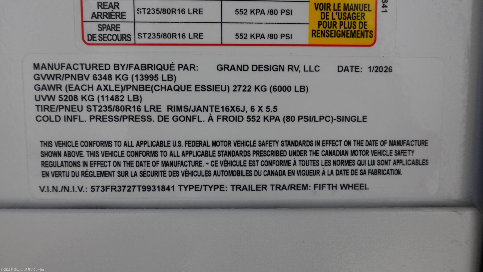- VIN573FR3727T9931841