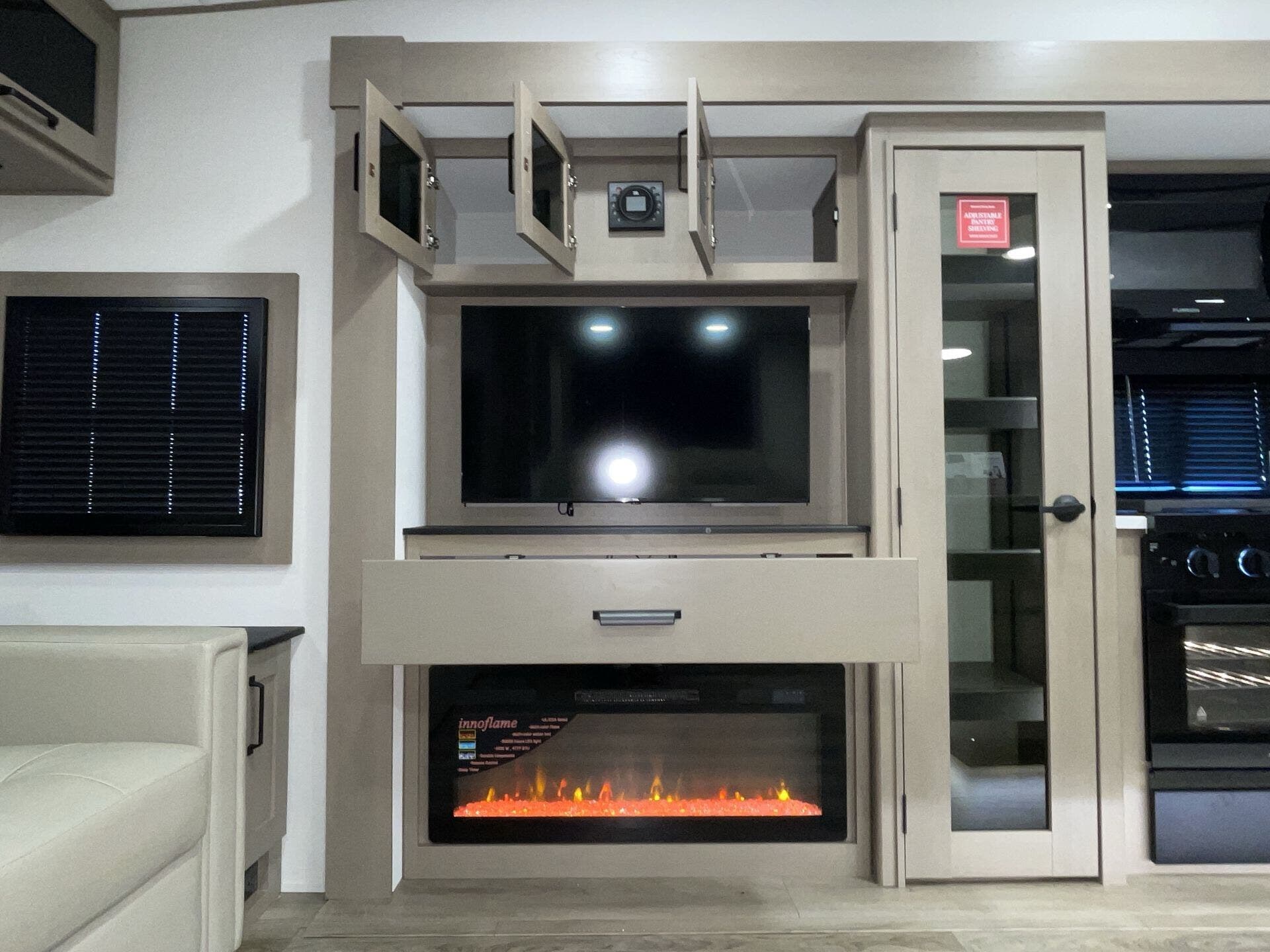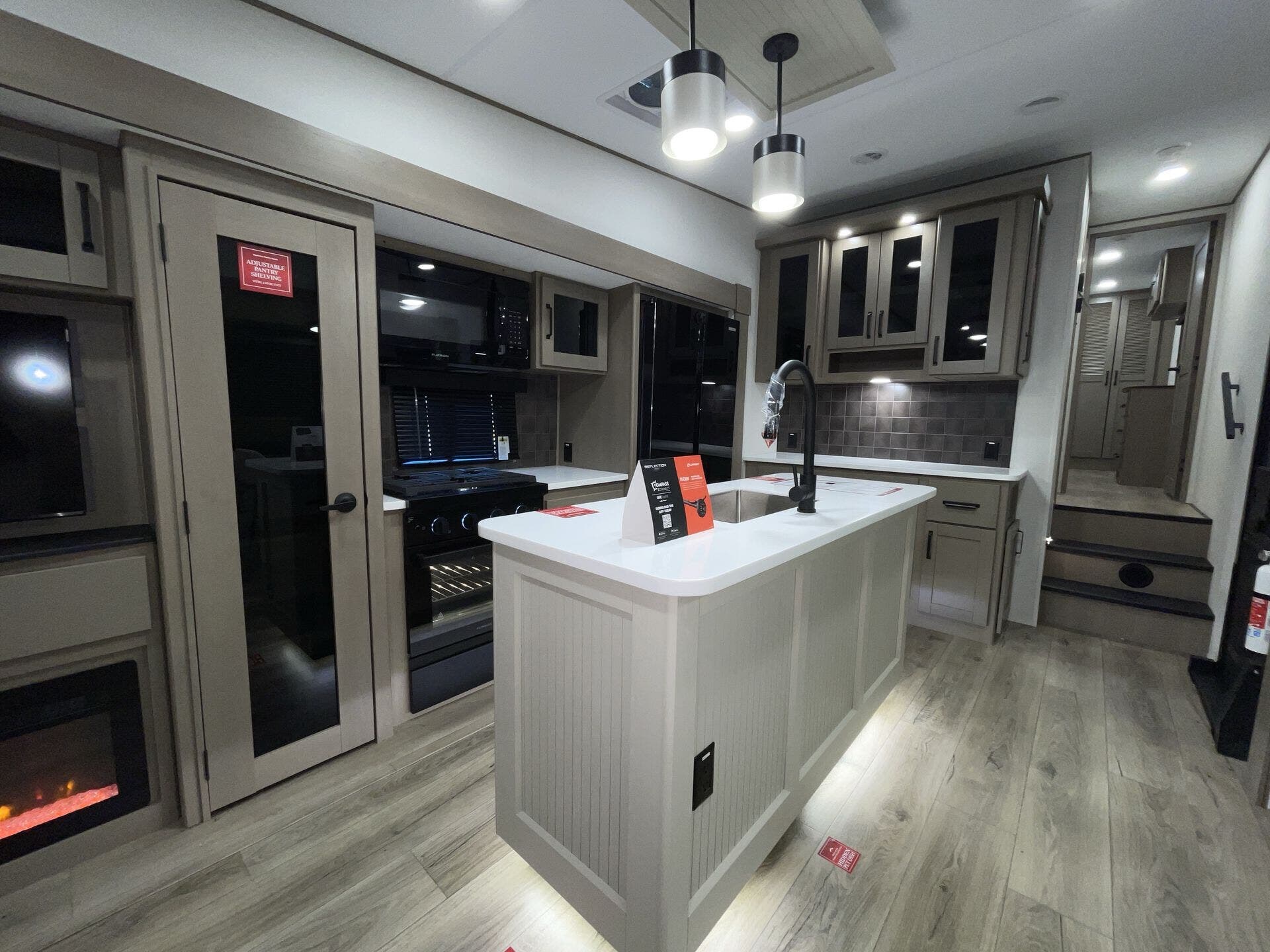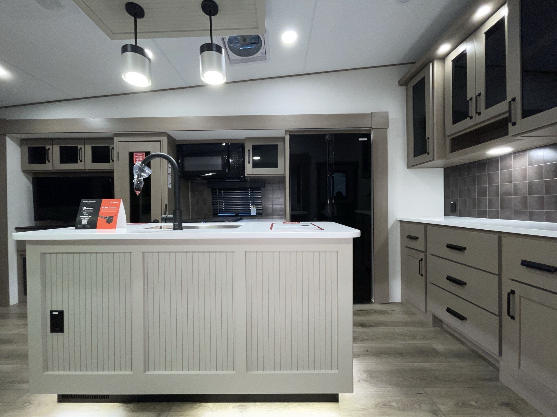- 35’ 7” triple-slide fifth-wheel with spacious rear living layout