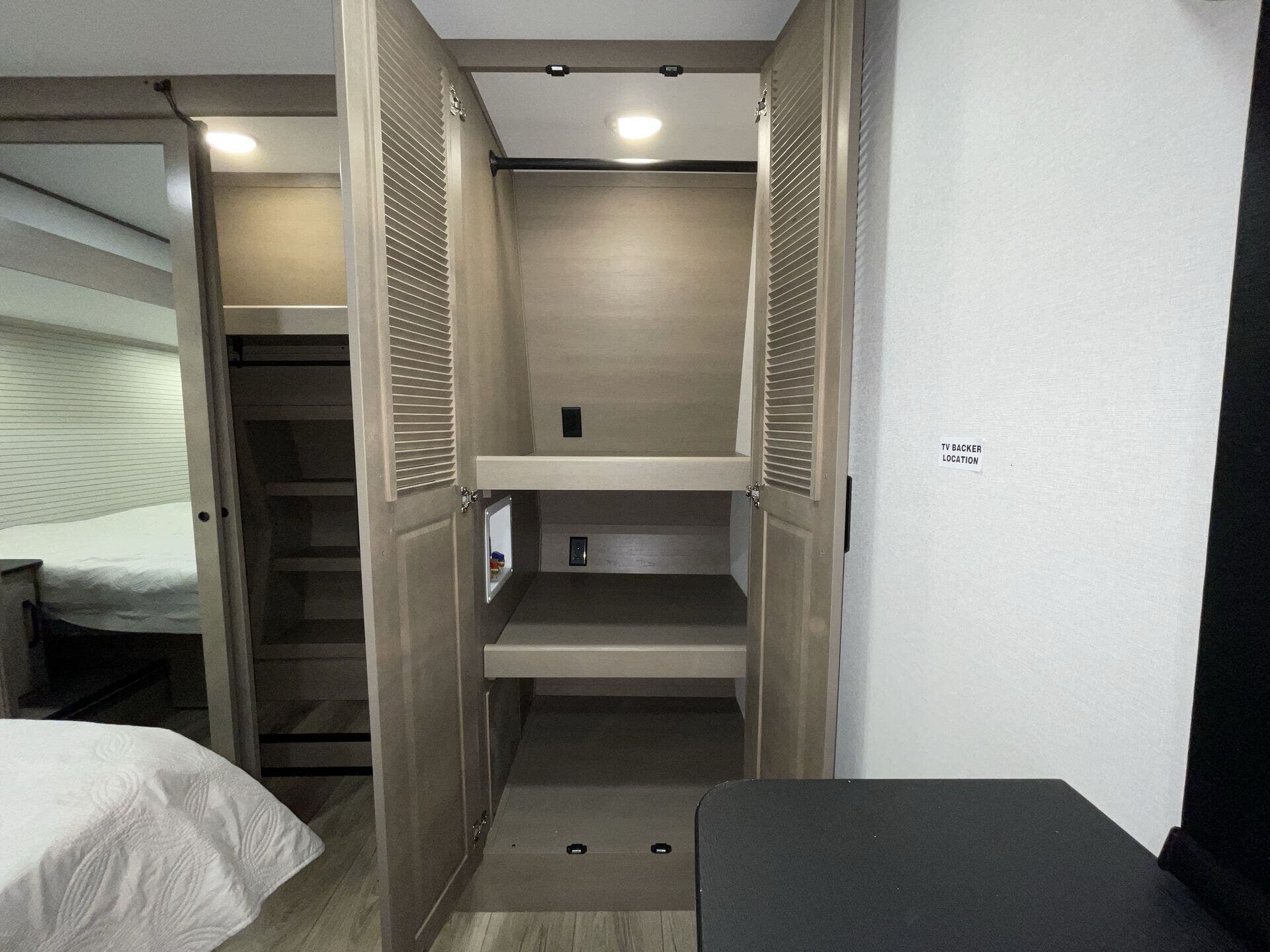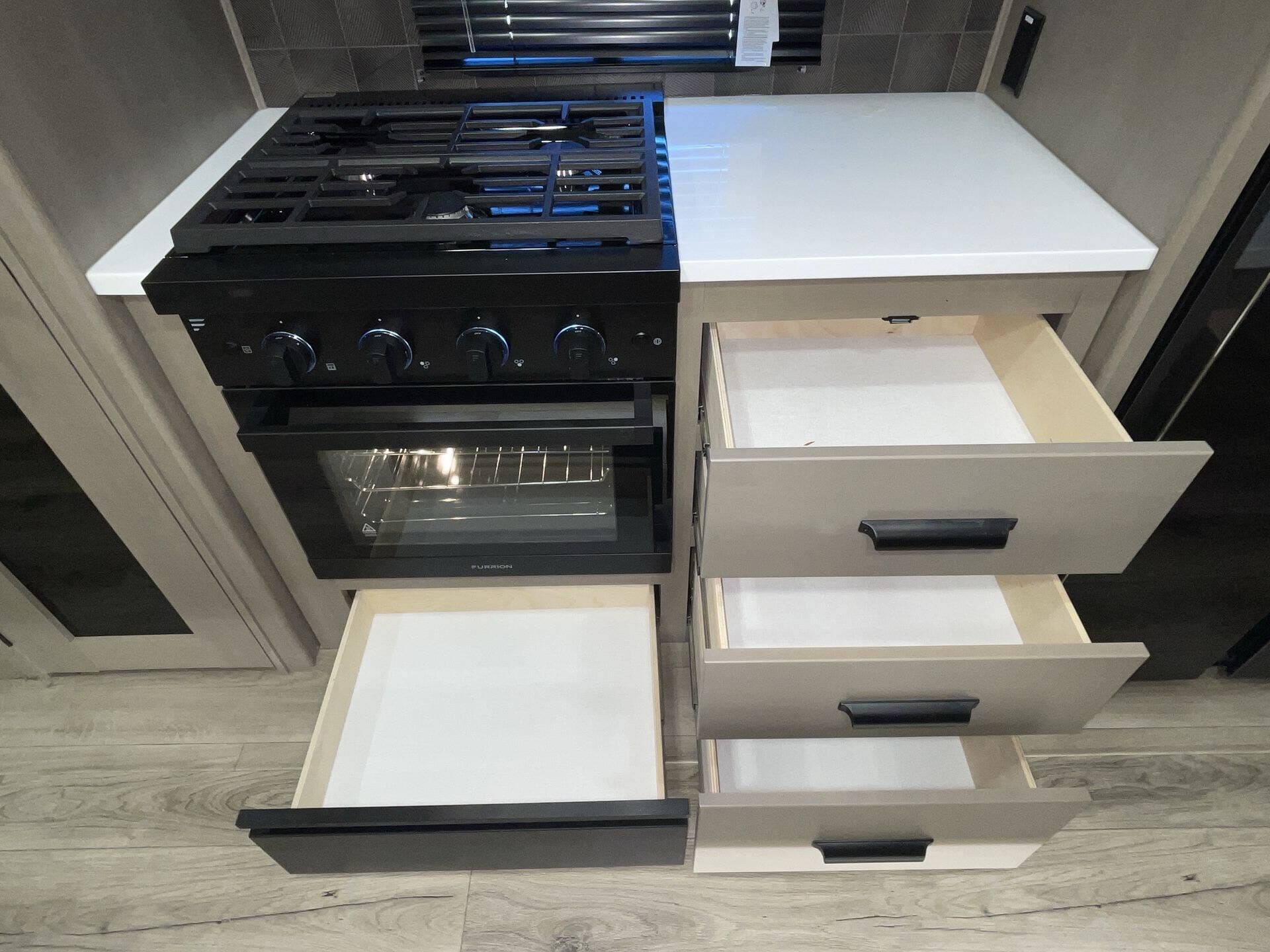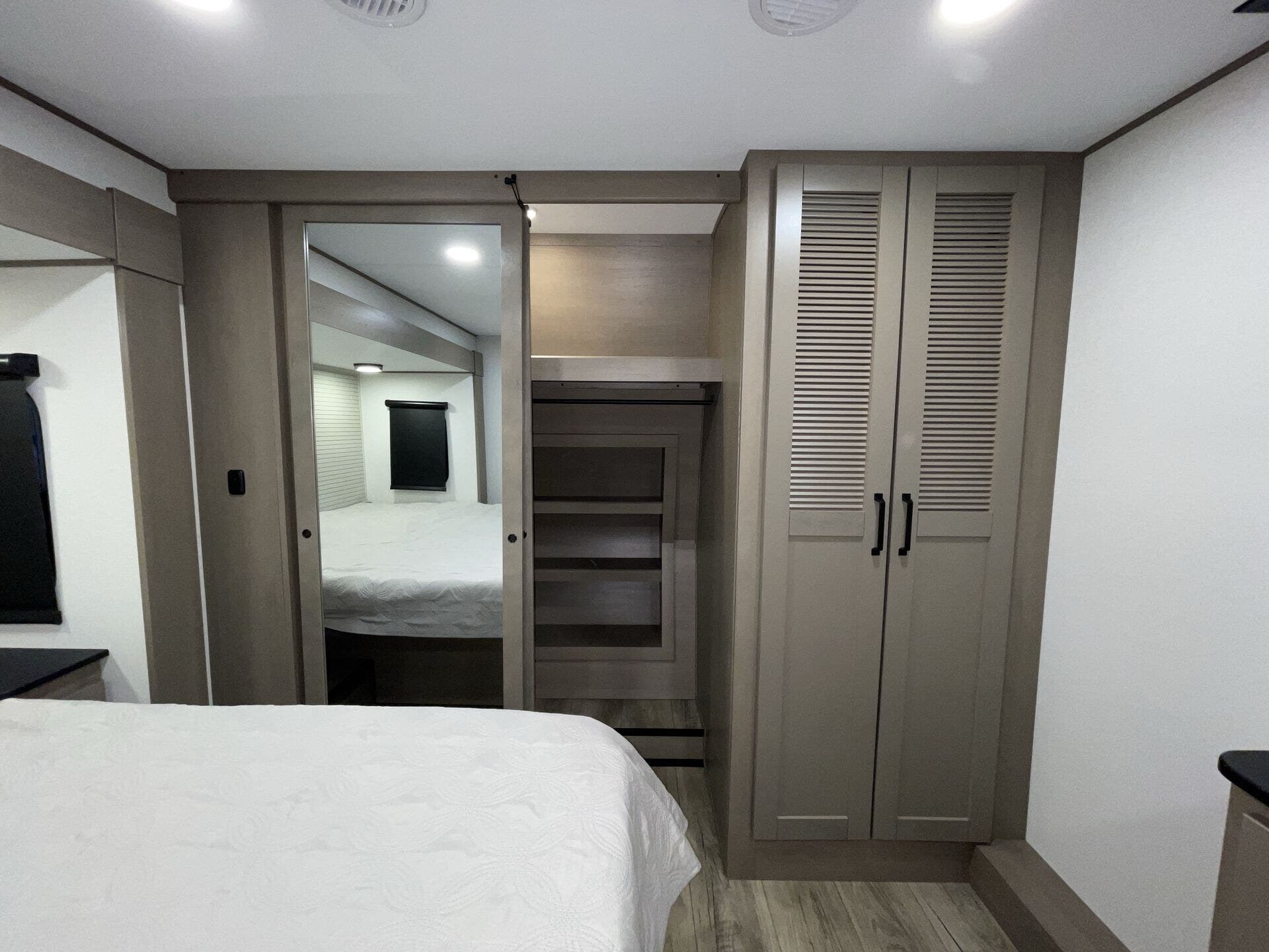 - 35’ 7” triple-slide fifth-wheel with spacious rear living layout