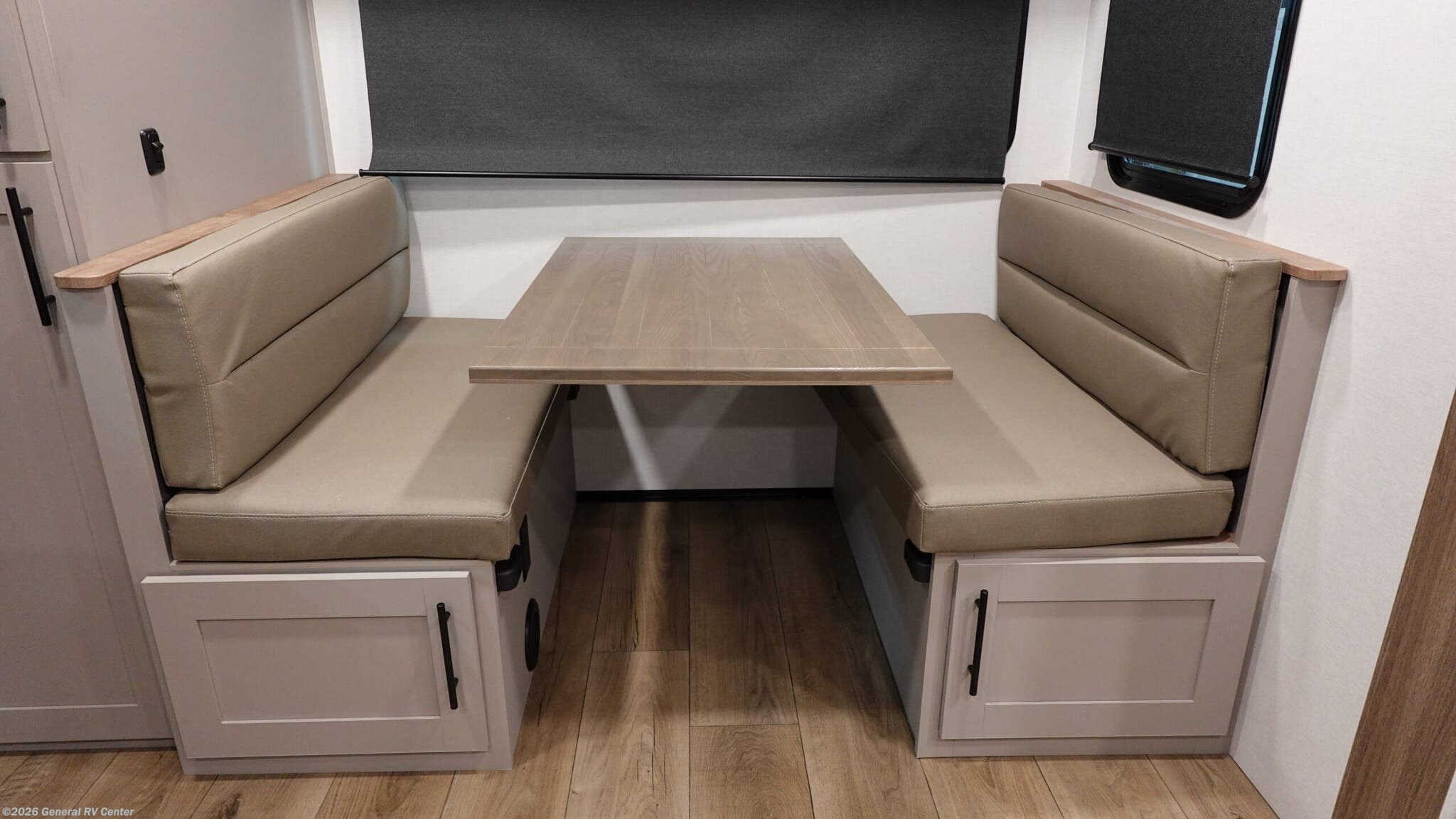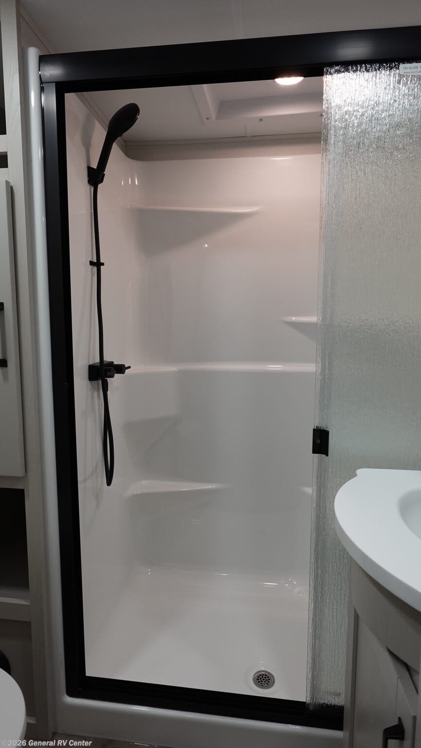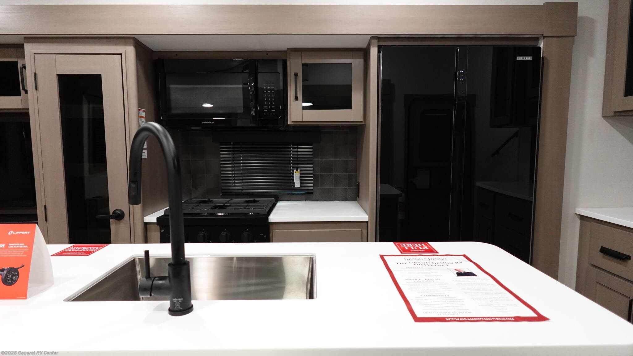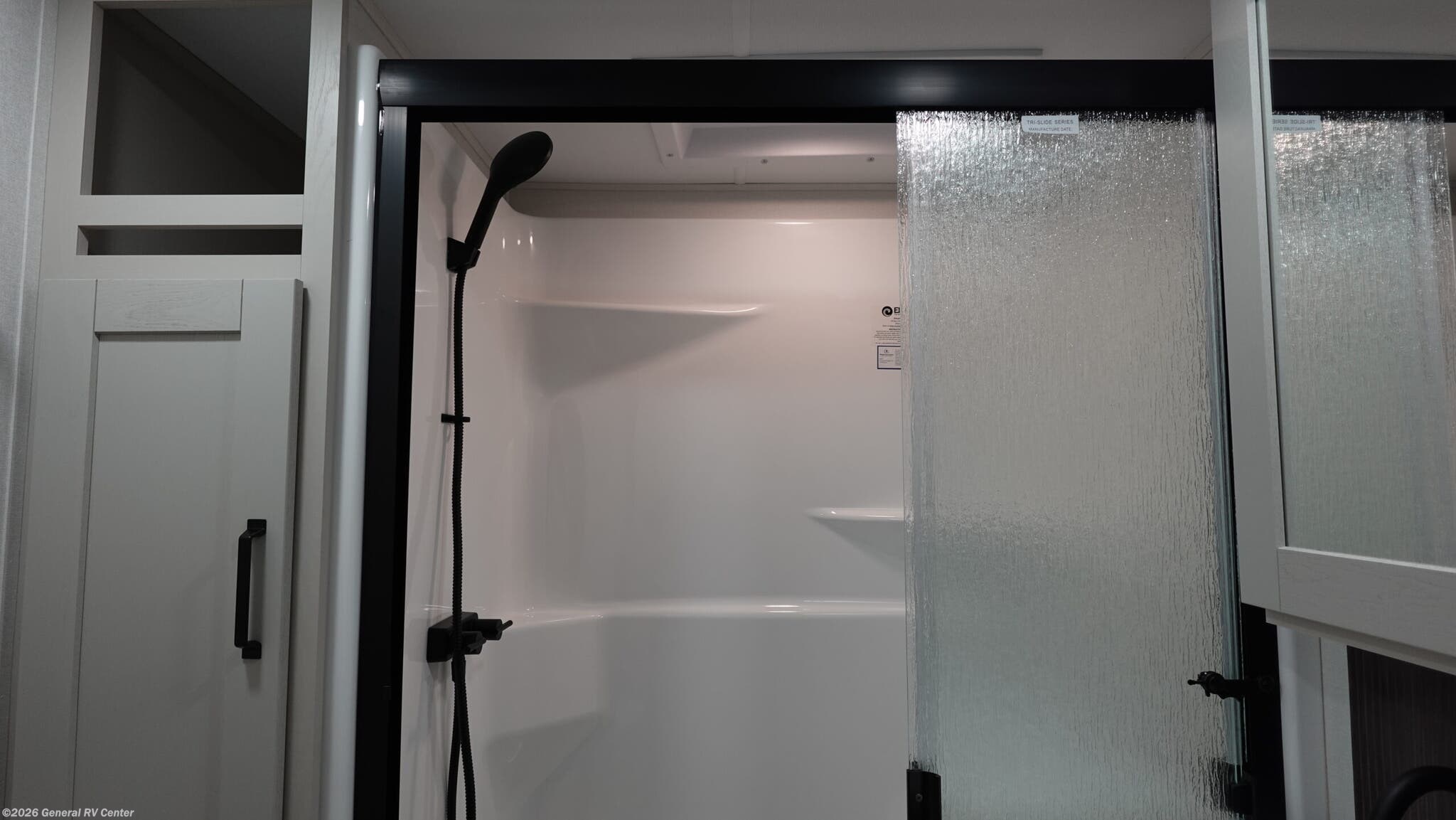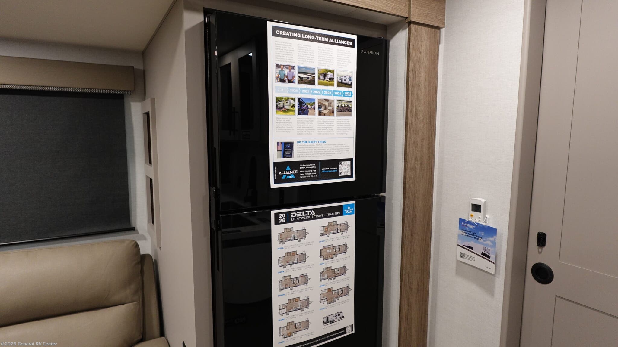Experience the ultimate in comfort and style with the 2026 Grand Design Reflection 337RLS. This luxurious fifth wheel is designed for those who crave the perfect blend of elegance and functionality. As you enter, you'll be greeted by a spacious rear living area featuring plush theater seating and a tri-fold sofa, perfect for relaxing after a day of adventure. The entertainment center, complete with a 40" TV, ensures that movie nights are nothing short of spectacular. The center kitchen boasts a full-size refrigerator and a three-burner cooktop, making meal preparation a breeze, whether you're serving a quick snack or a gourmet dinner. Moving towards the front, the Reflection 337RLS offers a serene sanctuary in the bedroom with a 60" x 80" queen bed, and the option to upgrade to a king. The ample storage and washer/dryer prep provide convenience for extended stays. The center bath, equipped with a plastic/glass shower, offers a refreshing space to unwind. With a powered retractable awning stretching over 26 feet, outdoor relaxation is just as inviting. This RV is not just a vehicle; it's a home on wheels, ready to take you on unforgettable journeys. For more details, visit your nearest General RV dealership.