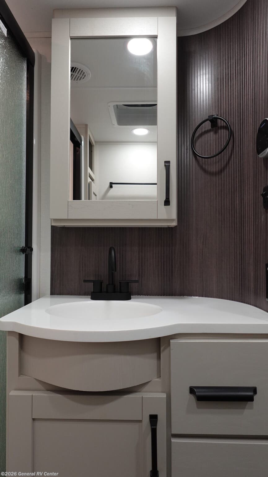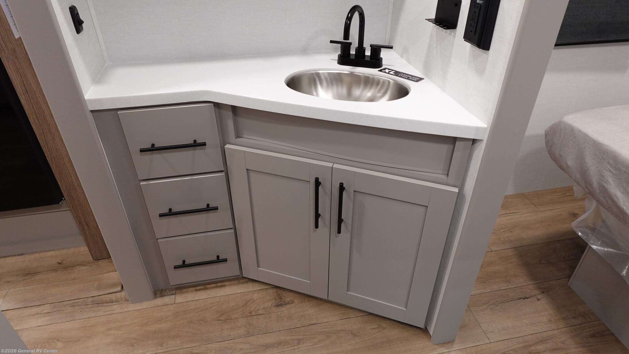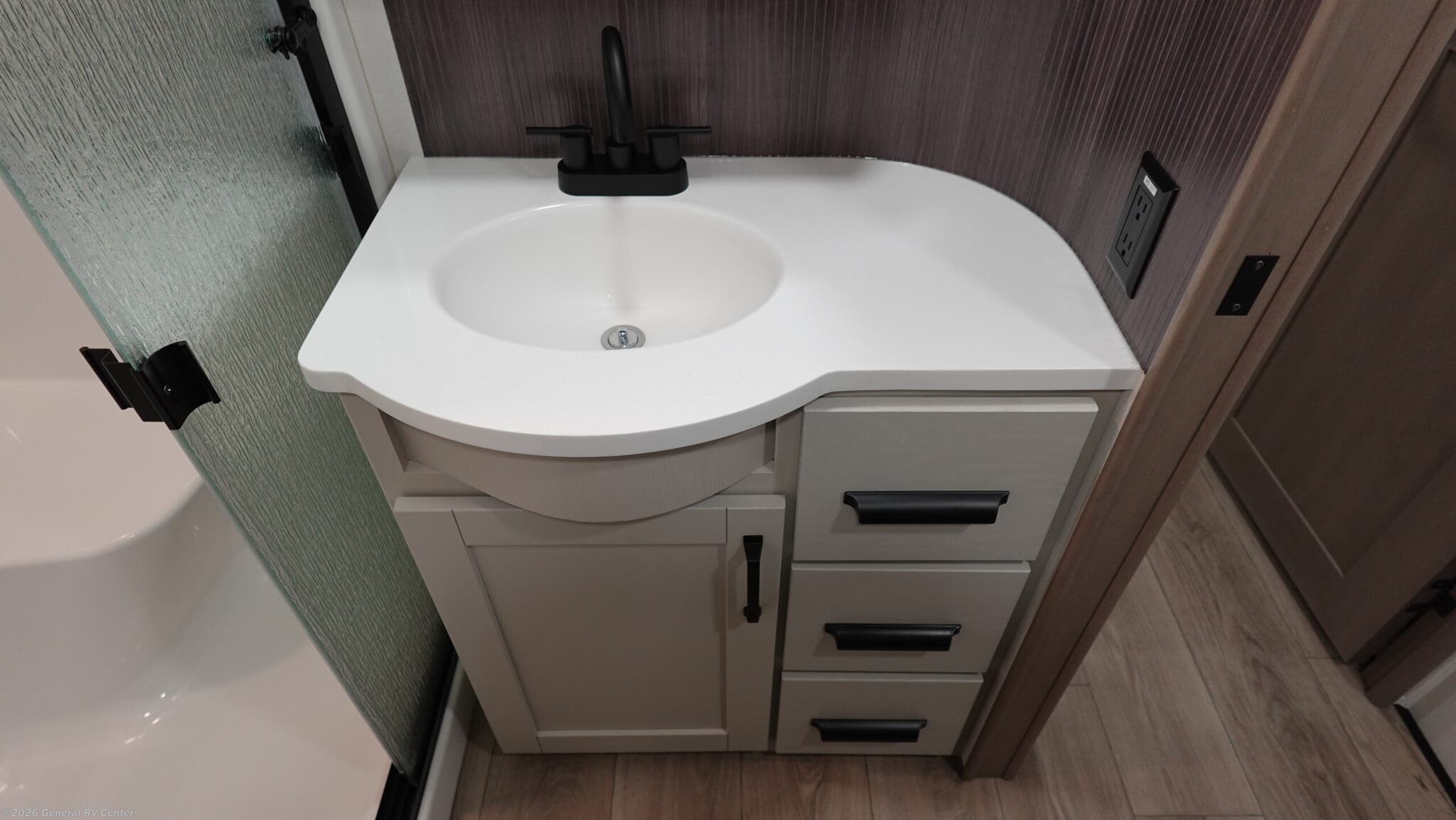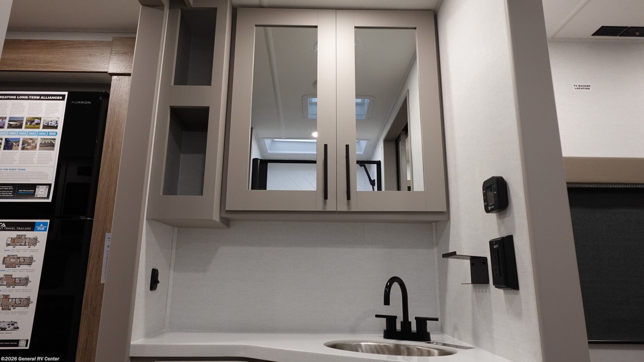 Experience the ultimate in comfort and style with the 2026 Grand Design Reflection 337RLS. This luxurious fifth wheel is designed for those who crave the perfect blend of elegance and functionality. As you enter, you'll be greeted by a spacious rear living area featuring plush theater seating and a tri-fold sofa, perfect for relaxing after a day of adventure. The entertainment center, complete with a 40" TV, ensures that movie nights are nothing short of spectacular. The center kitchen boasts a full-size refrigerator and a three-burner cooktop, making meal preparation a breeze, whether you're serving a quick snack or a gourmet dinner. Moving towards the front, the Reflection 337RLS offers a serene sanctuary in the bedroom with a 60" x 80" queen bed, and the option to upgrade to a king. The ample storage and washer/dryer prep provide convenience for extended stays. The center bath, equipped with a plastic/glass shower, offers a refreshing space to unwind. With a powered retractable awning stretching over 26 feet, outdoor relaxation is just as inviting. This RV is not just a vehicle; it's a home on wheels, ready to take you on unforgettable journeys. For more details, visit your nearest General RV dealership.