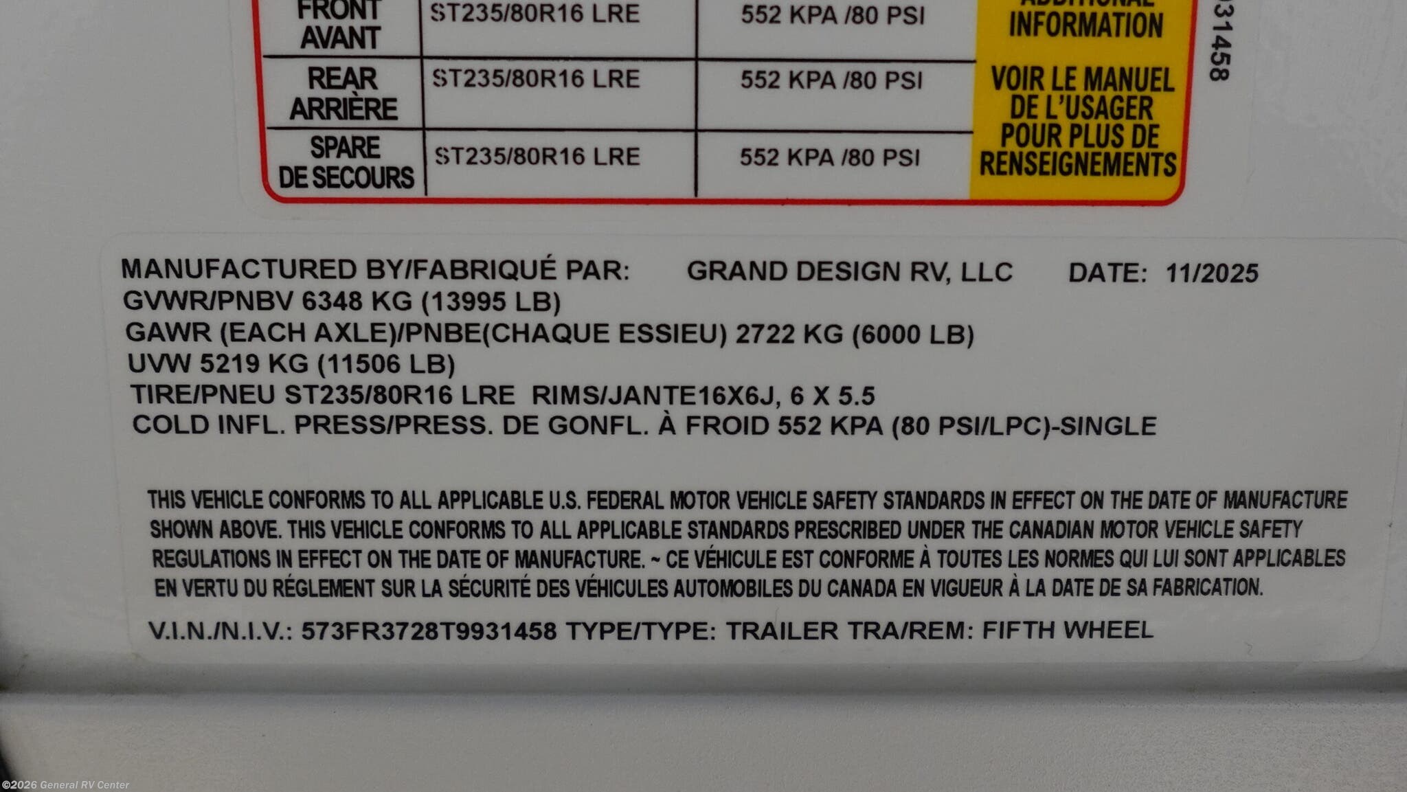 Request More Info on this 2026 Grand Design Reflection 337RLS Offered for sale by General RV Center