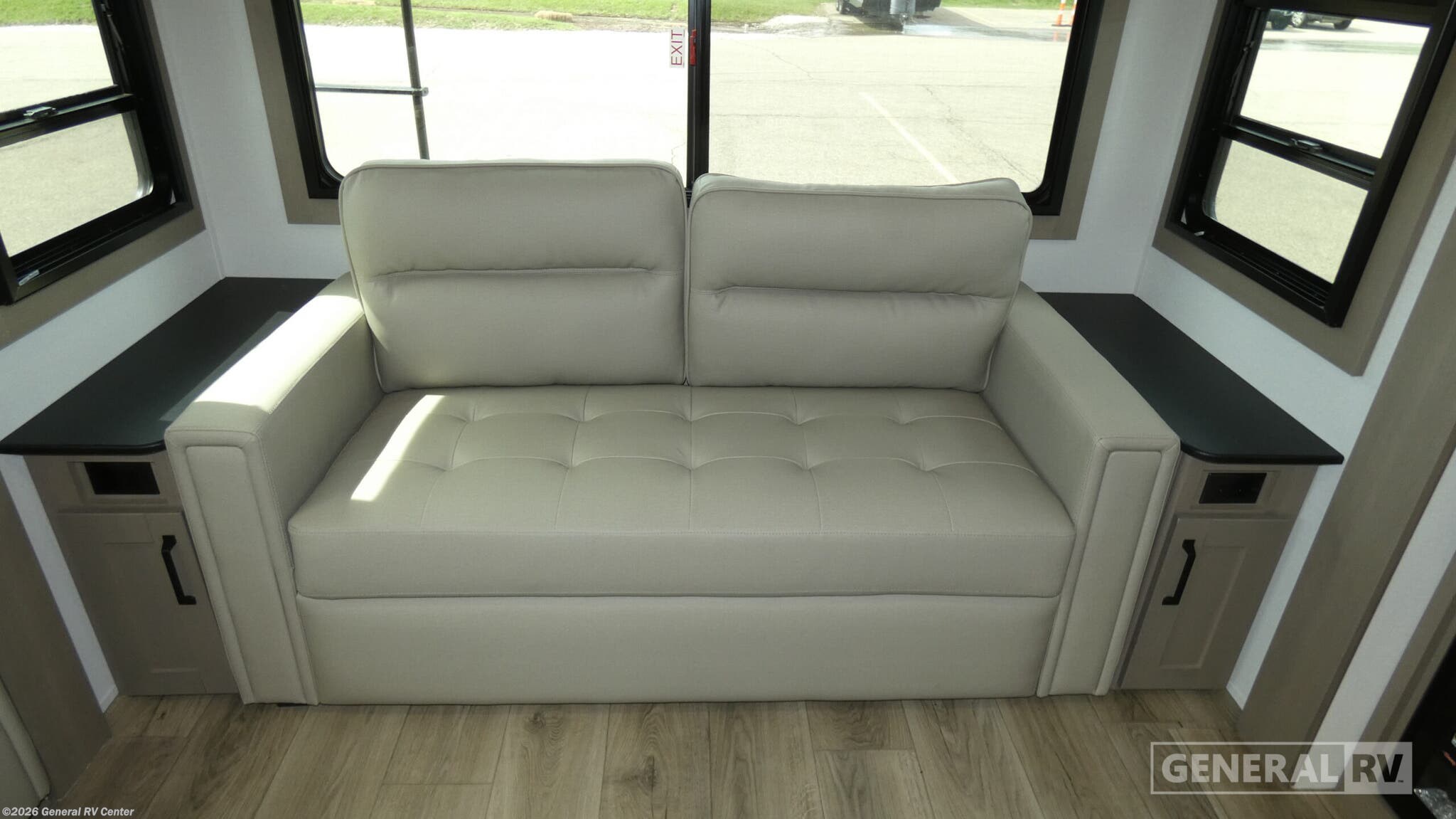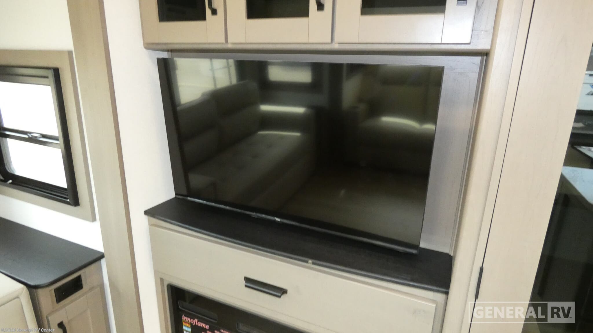 **Grand Design Reflection fifth wheel 337RLS highlights:** * Rear Tri-Fold Sofa * Fireplace * Hutch * Theater Seating * Solar Package You can enjoy a spacious rear living area in this RV with dual opposing slides offering you entertainment, kitchen amenities, seating and windows for great views! The rear tri-fold sofa also converts into extra sleeping space for an extra guest or two.There are theater seats to enjoy while you place your drinks in the cupholders and watch the entertainment center with a 40" LED HDTV and fireplace. The pantry is big enough to store your favorite snacks, and the kitchen island will make meal prepping easier, plus there is a 16 cu. ft. refrigerator to store any leftovers. The full bathroom has a 30" x 48" fiberglass shower and a linen closet to store your towels. The front private bedroom has a comfortable queen bed slide that can be switched out for the optional king bed, a dresser with overhead cabinets, and a full wall wardrobe that is prepped to add a washer and dryer so that you can extend your camping trip with clean clothes! With any Reflection fifth wheel by Grand Design, you will have a solar panel for off-grid camping and a 60 amp charge controller and inverter prep, a Universal All-In-One docking station, unobstructed pass-through storage, and Goodyear Endurance tires. Each is constructed of gel coat exterior sidewalls, residential 5" truss rafters, walk-on roof decking, a fiberglass and radiant foil roof and front cap insulation plus laminated aluminum framed side walls, roof and end walls in slide rooms. Head inside to enjoy residential hardwood cabinet doors, premium Congoleum flooring, a spacious shower with a glass door, and many more comforts!