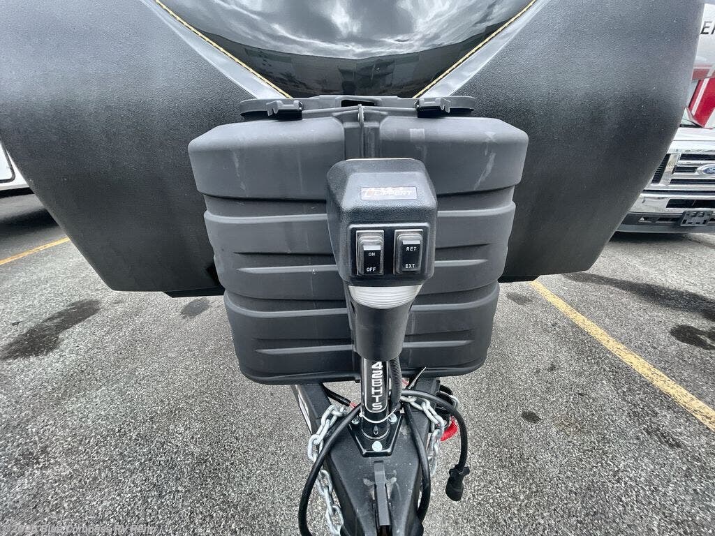 Finding the perfect trailer for a larger group is simple with this Reflection! The rear bunkhouse might be the first reason you fall in love because of the slide out with a flip top bunk above a tri-fold sofa, a second bunk bed with a window on the opposite side and storage below, and the large rear window for great views. The outside kitchen might be another reason allowing you to enjoy the outdoors while providing meals for everyone, and/or the inside gourmet kitchen with a 16-cu. ft. refrigerator, an island, and additional storage space. Everyone can gather together and relax on the theater seating with cupholders and the booth dinette across from the entertainment center and fireplace. An optional tri-fold sofa can be chosen in place of the theater seat, and an optional free-standing dinette can be chosen in place of the booth dinette if you prefer these seating options. The full bathroom includes a space savings sliding door and linen storage, and the bedroom gives you a front walk-around queen bed with storage for your clothes, plus there is an additional wardrobe with washer and dryer prep if you choose to add these appliances.