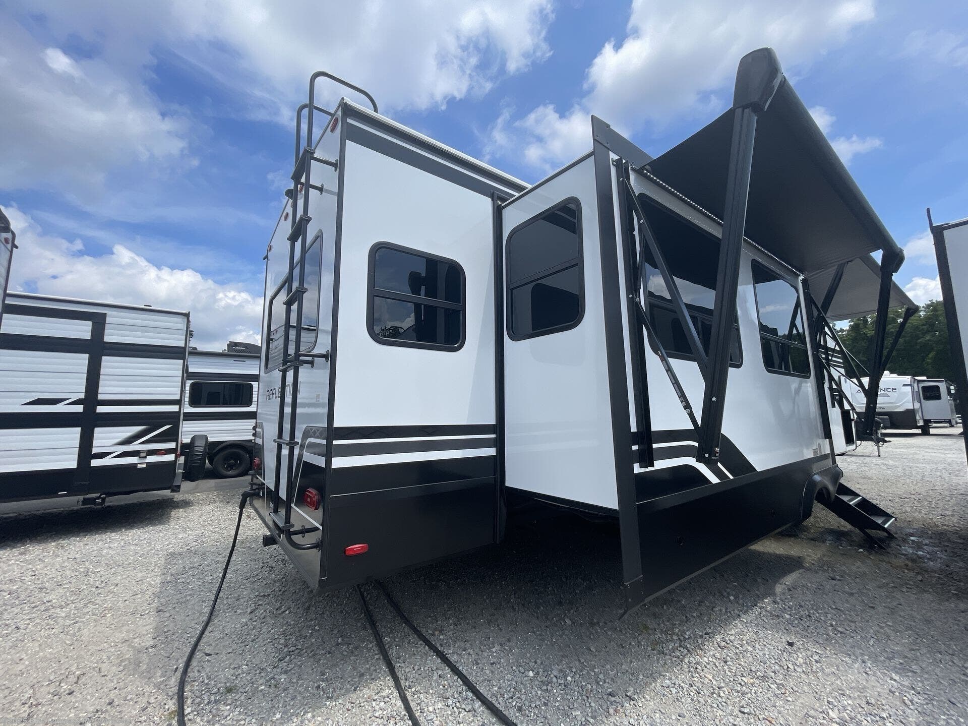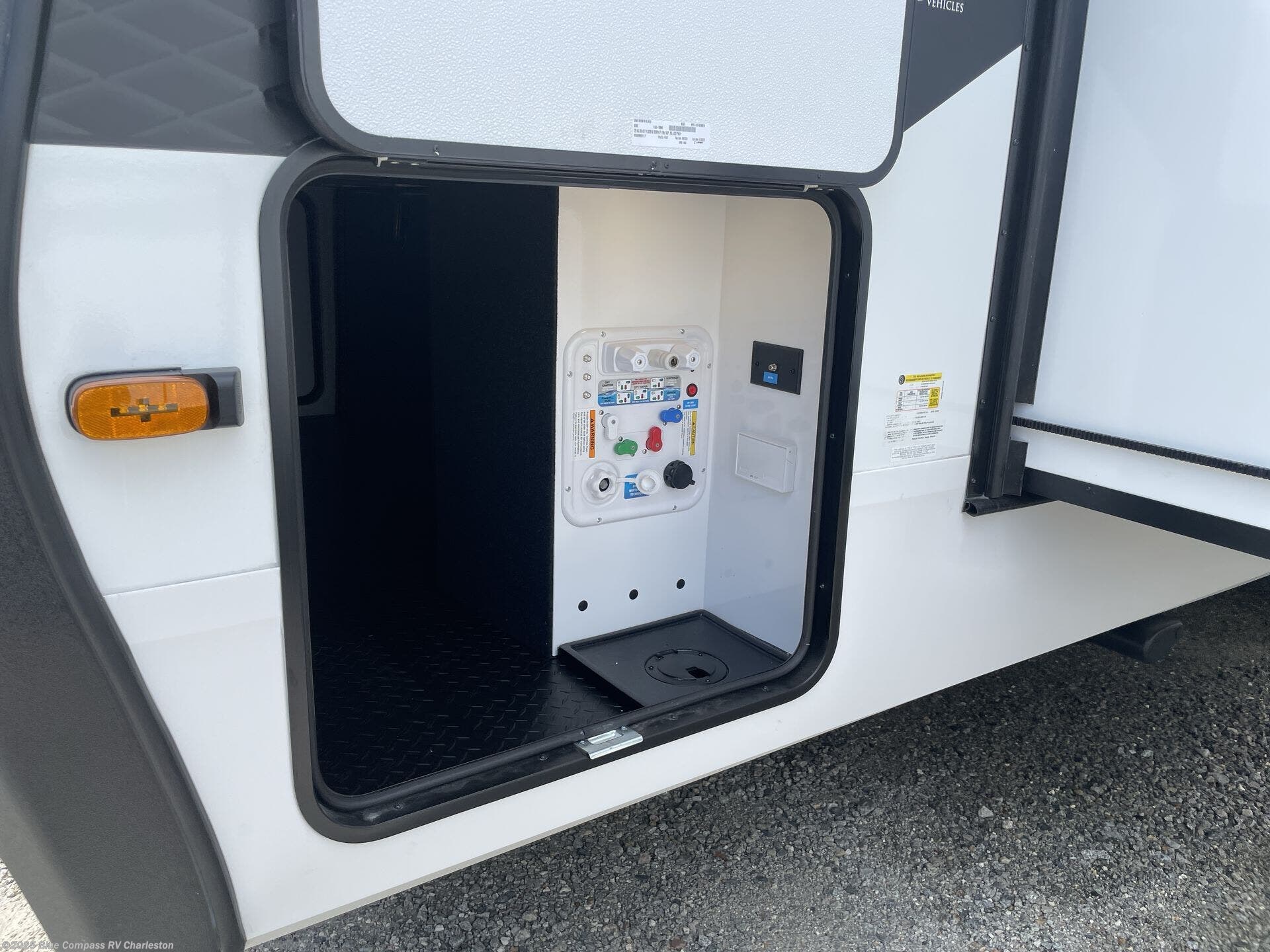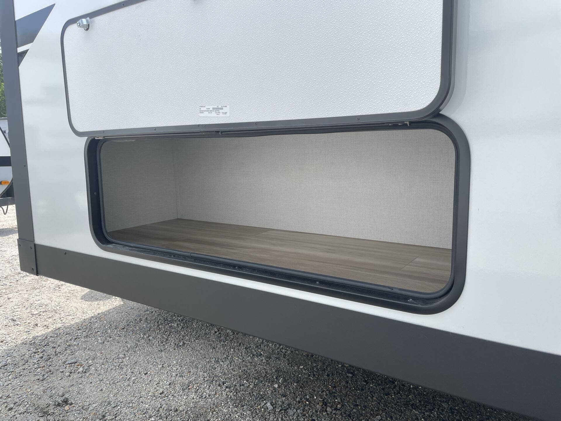 This rear living travel trailer will be perfect for extended stays at the campground or quick weekend trips to the lake! Once you've unloaded your gear from the pass-thru storage, head inside to relax on the rear tri-fold sofa with an adjustable headrest or on the theater seating across from the 40" TV and fireplace. There is also a booth dinette where you can dine together, or you can choose the optional swivel dinette. The spacious kitchen island will make meal time easier than ever, plus there is a pantry and 16 cu. ft. 12V refrigerator for food storage. The full bath is right next to the front private bedroom for easy nighttime use, and speaking of nighttime, you're sure to sleep soundly on the queen bed slide. There is also a large front closet, TV prep, plus washer and dryer prep if you choose to add these appliances.