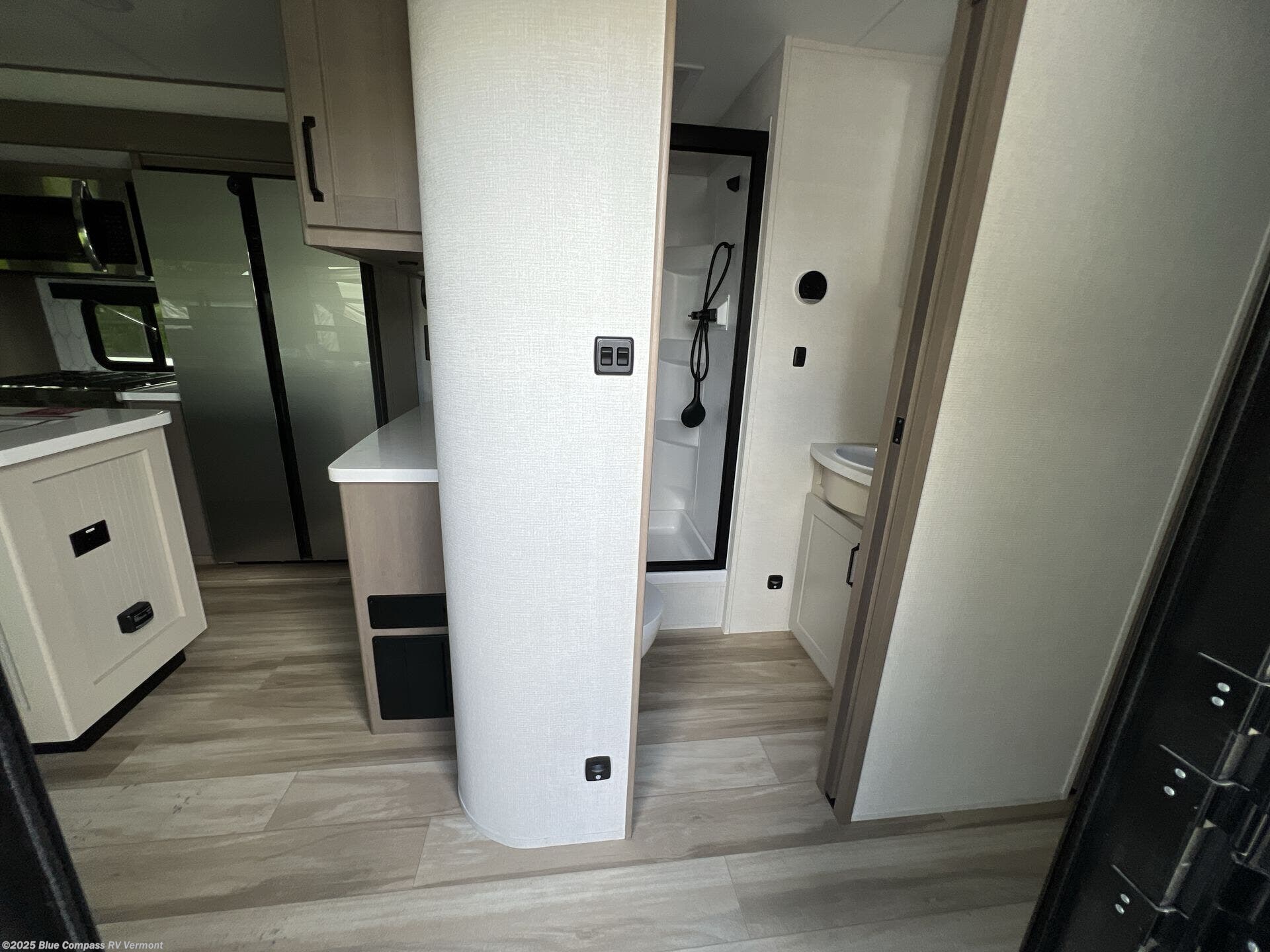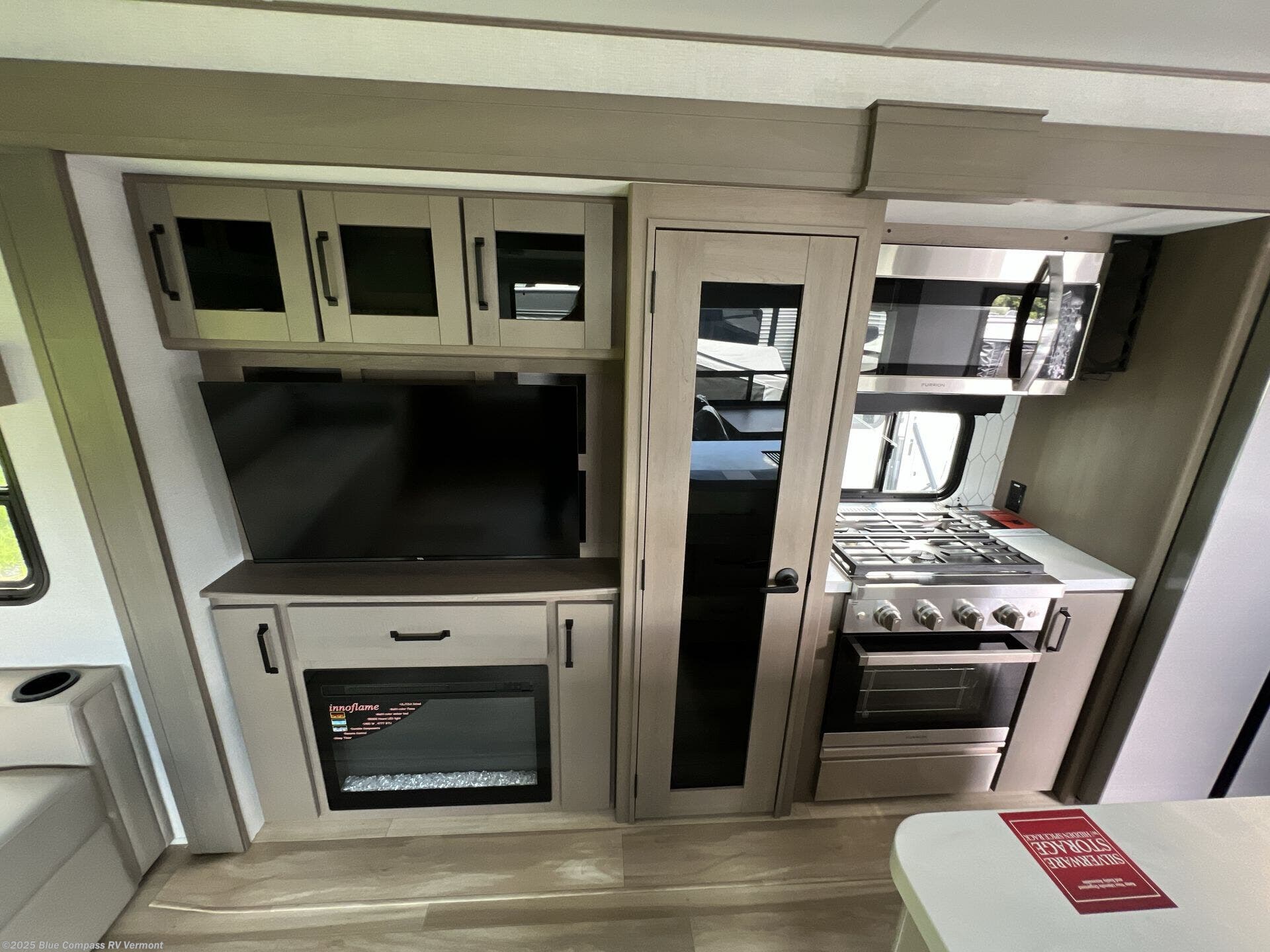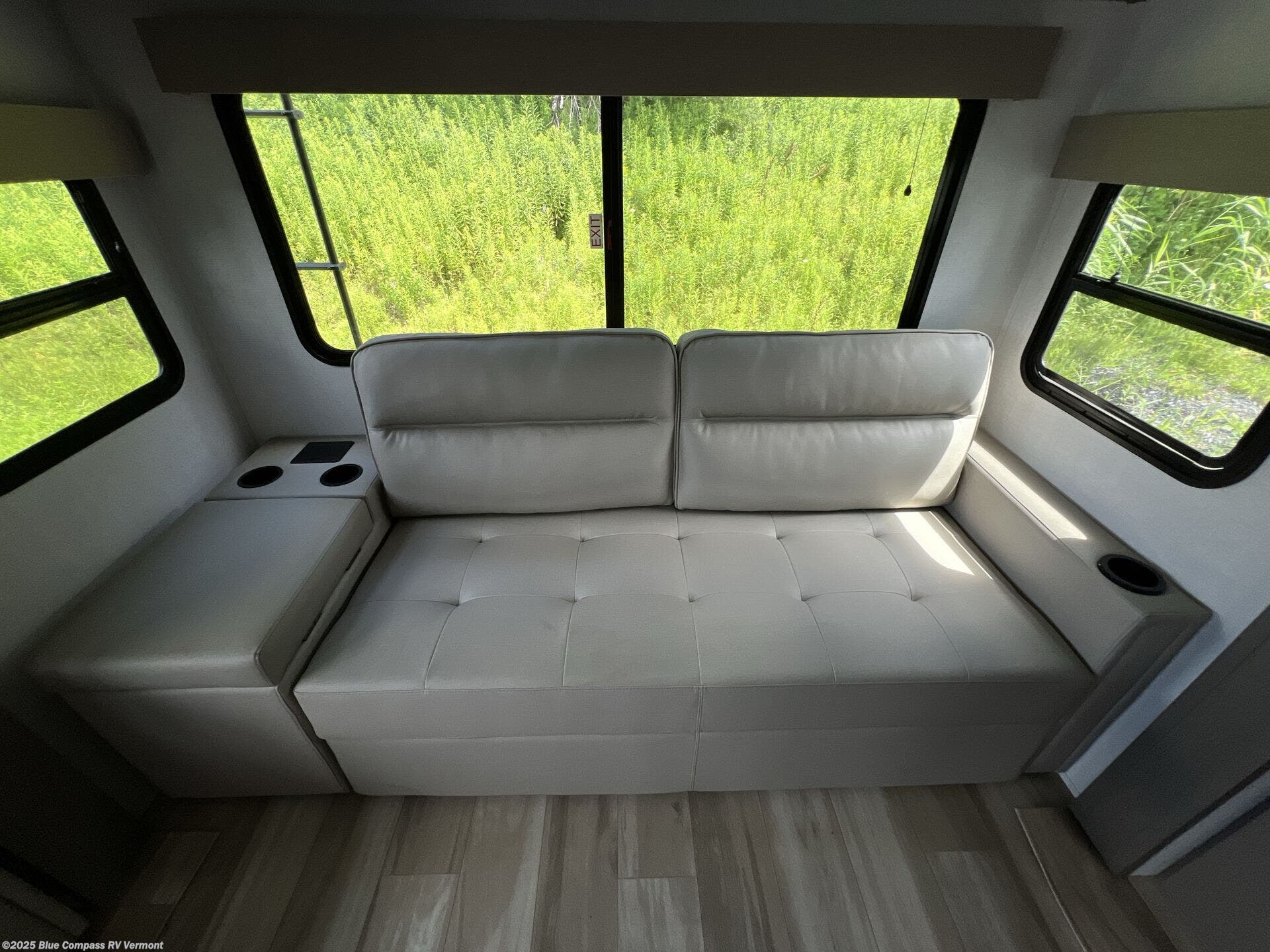 This rear living travel trailer will be perfect for extended stays at the campground or quick weekend trips to the lake! Once you've unloaded your gear from the pass-thru storage, head inside to relax on the rear tri-fold sofa with an adjustable headrest or on the theater seating across from the 40" TV and fireplace. There is also a booth dinette where you can dine together, or you can choose the optional swivel dinette. The spacious kitchen island will make meal time easier than ever, plus there is a pantry and 16 cu. ft. 12V refrigerator for food storage. The full bath is right next to the front private bedroom for easy nighttime use, and speaking of nighttime, you're sure to sleep soundly on the queen bed slide. There is also a large front closet, TV prep, plus washer and dryer prep if you choose to add these appliances.