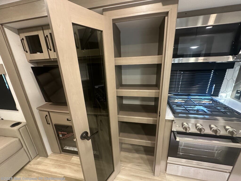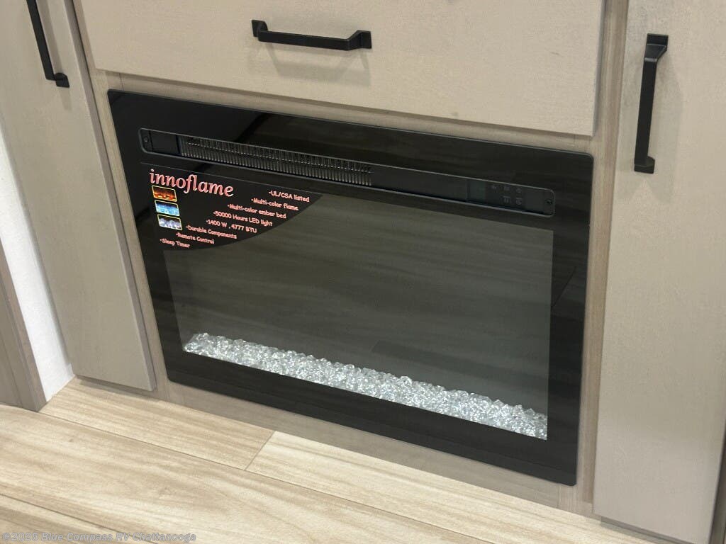 This rear living travel trailer will be perfect for extended stays at the campground or quick weekend trips to the lake! Once you've unloaded your gear from the pass-thru storage, head inside to relax on the rear tri-fold sofa with an adjustable headrest or on the theater seating across from the 40" TV and fireplace. There is also a booth dinette where you can dine together, or you can choose the optional swivel dinette. The spacious kitchen island will make meal time easier than ever, plus there is a pantry and 16 cu. ft. 12V refrigerator for food storage. The full bath is right next to the front private bedroom for easy nighttime use, and speaking of nighttime, you're sure to sleep soundly on the queen bed slide. There is also a large front closet, TV prep, plus washer and dryer prep if you choose to add these appliances.