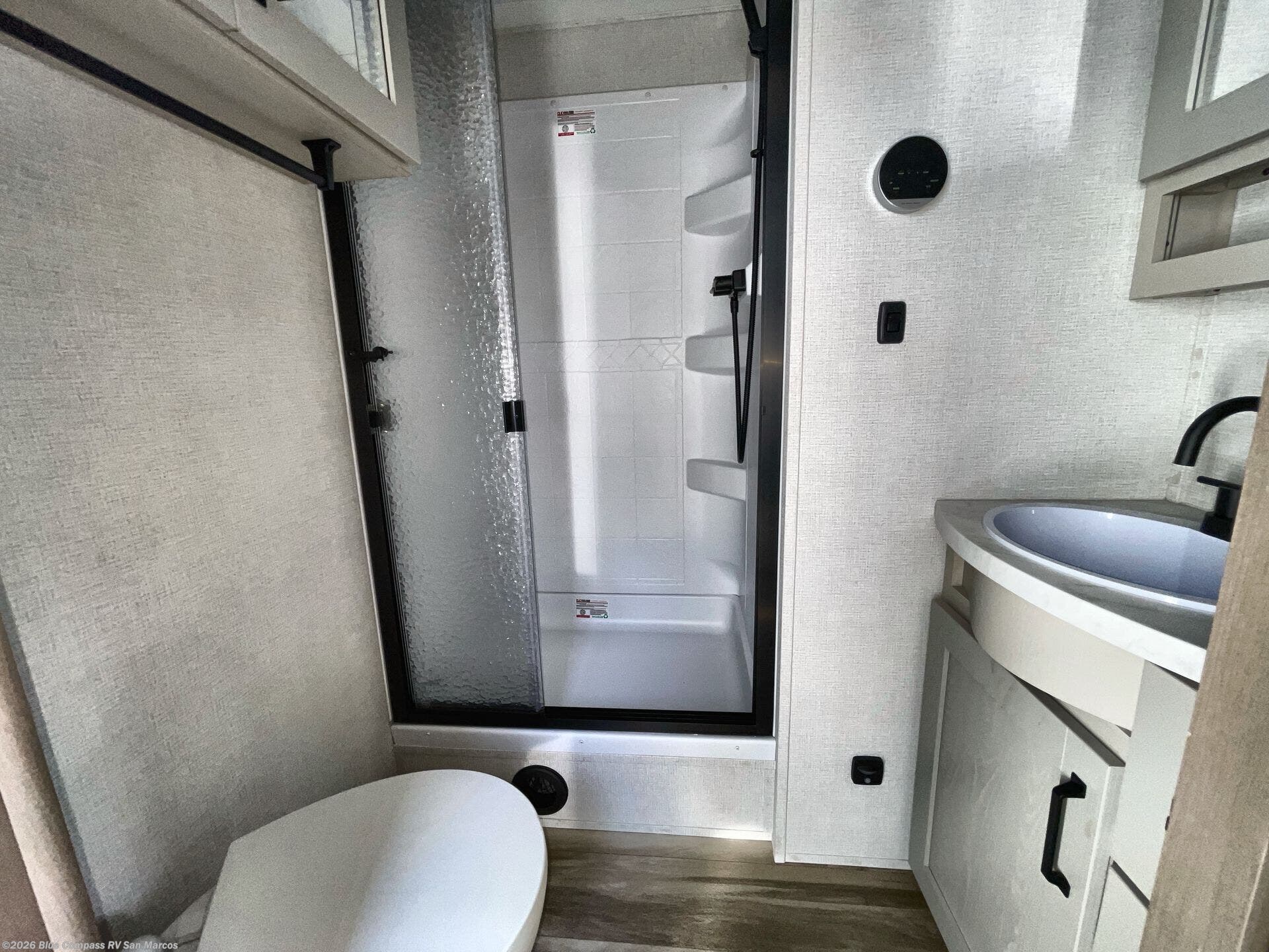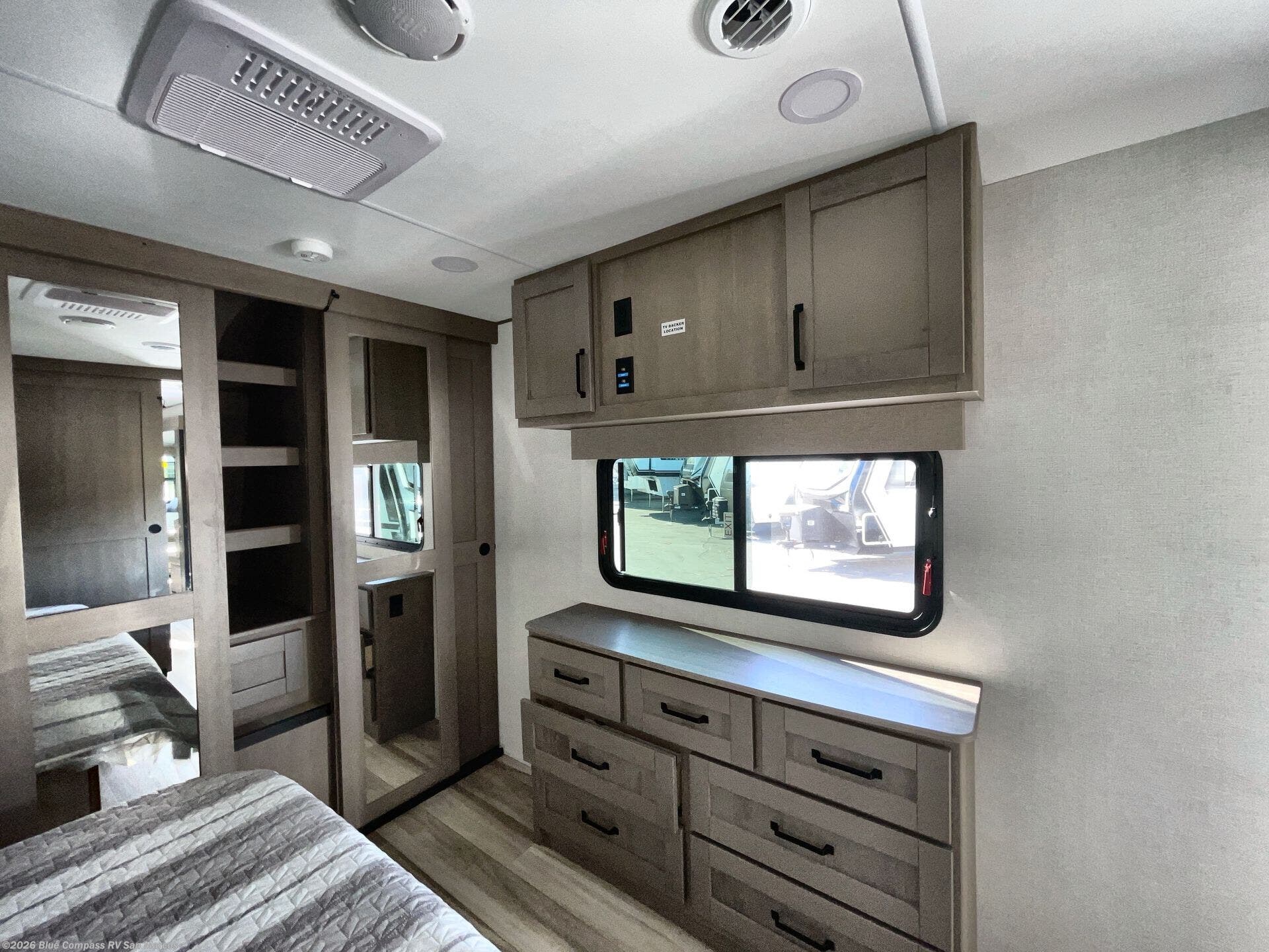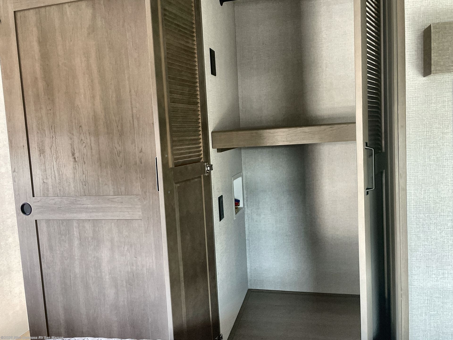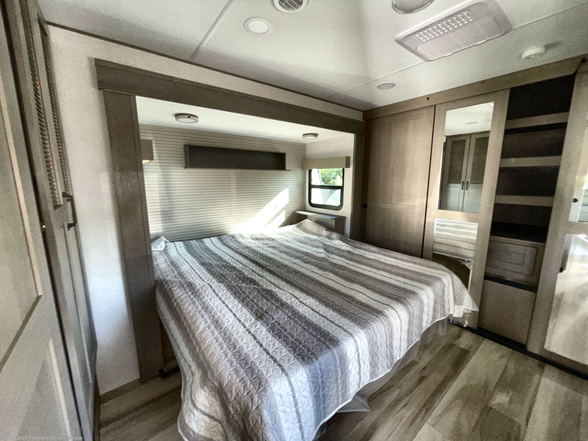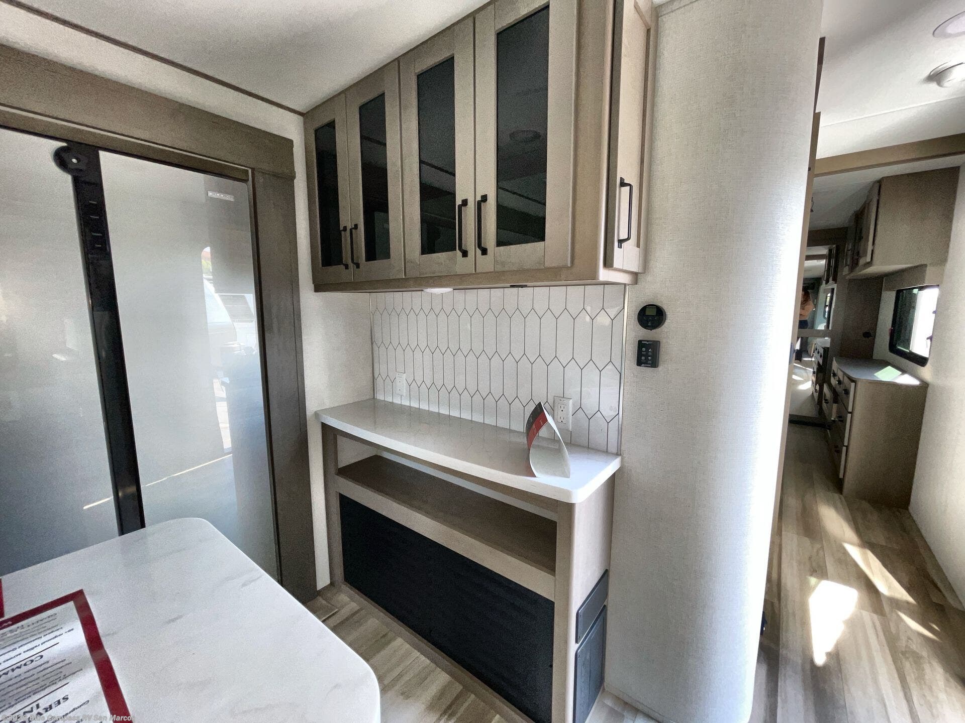 This rear living travel trailer will be perfect for extended stays at the campground or quick weekend trips to the lake! Once you've unloaded your gear from the pass-thru storage, head inside to relax on the rear tri-fold sofa with an adjustable headrest or on the theater seating across from the 40" TV and fireplace. There is also a booth dinette where you can dine together, or you can choose the optional swivel dinette. The spacious kitchen island will make meal time easier than ever, plus there is a pantry and 16 cu. ft. 12V refrigerator for food storage. The full bath is right next to the front private bedroom for easy nighttime use, and speaking of nighttime, you're sure to sleep soundly on the queen bed slide. There is also a large front closet, TV prep, plus washer and dryer prep if you choose to add these appliances.