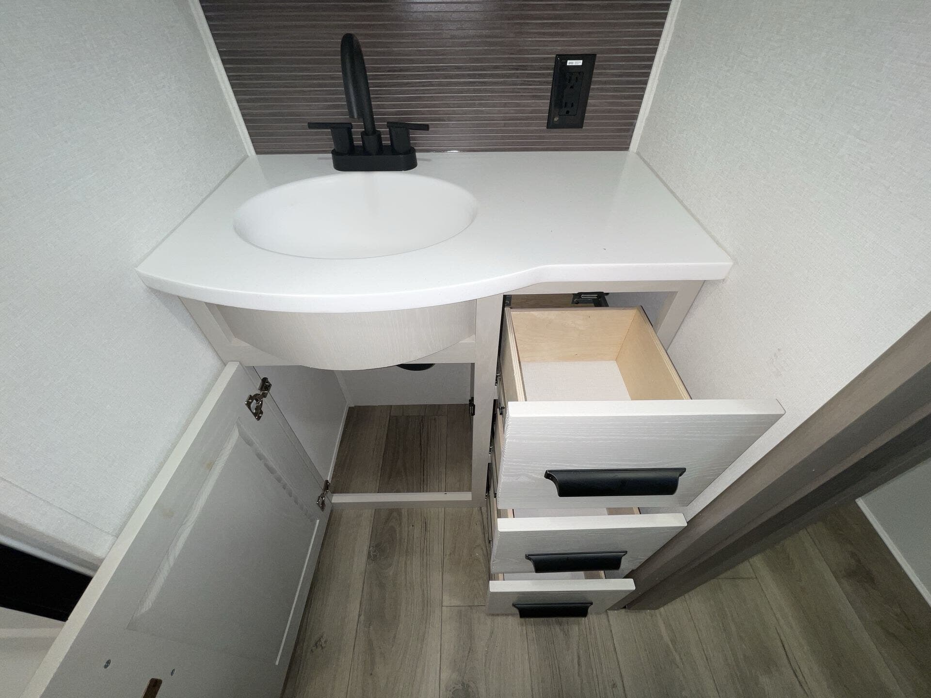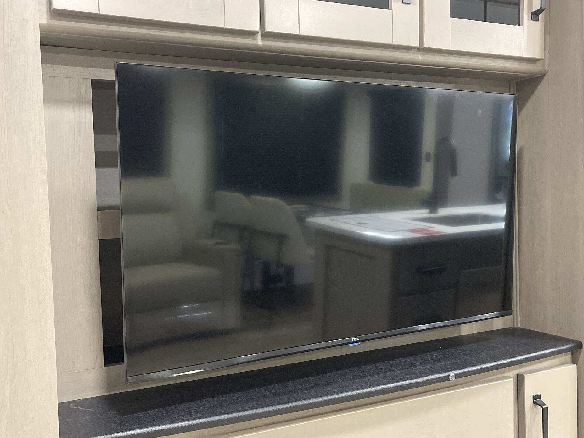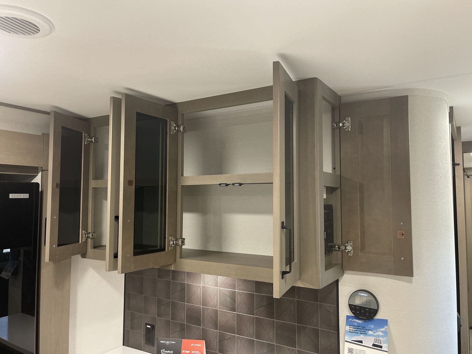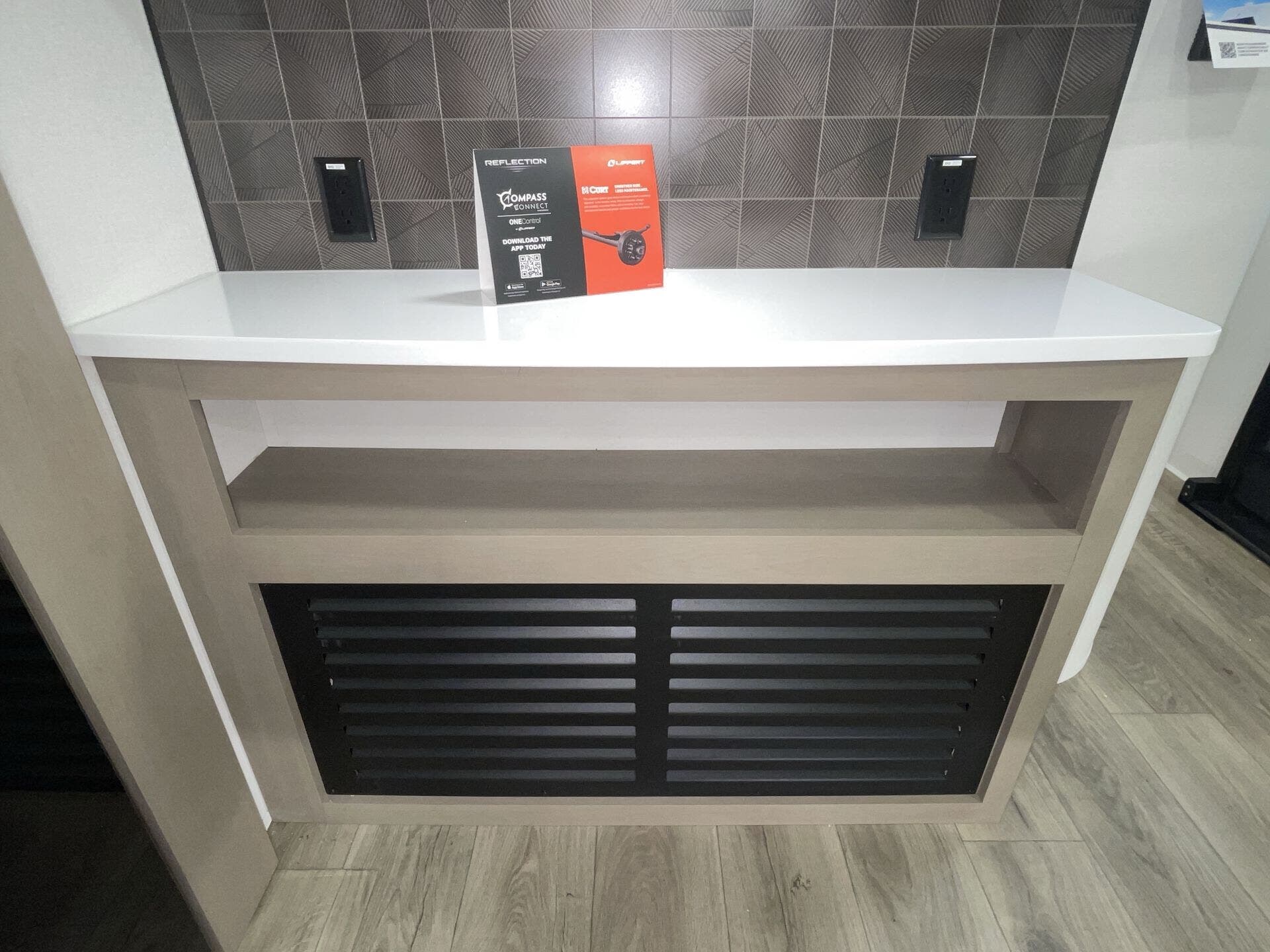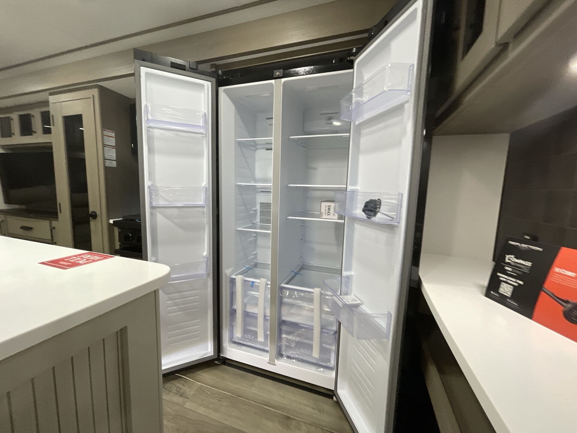 The Reflection 345RLTS centers around a thoughtful front bedroom, a modern mid-kitchen with an island, and a comfortable rear living area. Three slideouts create an expansive interior that’s easy to navigate, even with guests. Highlights include a free standing dinette with chairs, a dedicated island kitchen with a roomy pantry, and generous wardrobe storage. This layout delivers a home-like vibe, making it perfect for entertaining, movie nights, and relaxing downtime after a day on the road.