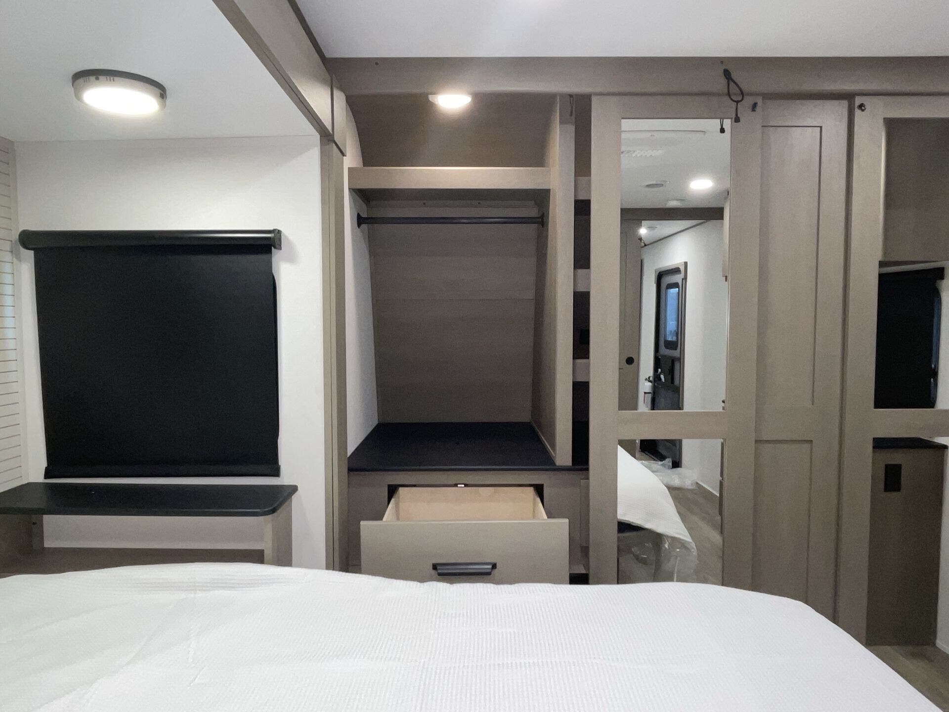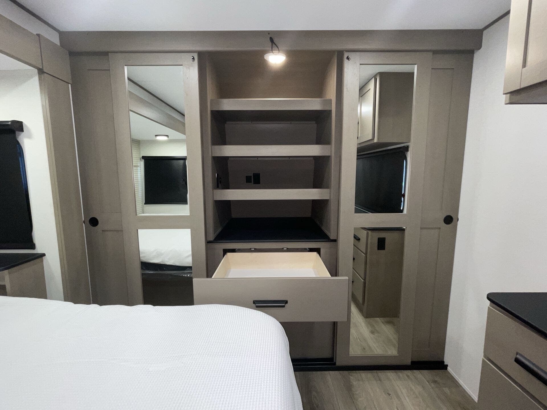 Day/Night Shades, Fireplace, Free Standing Dinette w/Chairs, Island Kitchen, Kitchen Sink, Medicine Cabinet, Overhead Cabinetry, Pantry, Pet Friendly, Roof Vents, Shower, Sofa Bed, Theater Seating, Toilet, Wardrobe(s)