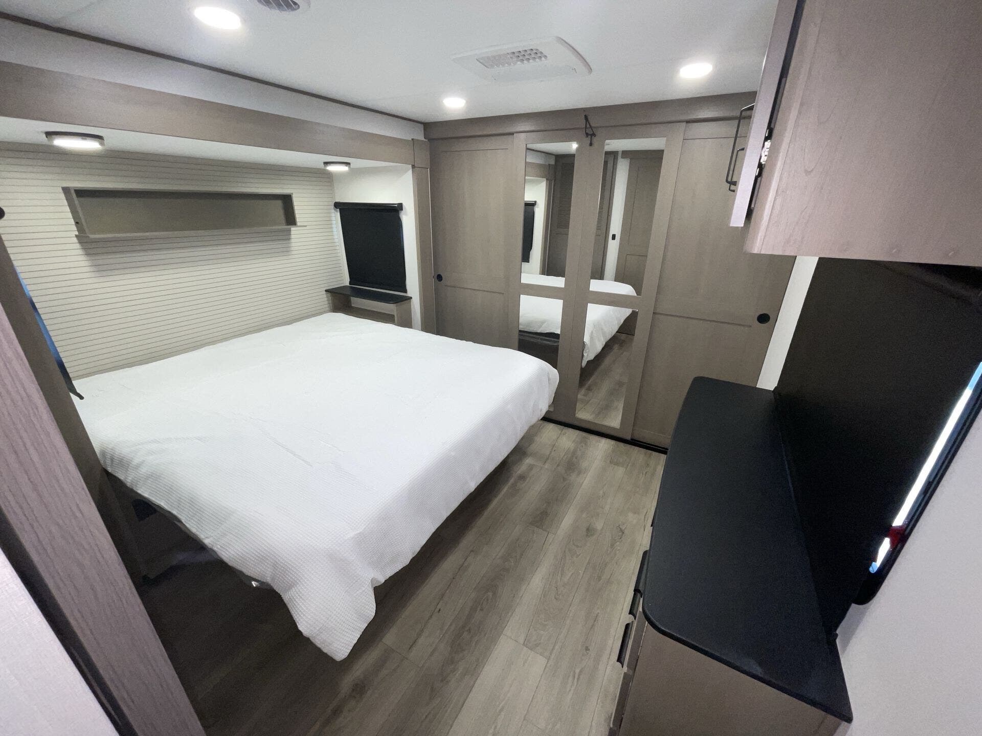 - Floorplan comfort: day/night shades, free standing dinette with chairs, island kitchen, pantry, and front bedroom storage