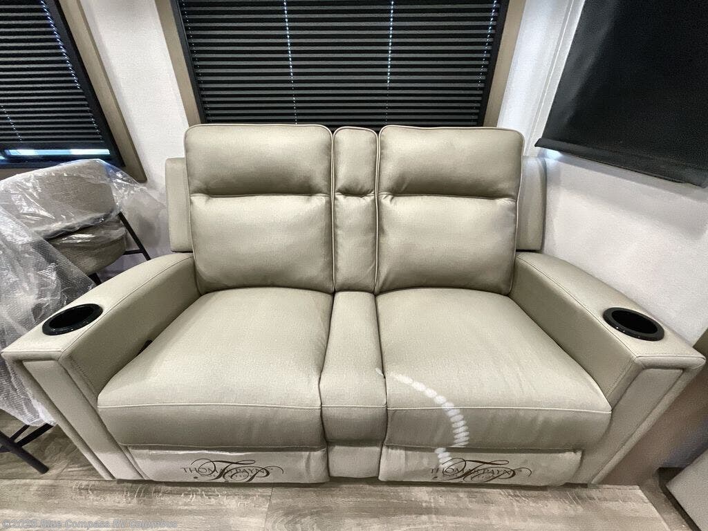 This rear living travel trailer will be perfect for extended stays at the campground or quick weekend trips to the lake! Once you've unloaded your gear from the pass-thru storage, head inside to relax on the rear tri-fold sofa with an adjustable headrest or on the theater seating across from the 40" TV and fireplace. There is also a booth dinette where you can dine together, or you can choose the optional swivel dinette. The spacious kitchen island will make meal time easier than ever, plus there is a pantry and 16 cu. ft. 12V refrigerator for food storage. The full bath is right next to the front private bedroom for easy nighttime use, and speaking of nighttime, you're sure to sleep soundly on the queen bed slide. There is also a large front closet, TV prep, plus washer and dryer prep if you choose to add these appliances.