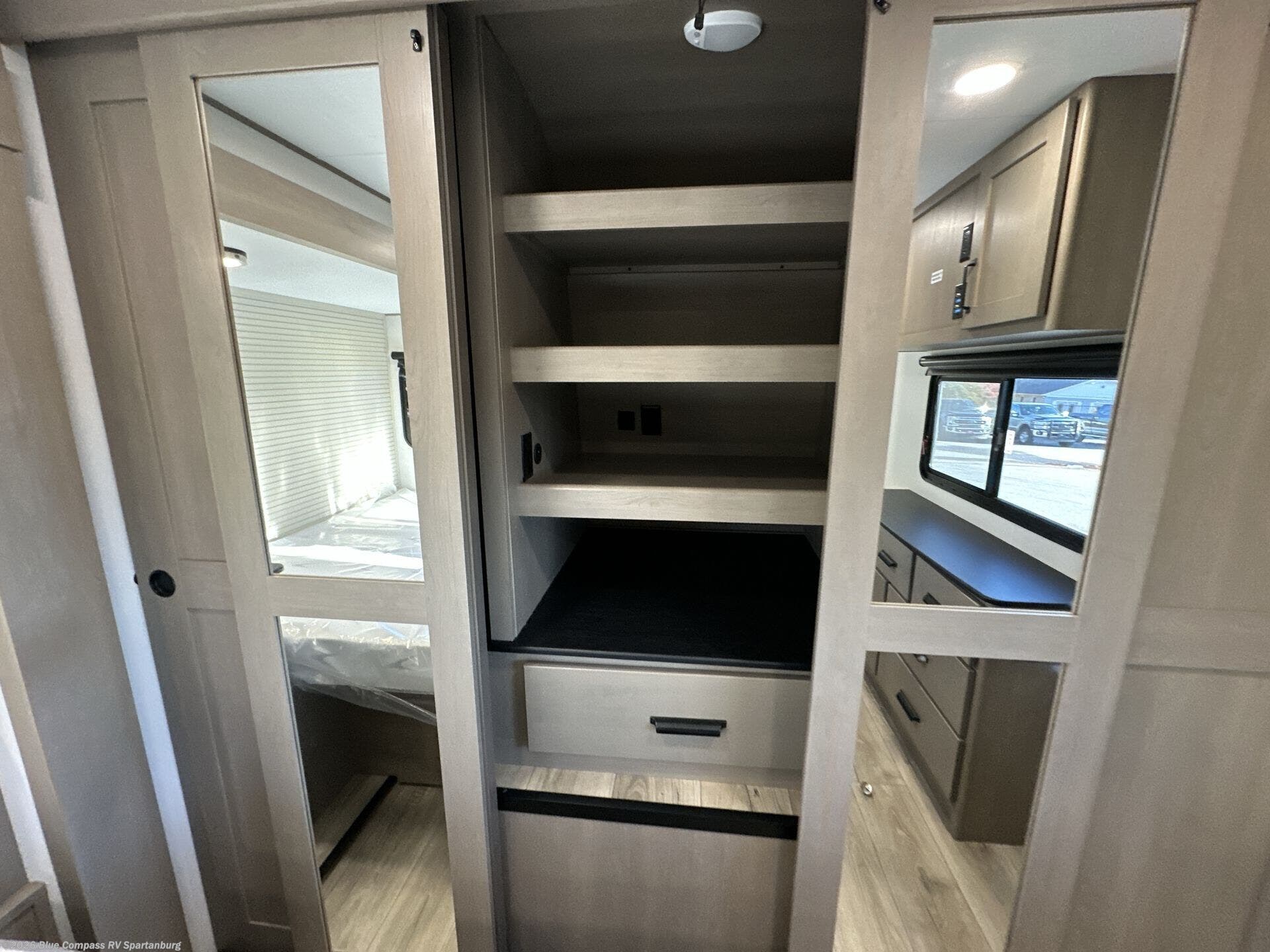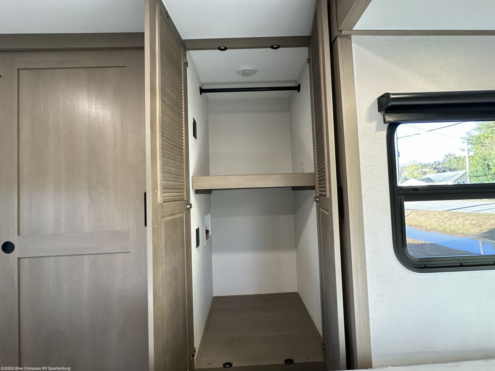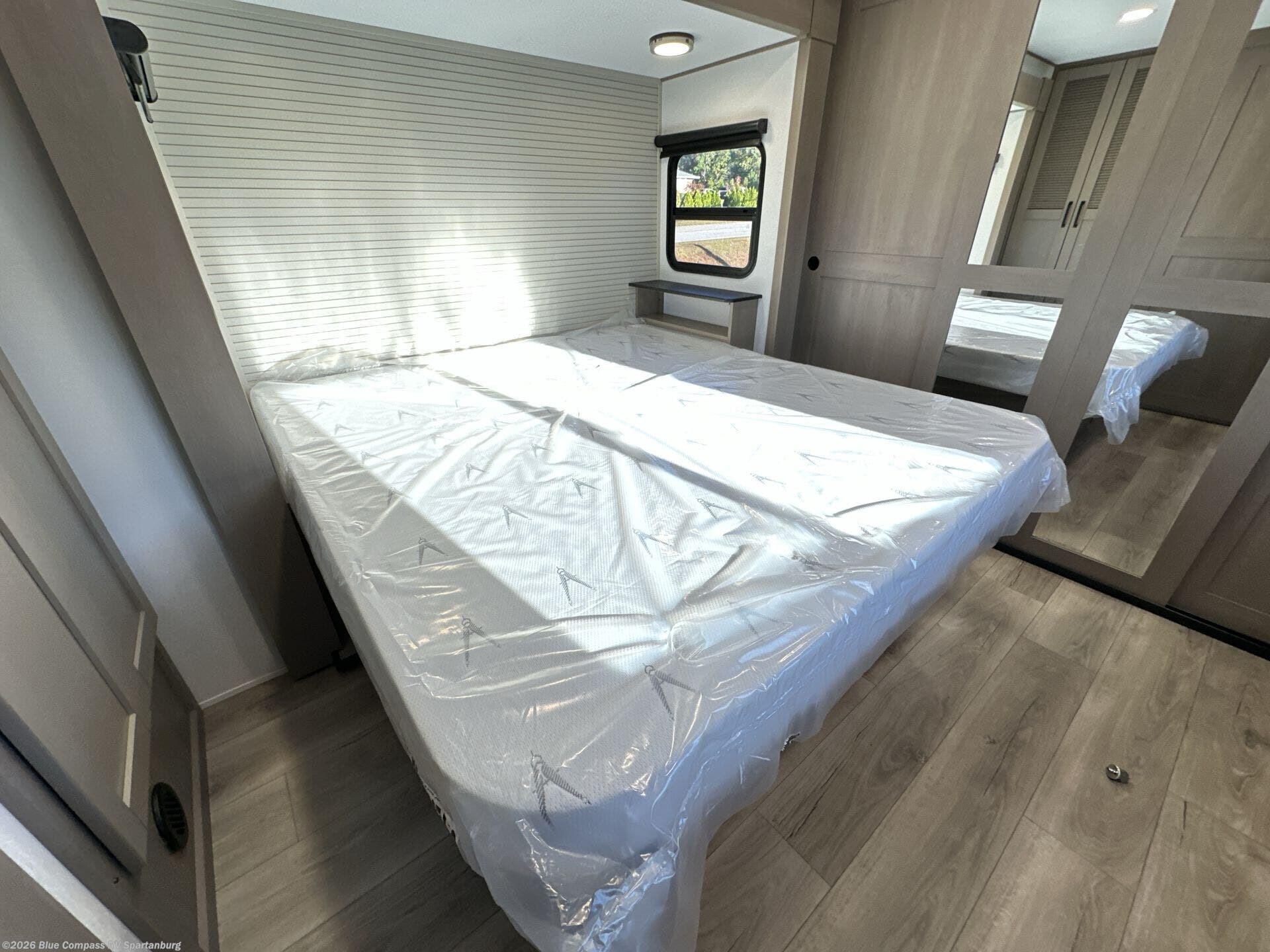 This rear living travel trailer will be perfect for extended stays at the campground or quick weekend trips to the lake! Once you've unloaded your gear from the pass-thru storage, head inside to relax on the rear tri-fold sofa with an adjustable headrest or on the theater seating across from the 40" TV and fireplace. There is also a booth dinette where you can dine together, or you can choose the optional swivel dinette. The spacious kitchen island will make meal time easier than ever, plus there is a pantry and 16 cu. ft. 12V refrigerator for food storage. The full bath is right next to the front private bedroom for easy nighttime use, and speaking of nighttime, you're sure to sleep soundly on the queen bed slide. There is also a large front closet, TV prep, plus washer and dryer prep if you choose to add these appliances.