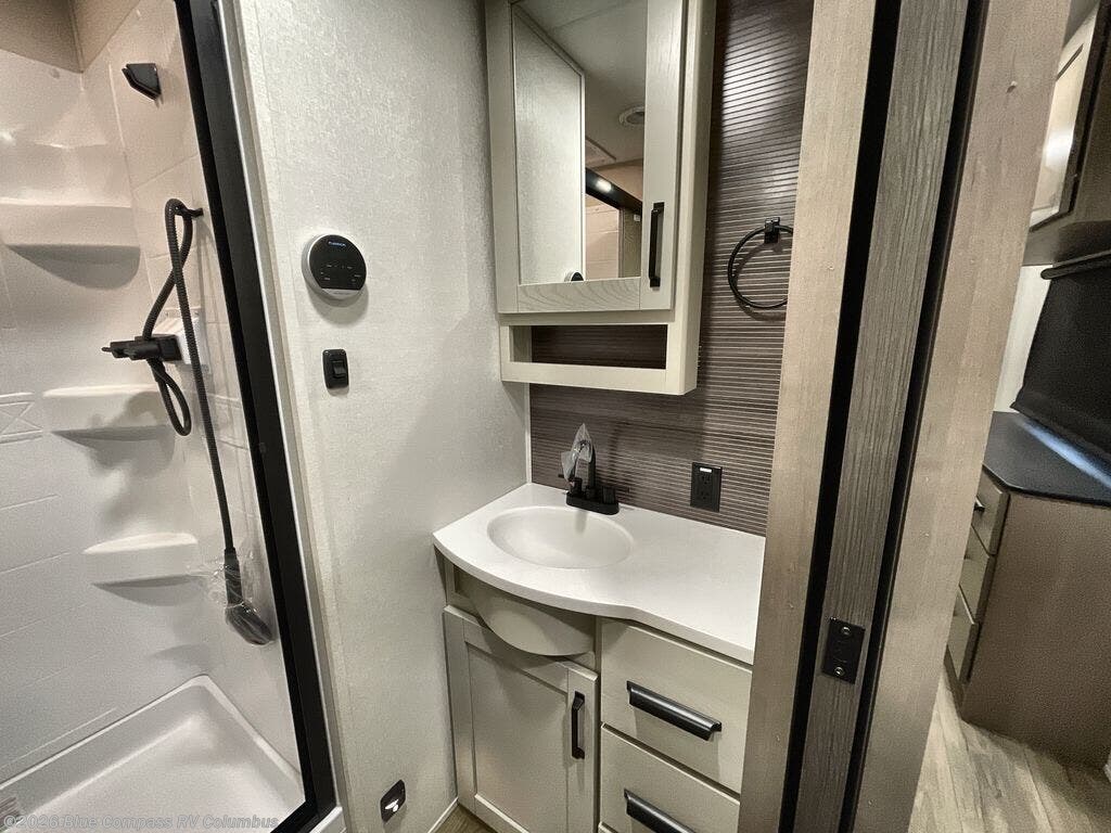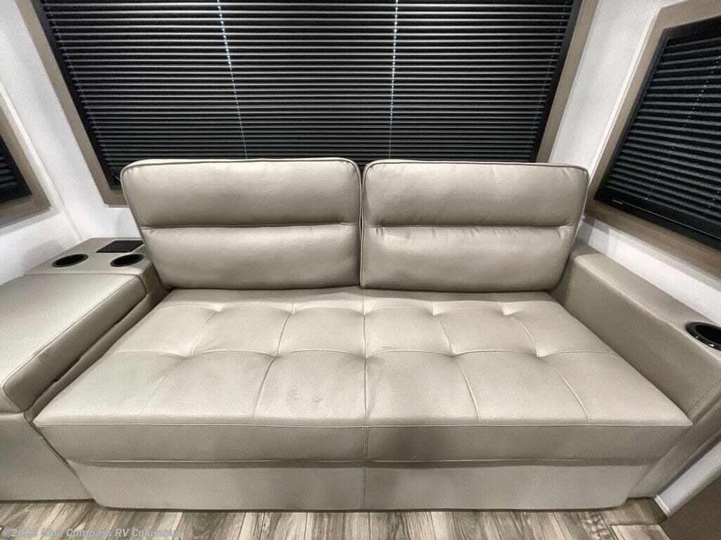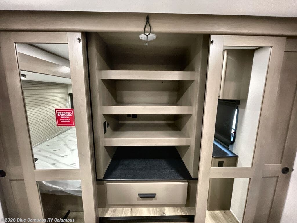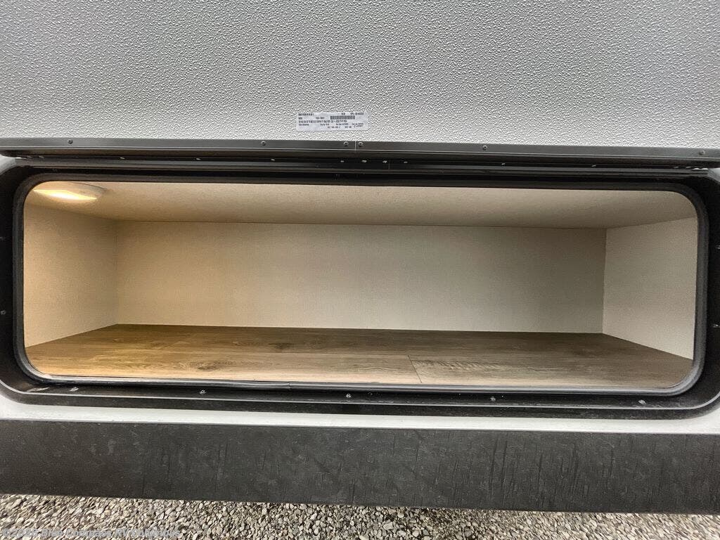 This rear living travel trailer will be perfect for extended stays at the campground or quick weekend trips to the lake! Once you've unloaded your gear from the pass-thru storage, head inside to relax on the rear tri-fold sofa with an adjustable headrest or on the theater seating across from the 40" TV and fireplace. There is also a booth dinette where you can dine together, or you can choose the optional swivel dinette. The spacious kitchen island will make meal time easier than ever, plus there is a pantry and 16 cu. ft. 12V refrigerator for food storage. The full bath is right next to the front private bedroom for easy nighttime use, and speaking of nighttime, you're sure to sleep soundly on the queen bed slide. There is also a large front closet, TV prep, plus washer and dryer prep if you choose to add these appliances.