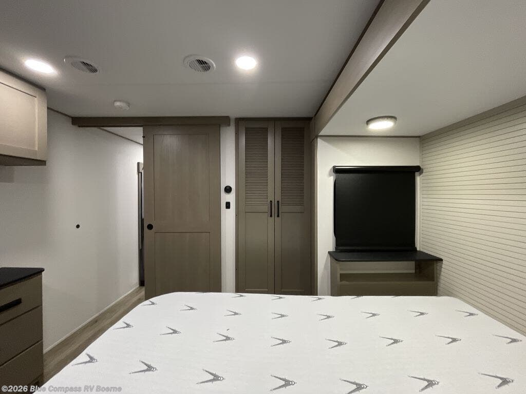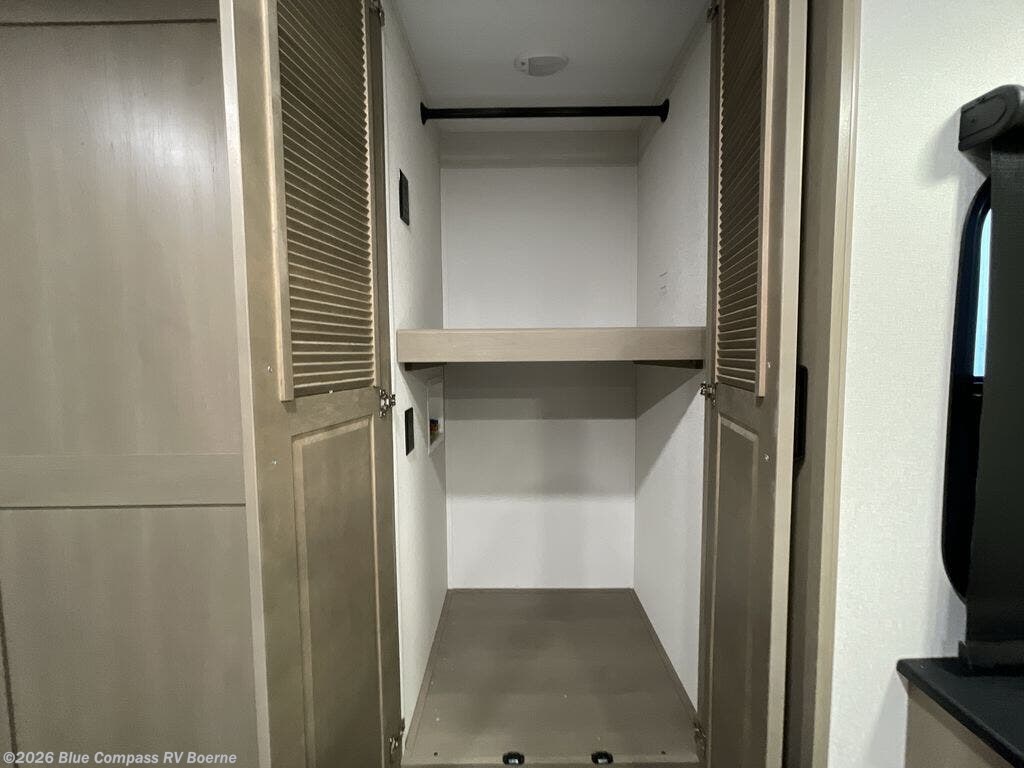 This rear living travel trailer will be perfect for extended stays at the campground or quick weekend trips to the lake! Once you've unloaded your gear from the pass-thru storage, head inside to relax on the rear tri-fold sofa with an adjustable headrest or on the theater seating across from the 40" TV and fireplace. There is also a booth dinette where you can dine together, or you can choose the optional swivel dinette. The spacious kitchen island will make mealtime easier than ever, plus there is a pantry and 16 cu. ft. 12V refrigerator for food storage. The full bath is right next to the front private bedroom for easy nighttime use, and speaking of nighttime, you're sure to sleep soundly on the queen bed slide. There is also a large front closet, TV prep, plus washer and dryer prep if you choose to add these appliances.