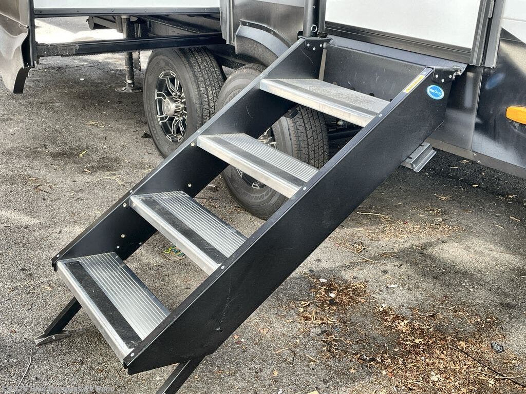 Travel to see new state parks, RV resorts or your family in other states as you tow this fifth wheel to each destination! You will enjoy comfort and convenience, plus a place to work, and be able to offer extra sleeping space for friends and family when they visit. The middle extra room provides a tri-fold sofa slide, a desk, a wardrobe, plus a 64" x 88" upper bed loft area with access from the hallway. The full bathroom will keep everyone refreshed, and the front bedroom allows you to sleep on a queen bed slide or choose the king option. And you will love the front wardrobe, the dresser, and the option to add a washer/dryer. The main living and kitchen area provides plenty of seating from the rear tri-fold sofa, the booth dinette or swivel dinette option, and the theater seats with cupholders. And the kitchen island, appliances, and large pantry allow you to take everything you need with you.