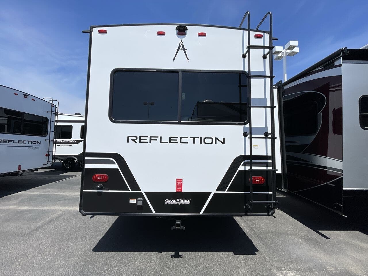 With any Reflection fifth wheel by Grand Design, you will have a solar panel for off-grid camping and a 60 amp charge controller and inverter prep, a Universal All-In-One docking station, unobstructed pass-through storage, and Goodyear Endurance tires. Each is constructed of gel coat exterior sidewalls, residential 5" truss rafters, walk-on roof decking, a fiberglass and radiant foil roof and front cap insulation plus laminated aluminum framed side walls, roof and end walls in slide rooms. Head inside to enjoy residential hardwood cabinet doors, premium Congoleum flooring, a spacious shower with a glass door, and many more comforts!