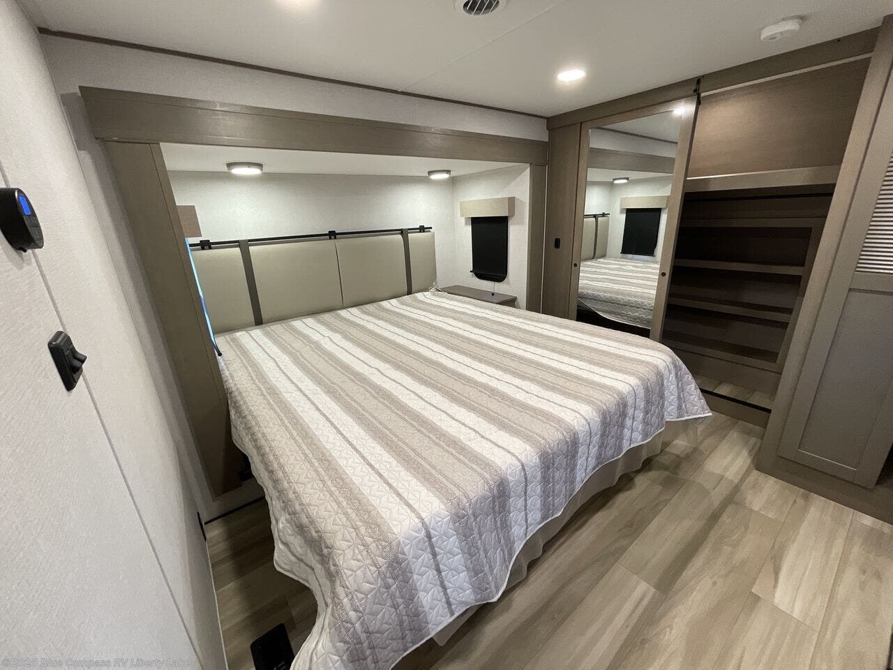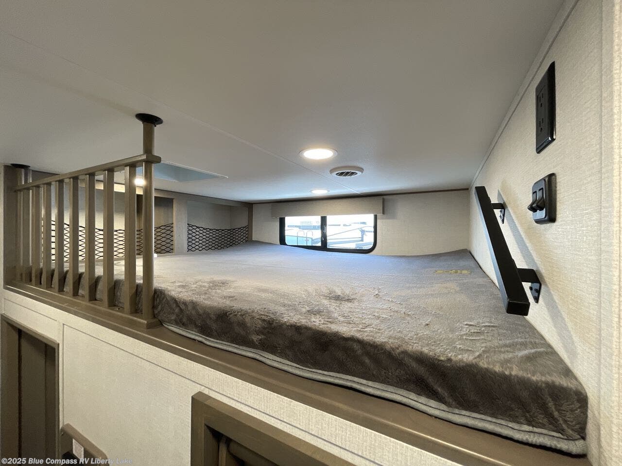 Travel to see new state parks, RV resorts or your family in other states as you tow this fifth wheel to each destination! You will enjoy comfort and convenience, plus a place to work, and be able to offer extra sleeping space for friends and family when they visit. The middle extra room provides a tri-fold sofa slide, a desk, a wardrobe, plus a 64" x 88" upper bed loft area with access from the hallway. The full bathroom will keep everyone refreshed, and the front bedroom allows you to sleep on a queen bed slide or choose the king option. And you will love the front wardrobe, the dresser, and the option to add a washer/dryer. The main living and kitchen area provides plenty of seating from the rear tri-fold sofa, the booth dinette or swivel dinette option, and the theater seats with cupholders. And the kitchen island, appliances, and large pantry allow you to take everything you need with you.
