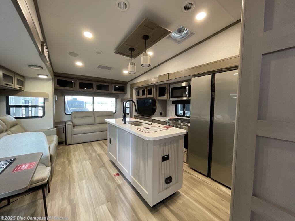 Travel to see new state parks, RV resorts or your family in other states as you tow this fifth wheel to each destination! You will enjoy comfort and convenience, plus a place to work, and be able to offer extra sleeping space for friends and family when they visit. The middle extra room provides a tri-fold sofa slide, a desk, a wardrobe, plus a 64" x 88" upper bed loft area with access from the hallway. The full bathroom will keep everyone refreshed, and the front bedroom allows you to sleep on a queen bed slide or choose the king option. And you will love the front wardrobe, the dresser, and the option to add a washer/dryer. The main living and kitchen area provides plenty of seating from the rear tri-fold sofa, the booth dinette or swivel dinette option, and the theater seats with cupholders. And the kitchen island, appliances, and large pantry allow you to take everything you need with you.
