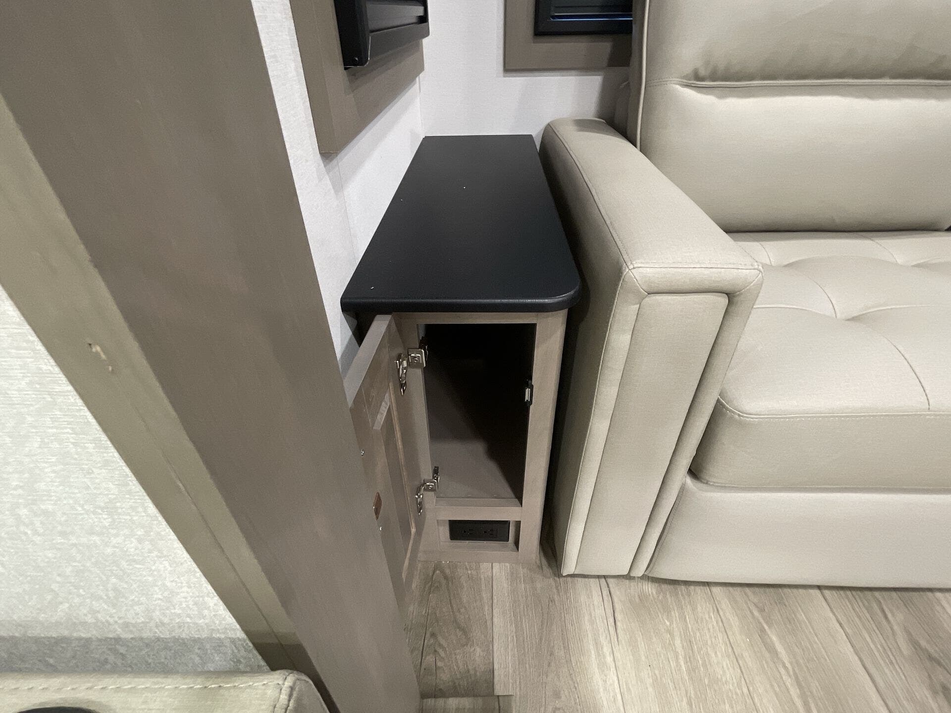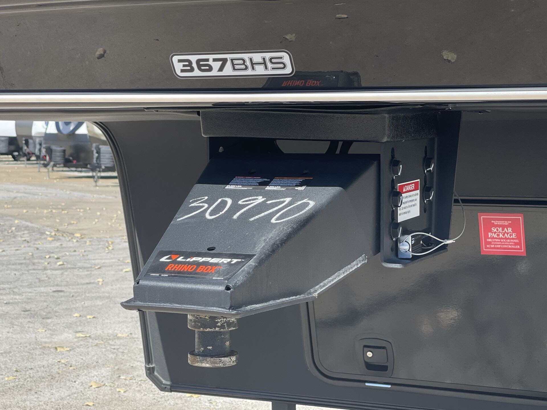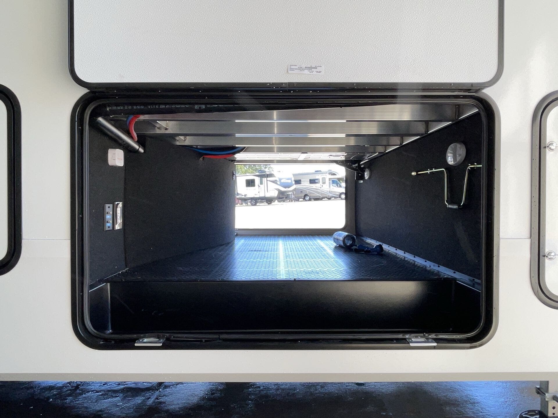Awning, Black Tank Flush, Detachable Power Cord, Hitch, Leveling Jacks, Outside Kitchen, Pass Thru Storage, Power Awning, Roof Vent, Screen Door, Slideout -