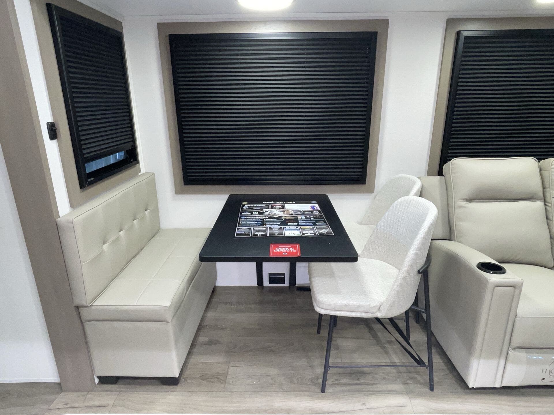 Experience luxury and versatility with the 2026 Grand Design Reflection 367BHS. This 36-foot triple-slide bunkhouse fifth-wheel offers a spacious, open-concept interior with panoramic windows that fill the home with natural light. Relax in theater seating or on the plush sofa while enjoying your favorite shows on the LED TV.