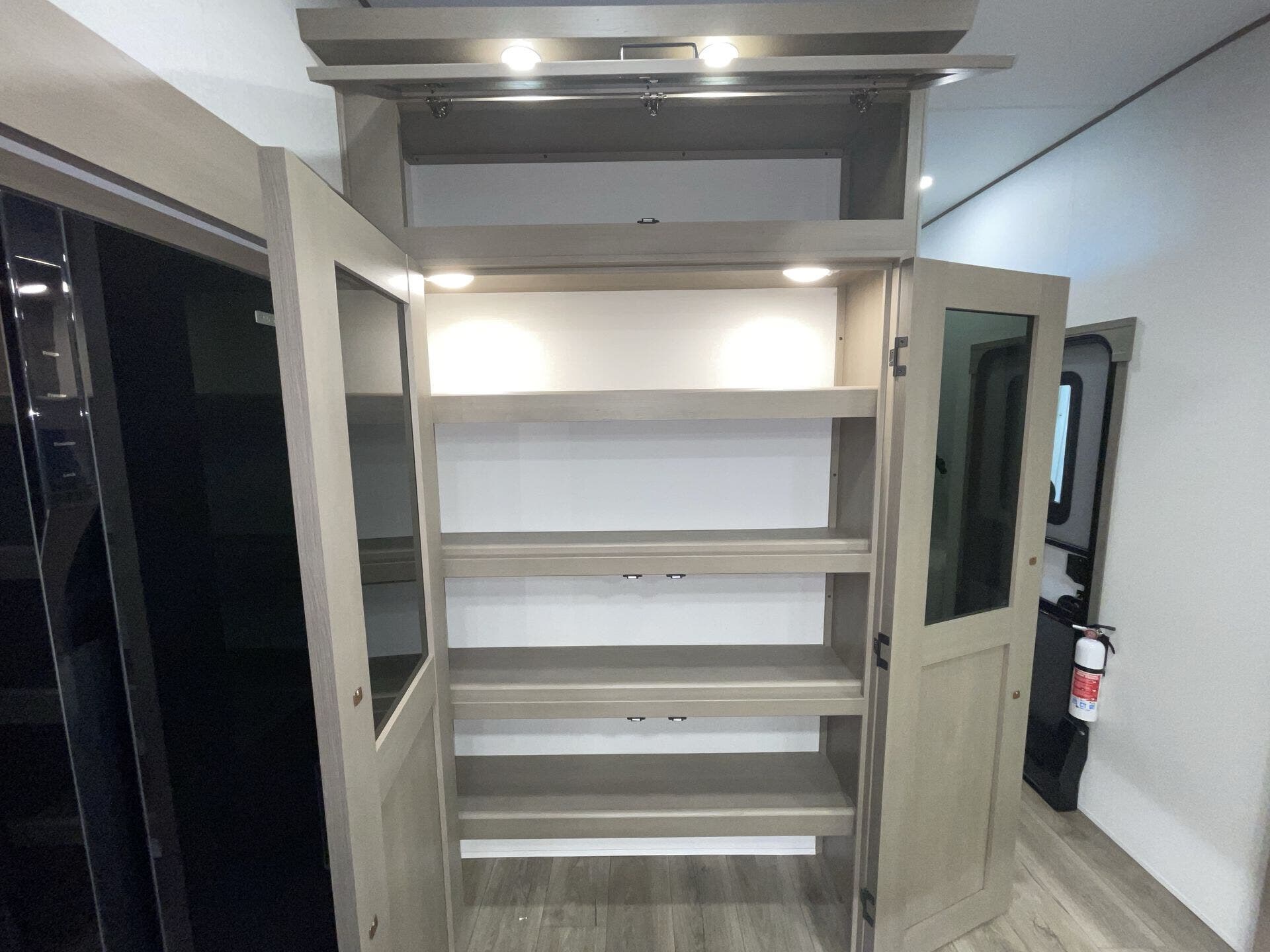 Bunk Beds, Bunkhouse, Day/Night Shades, Fireplace, Free Standing Dinette w/Chairs, Island Kitchen, King Size Bed, Kitchen Sink, Medicine Cabinet, Overhead Cabinetry, Pantry, Roof Vents, Shower, Sofa Bed, Theater Seating, Toilet, Wardrobe(s), Washer/Dryer Prep