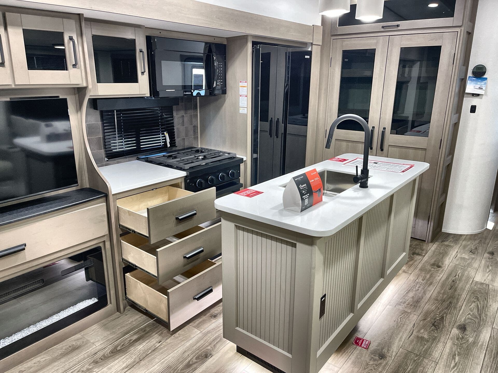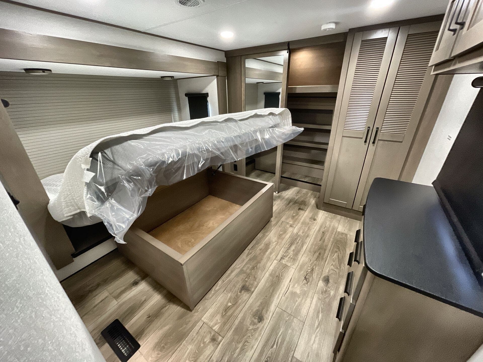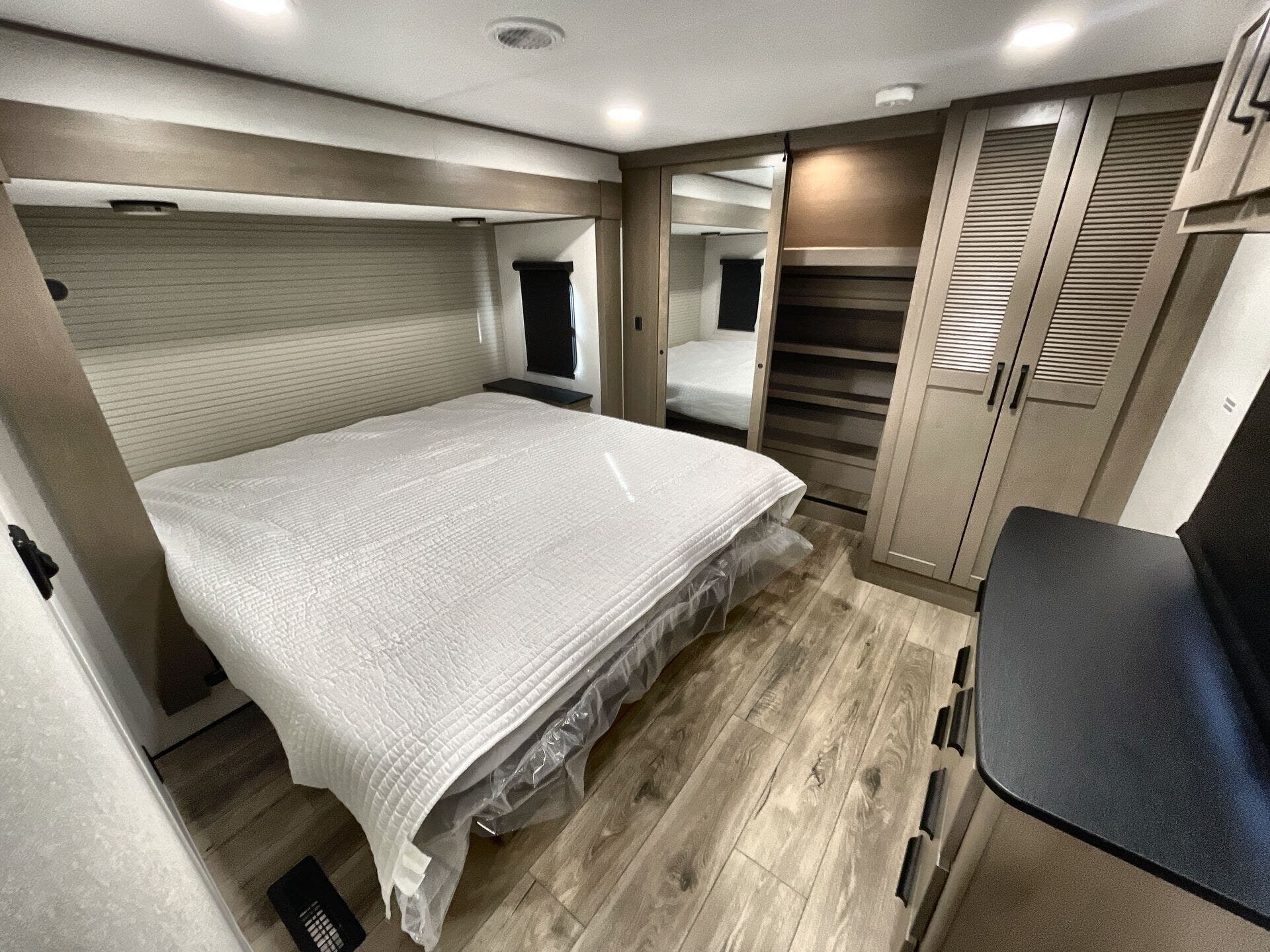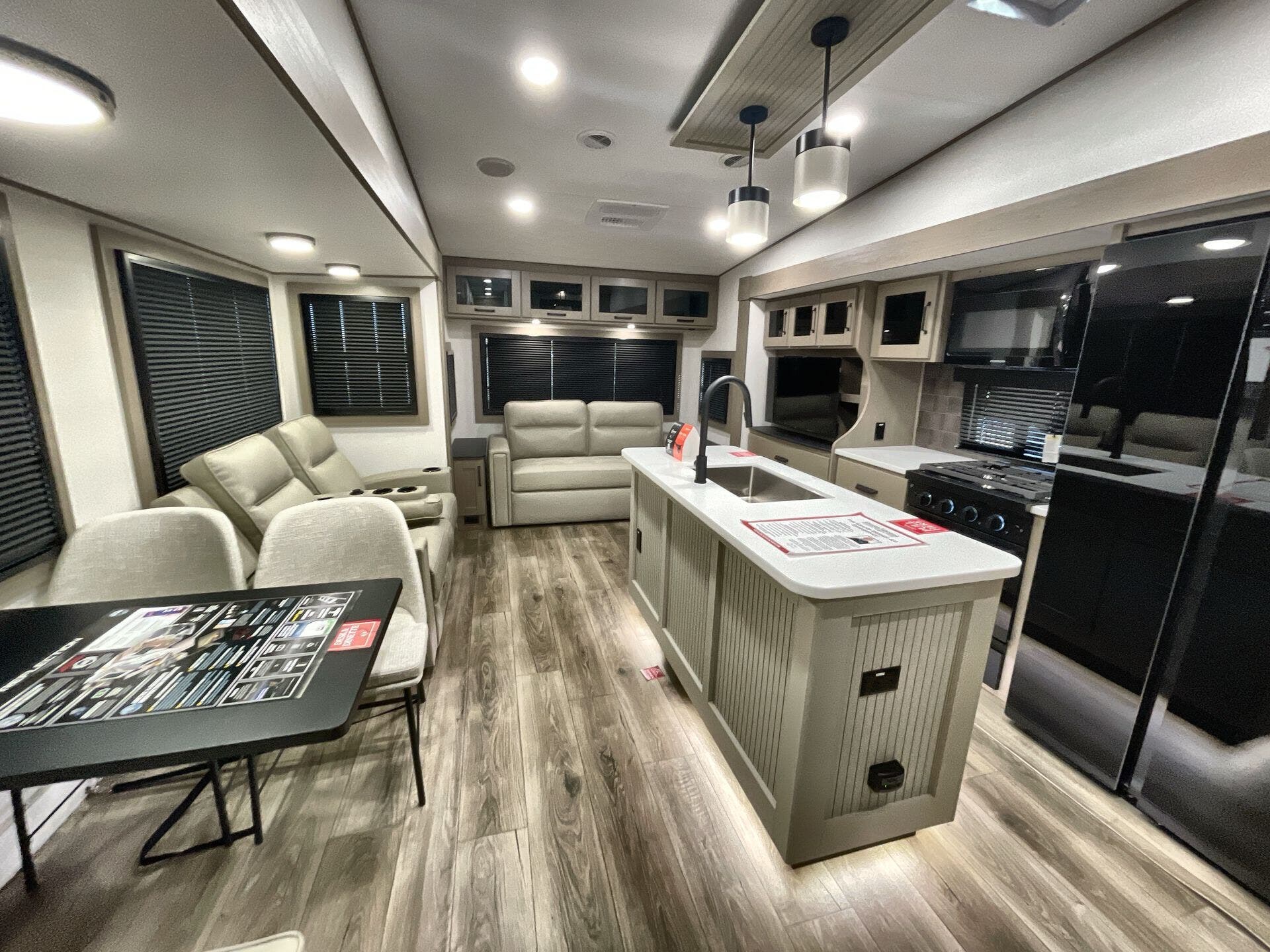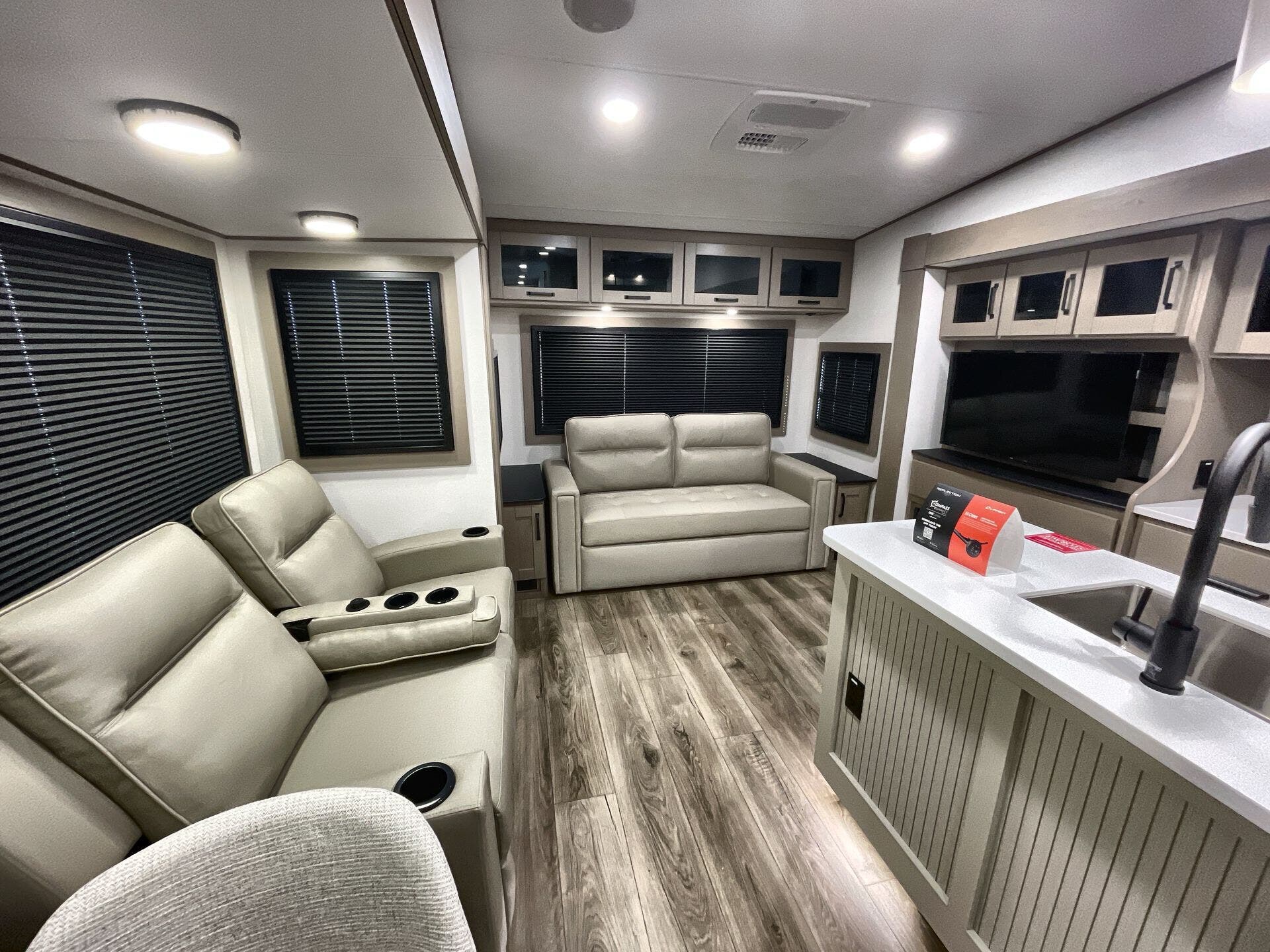 If you’re shopping for a recreational vehicle that blends luxury with practicality, this Reflection bunkhouse fifth wheel stands out. The four-slide layout creates a spacious living area ideal for family gatherings, movie nights, and comfortable dining at the Booth Dinette. The inclusion of a Hide-A-Bed sofa adds flexible sleeping arrangements, while solid surface countertops and ample storage elevate daily living. A roof deck and pass-thru storage expand outdoor enjoyment and gear organization, making it easier to bring along bikes, chairs, and recreational gear. For travelers who value self-sufficiency, the built-in inverter and solar panel help keep essentials powered between stops. As a new model with stock number 15554, this 2026 Grand Design Reflection offers a compelling combination of performance, comfort, and value in a towable RV form factor. While some shoppers seek traditional travel trailers, this fifth wheel delivers superior stability, higher payload, and a spacious, upscale interior that’s ideal for long trips or full-time enjoyment.