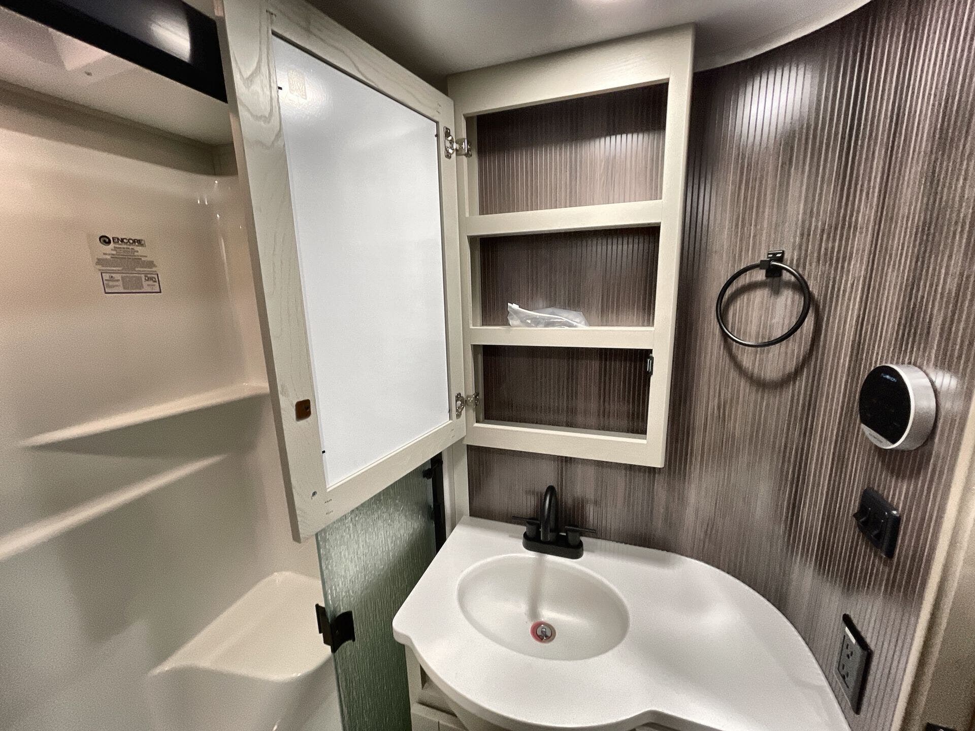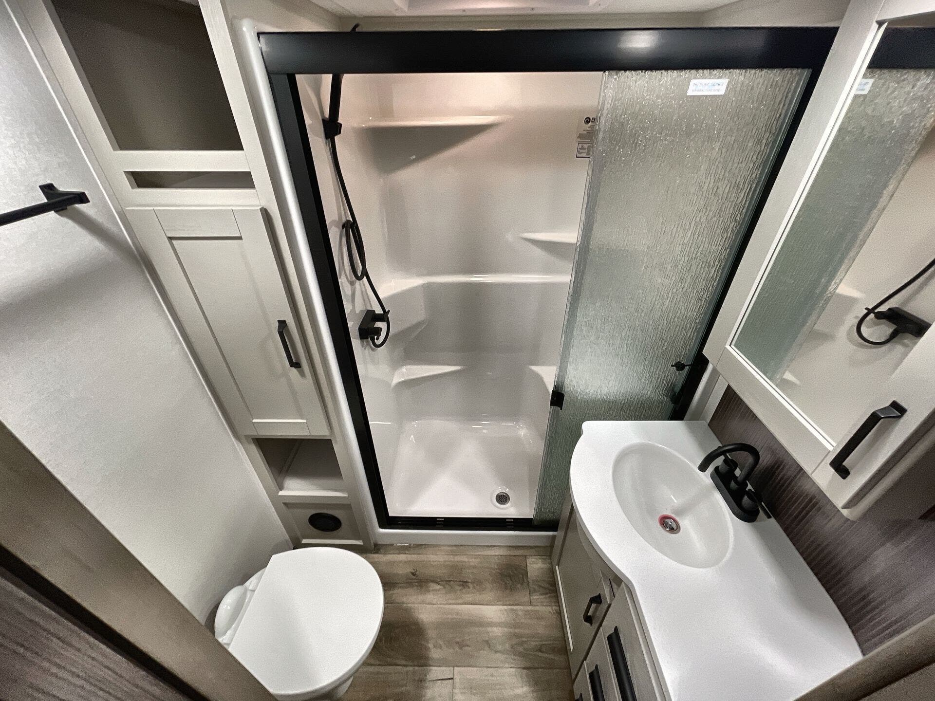 - Interior Comforts: Booth Dinette, Dinette, Hide-A-Bed, Medicine Cabinet, Shower, Toilet, Vanity