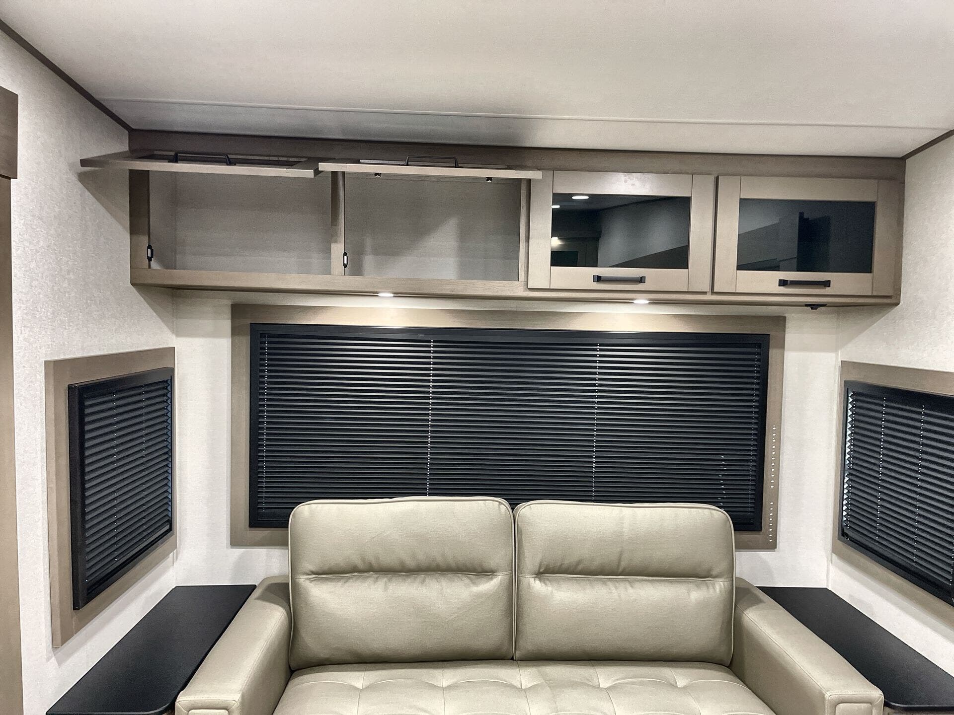 - Well-appointed interior with Booth Dinette, additional Dinette, and Hide-A-Bed sofa