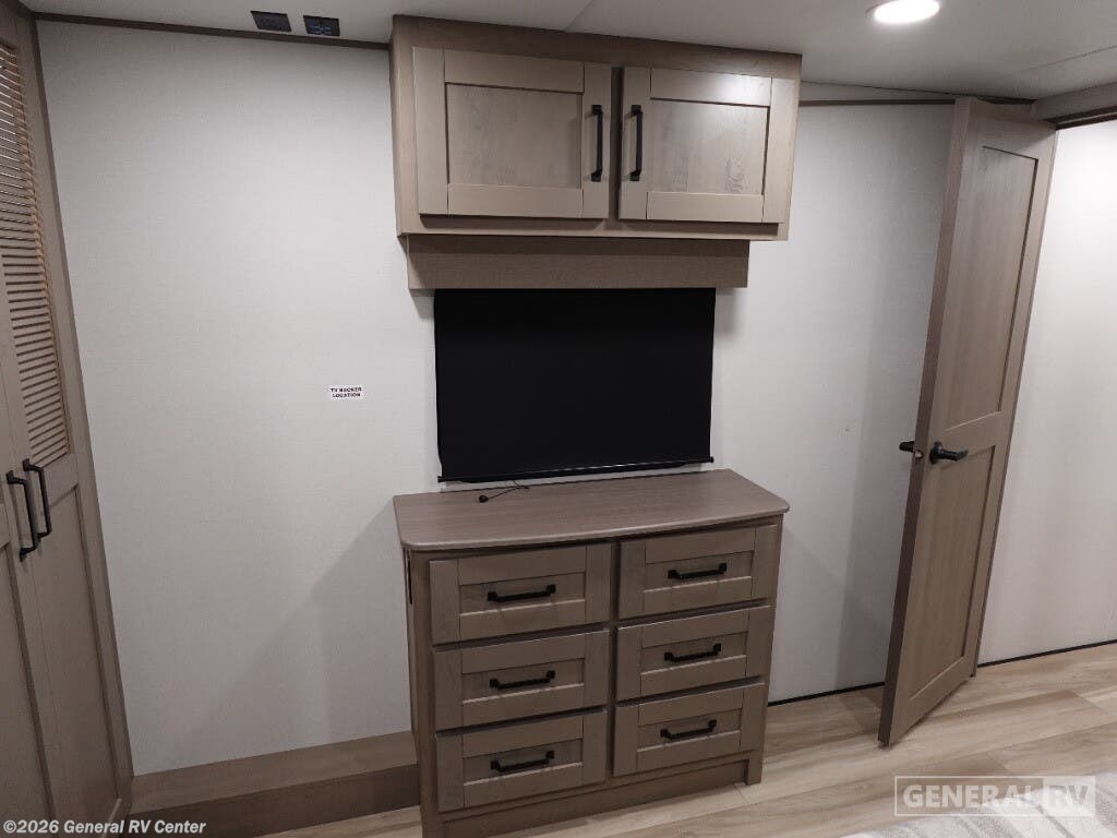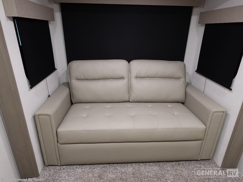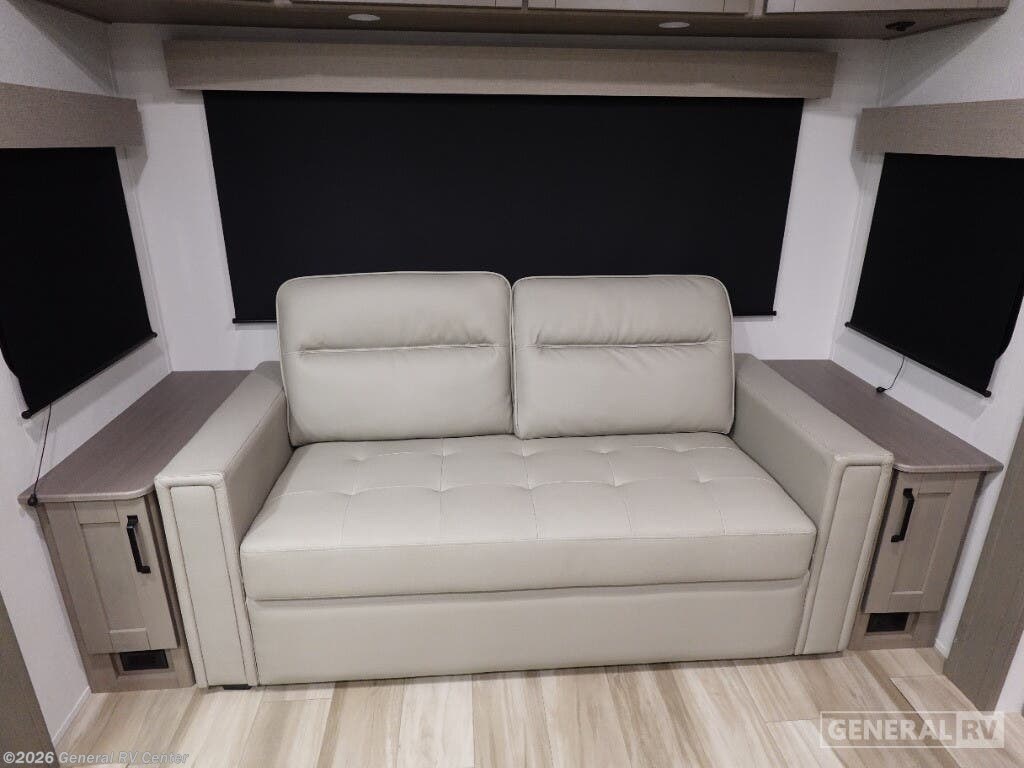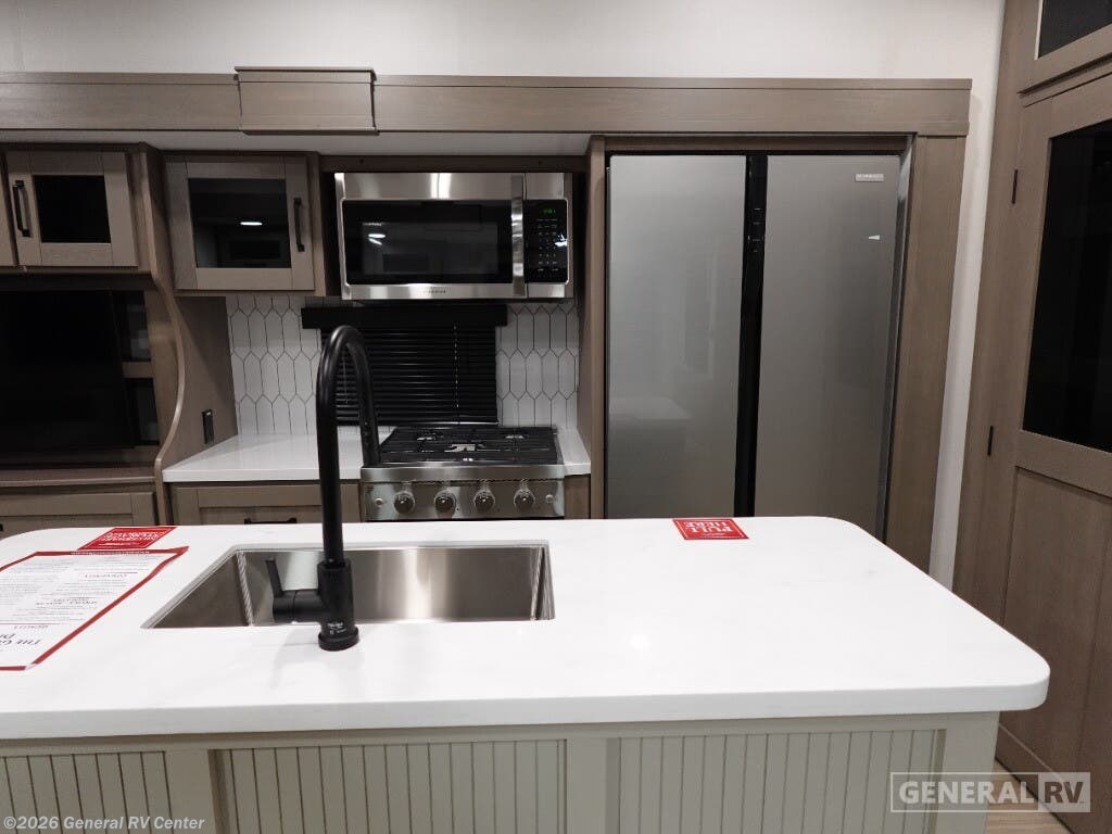 Experience the ultimate in luxury and comfort with the 2026 Grand Design Reflection 367BHS. This stunning fifth wheel is designed to accommodate up to 10 sleepers, offering a perfect blend of style and functionality for your adventures. With two queen beds, a king bed, and three convertible options, there's ample space for family and friends. The center kitchen, equipped with a three-burner cooktop and a full-size refrigerator, is a culinary delight, ensuring you can whip up your favorite meals with ease. The rear living area, featuring a tri-fold sofa and theater seating, provides a cozy space for relaxation and entertainment. The Reflection 367BHS boasts a thoughtfully designed floorplan with a center bath and a front bedroom, ensuring convenience and privacy. The bunkhouse adds versatility, making it ideal for families. With four slides, this RV offers spacious interiors, while the 31.6 ft. powered retractable awning creates an inviting outdoor space. Enjoy the convenience of washer and dryer prep, ample storage, and an all-in-one docking station. Whether you're setting out on a weekend getaway or an extended journey, this RV promises a home-like experience on the road. For more information or to see this model in person, visit your nearest General RV dealership.