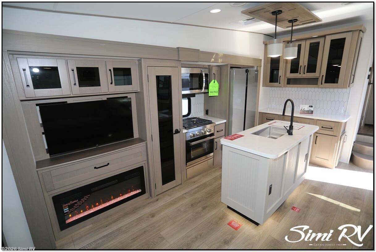 3 SLIDES, SOLAR, PASS THRU BAY, THEATER SEATS, ELEC FIREPLACE, BIG PANTRY, 2 ELEC AWNINGS, 2 AC, HUGE FRIDGE, WALK-THRU BATHROOM