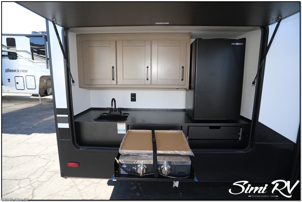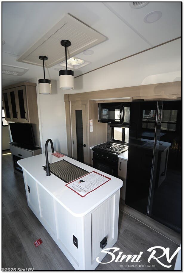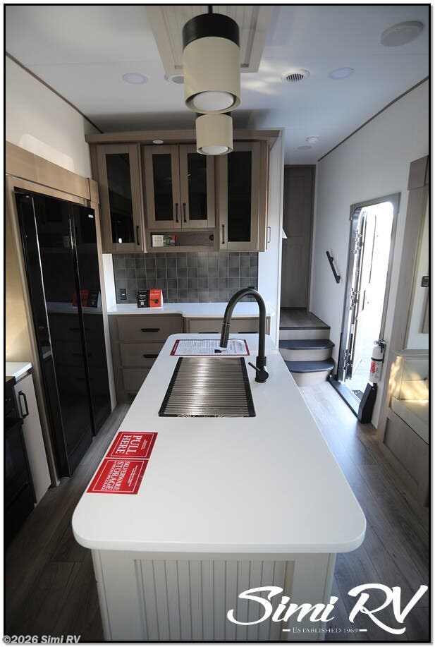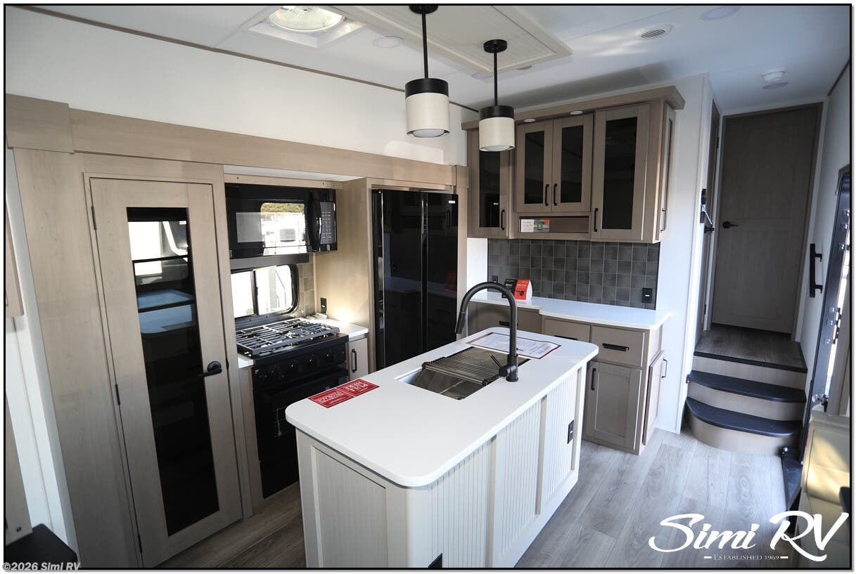 NEW FLOOR PLAN! REAR TRIPLE BUNK ROOM WITH HALF BATH, EXT. KITCHEN, THEATER SEATS, SOLAR, 3 SLIDES, ISLAND KITCHEN W/ BIG FRIDGE