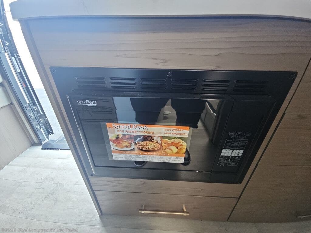 You'll love camping in this spacious and versatile travel trailer. There is a 60" x 76" flip bed up front that you can fold away during the day to relax on the sofa. An induction cooktop and convection microwave within the slide out will let you make meals each day, and you'll also find a wardrobe and pantry here for added storage. The rear corner kitchen includes ample counter space and overhead storage for dishes, spices and more. After a day outdoors, you can clean up in the rear corner bath, complete with a residential walk-in shower, bath skylight, 12V power vent fan plus more!