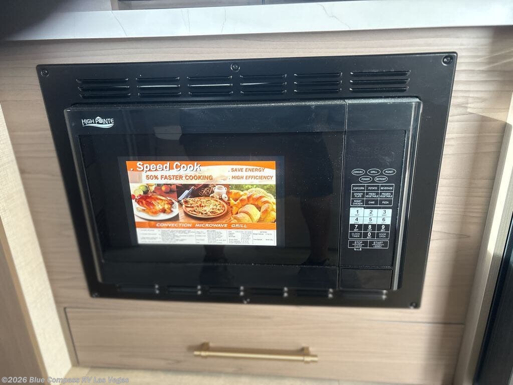 You'll love camping in this spacious and versatile travel trailer. There is a 60" x 76" flip bed up front that you can fold away during the day to relax on the sofa. An induction cooktop and convection microwave within the slide out will let you make meals each day, and you'll also find a wardrobe and pantry here for added storage. The rear corner kitchen includes ample counter space and overhead storage for dishes, spices and more. After a day outdoors, you can clean up in the rear corner bath, complete with a residential walk-in shower, bath skylight, 12V power vent fan plus more!