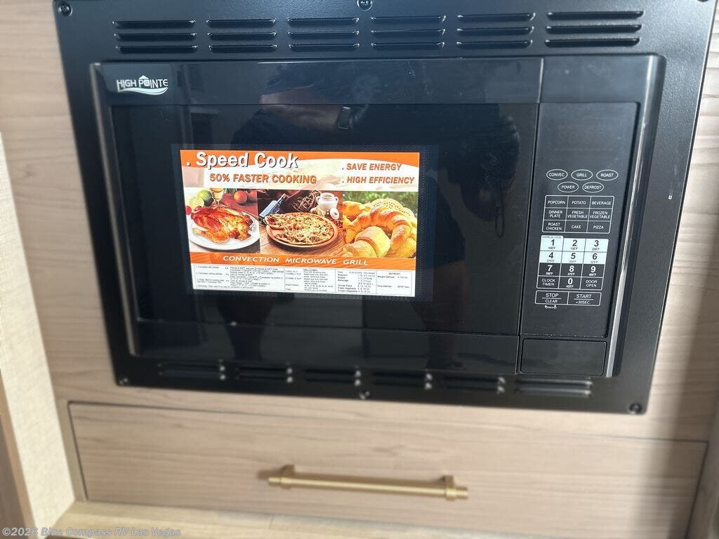 You'll love camping in this spacious and versatile travel trailer. There is a 60" x 76" flip bed up front that you can fold away during the day to relax on the sofa. An induction cooktop and convection microwave within the slide out will let you make meals each day, and you'll also find a wardrobe and pantry here for added storage. The rear corner kitchen includes ample counter space and overhead storage for dishes, spices and more. After a day outdoors, you can clean up in the rear corner bath, complete with a residential walk-in shower, bath skylight, 12V power vent fan plus more!