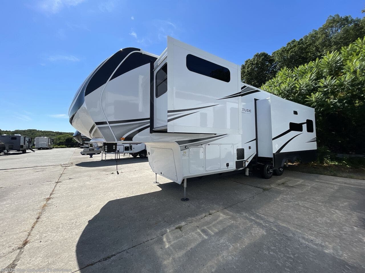 Each Solitude fifth wheel by Grand Design features a 101" wide-body construction, heavy duty 8,000 lb. axles, frameless tinted windows, and high-gloss gel coat sidewalls. You can camp year around thanks to the Weather-Tek Package that includes a 35K BTU high-capacity furnace, an all-in-one enclosed and heated utility center, and a fully enclosed underbelly with heated tanks and storage. Inside, you'll love the premium roller shades, hardwood cabinet doors, solid surface countertops, plus residential finishes throughout to make you truly feel at home. Each model also includes a MORryde CRE3000 suspension system, self adjusting brakes, and a MORryde pin box that will provide smooth towing from home to campground. Affordable luxury is possible with the Solitude fifth wheels; choose yours today!