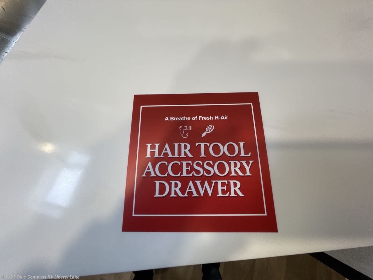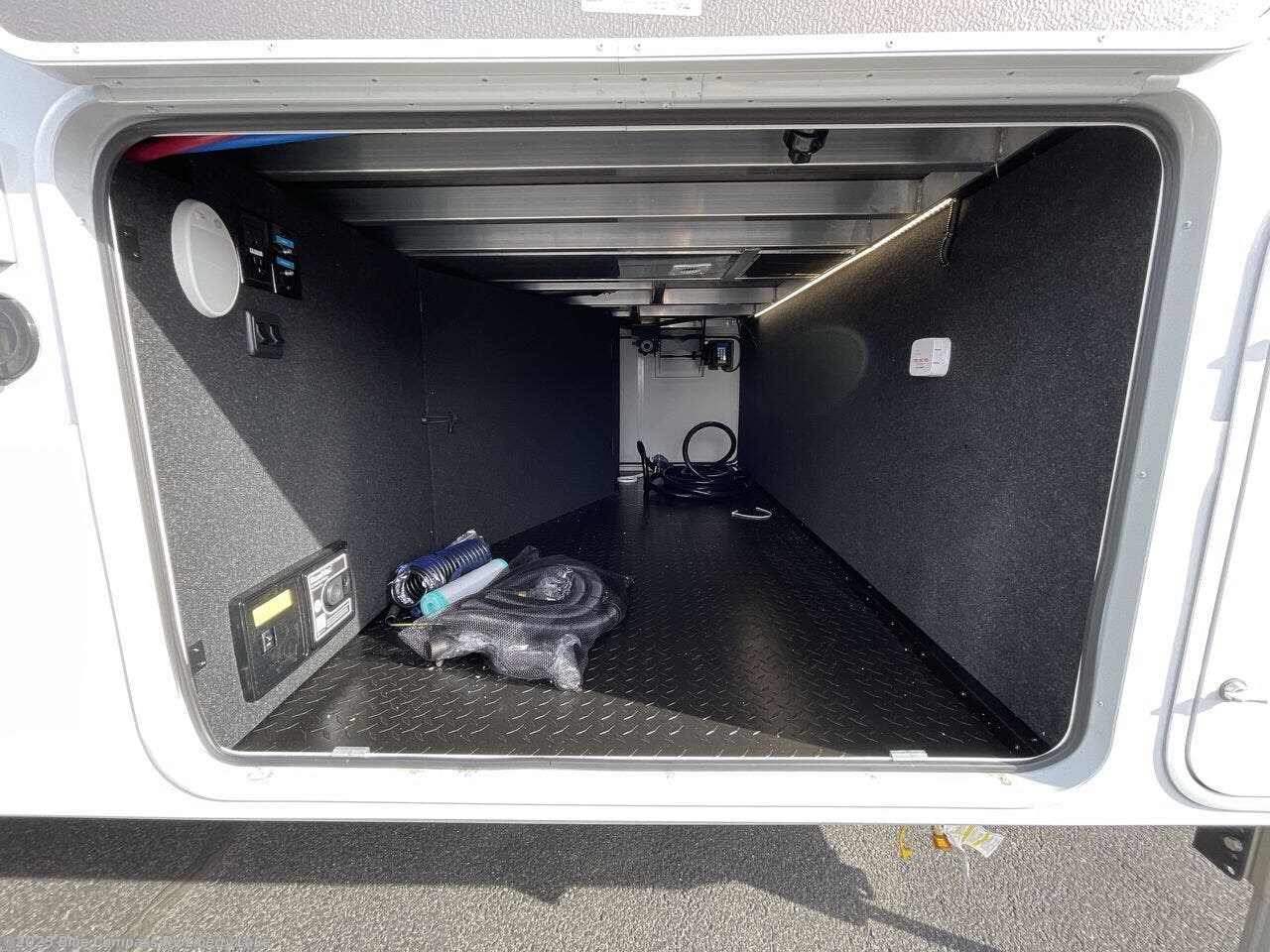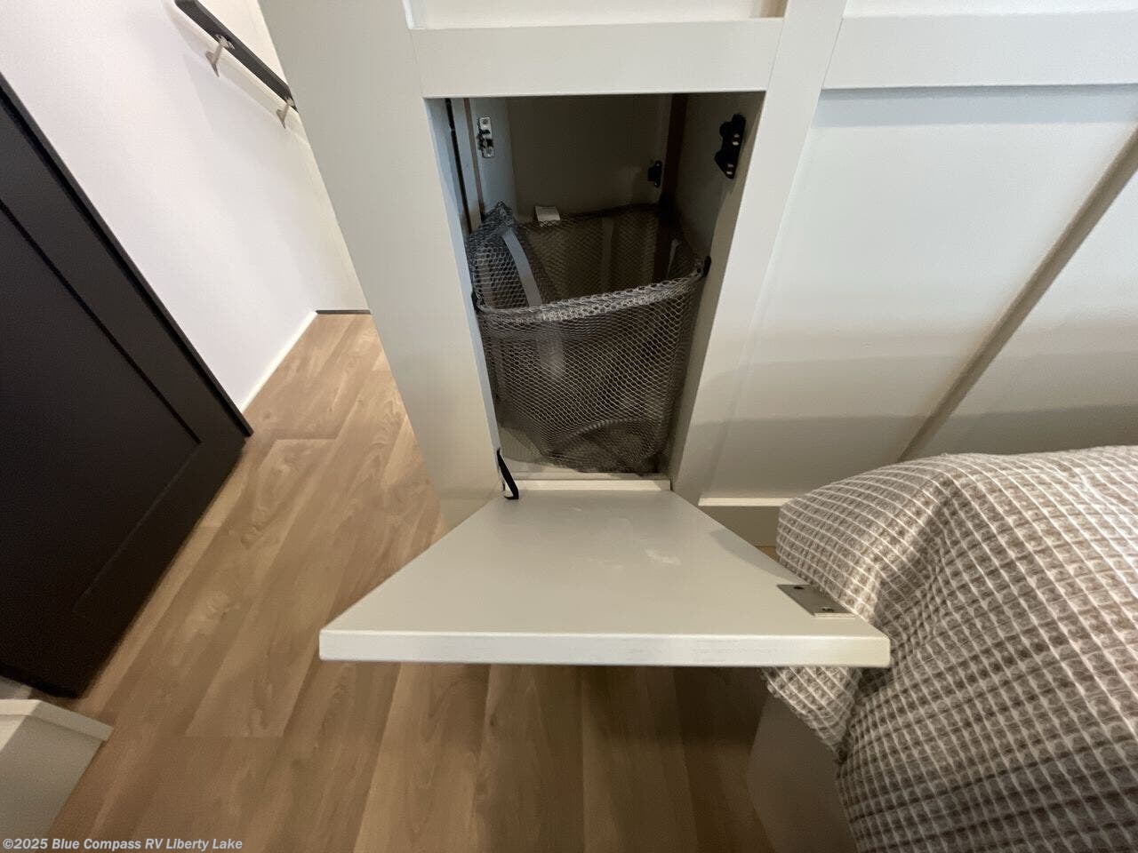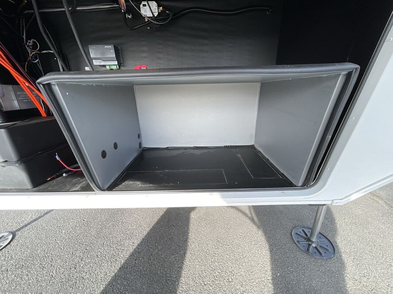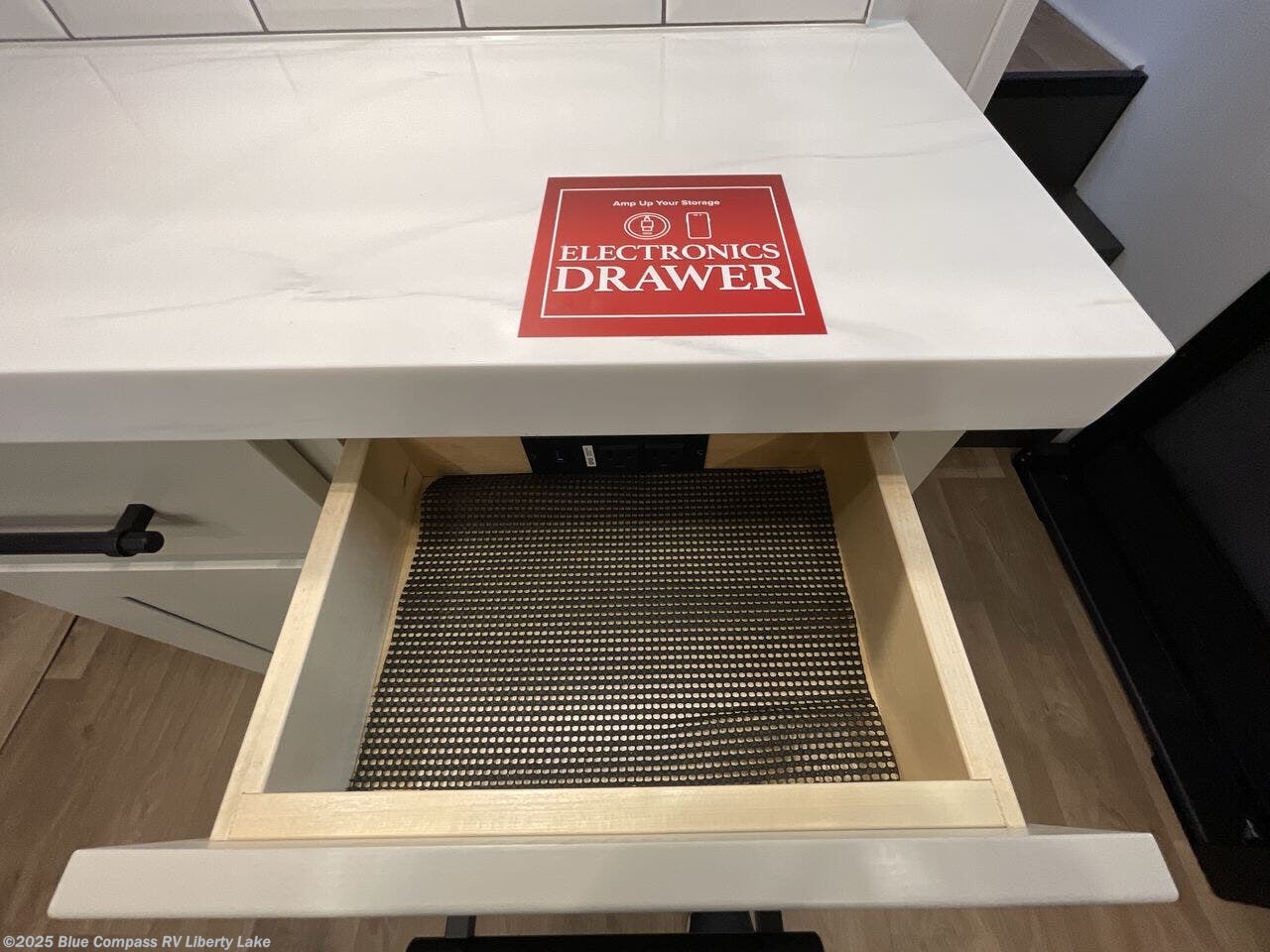 Traveling for long periods at a time is made easy with this gourmet kitchen that can feed your entire group a holiday meal! The professional-grade stainless steel cooktop with a built-in oven, microwave, 12V 20 cu. ft. refrigerator, and a kitchen island offers everything you will need to enjoy cooking for your family and guests. There is abundant storage throughout multiple overhead cabinets, a kitchen pantry and hutch, a bath linen cabinet for your towels, and in the front master bedroom which features a large closet. In the bedroom there is also a queen bed slide for added space to sleep comfortable at night, or you may choose an optional king bed if you enjoy more space. You will also find a closet with washer/dryer prep, large wardrobe, a clothes hamper plus a slide top dresser. Two nice awnings will provide outdoor living space keeping you protected from the sun and rain, and you can add an optional pull-out kitchen to enjoy convenient cooking outdoors as well.