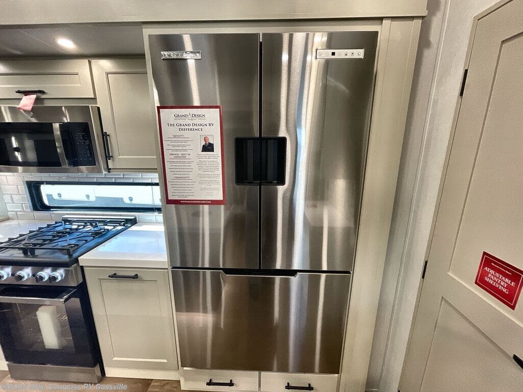 Each Solitude fifth wheel by Grand Design features a 101" wide-body construction, heavy duty 8,000 lb. axles, frameless tinted windows, and high-gloss gel coat sidewalls. You can camp year around thanks to the Weather-Tek Package that includes a 35K BTU high-capacity furnace, an all-in-one enclosed and heated utility center, and a fully enclosed underbelly with heated tanks and storage. Inside, you'll love the premium roller shades, hardwood cabinet doors, solid surface countertops, plus residential finishes throughout to make you truly feel at home. Each model also includes a MORryde CRE3000 suspension system, self adjusting brakes, and a MORryde pin box that will provide smooth towing from home to campground. Affordable luxury is possible with the Solitude fifth wheels; choose yours today!