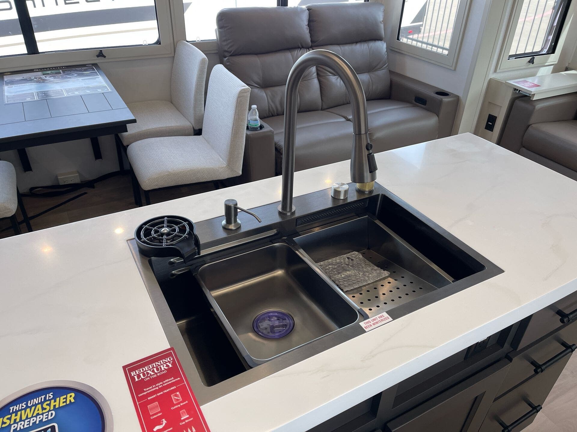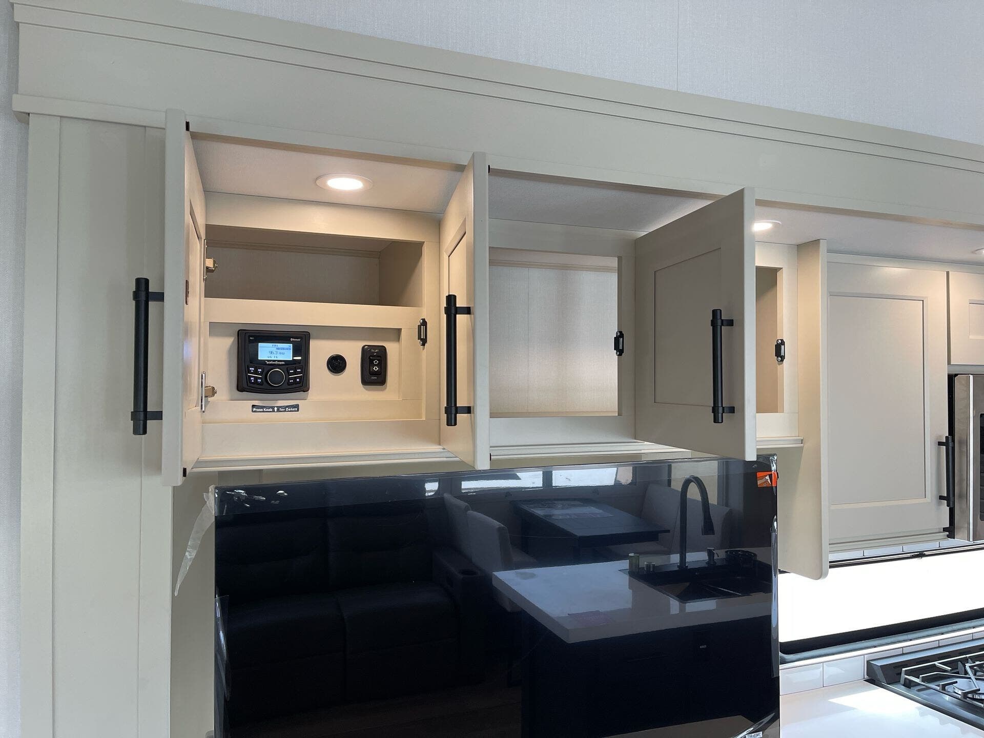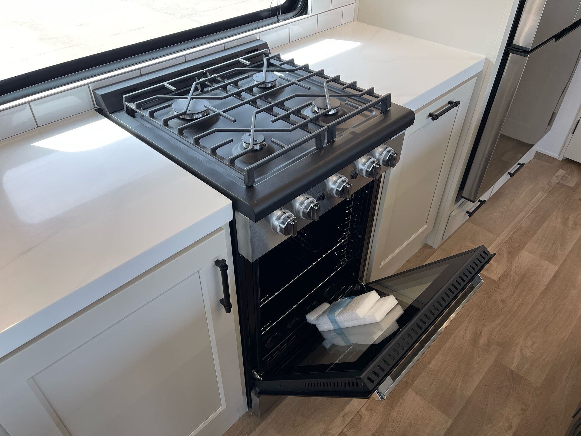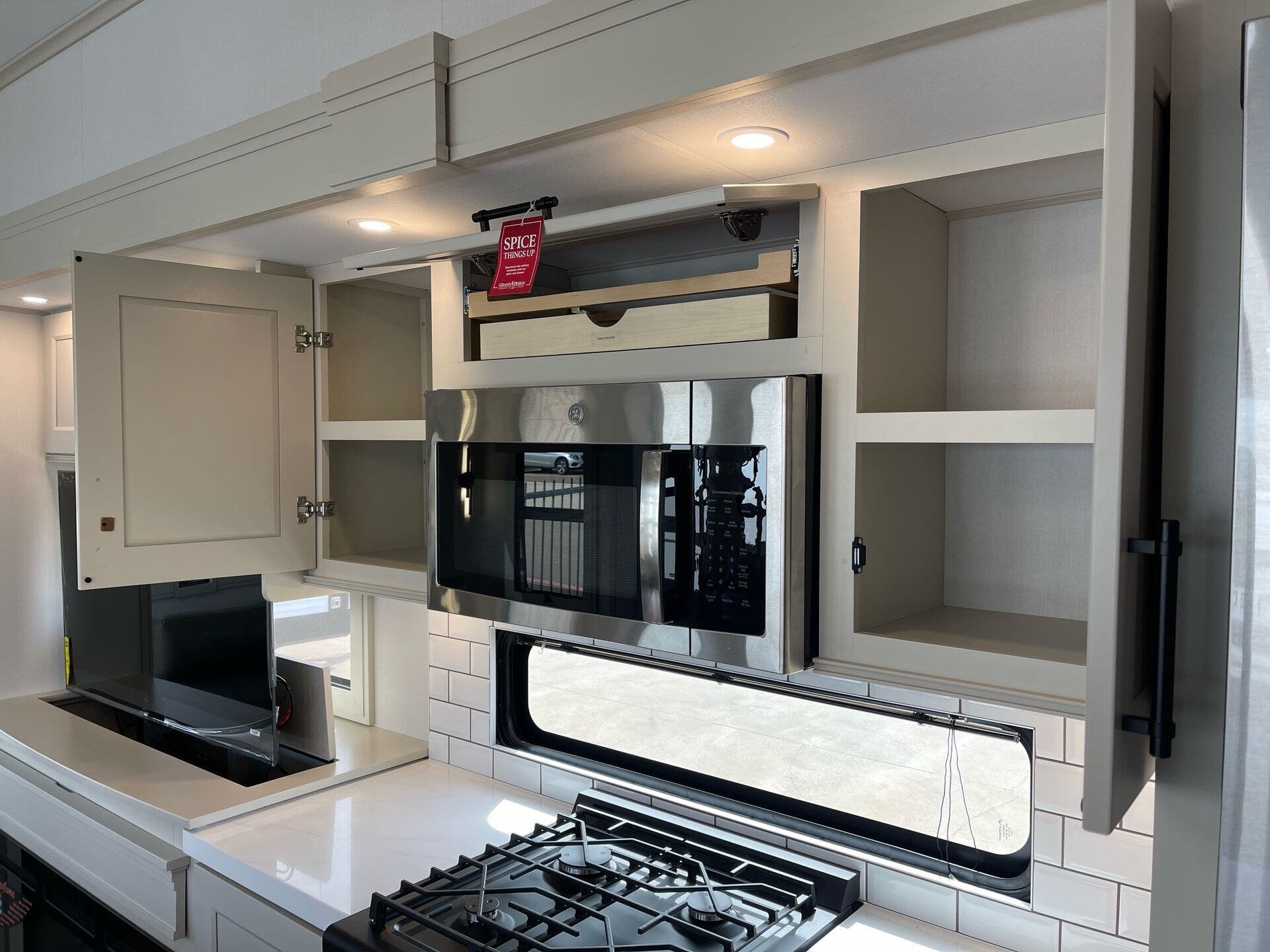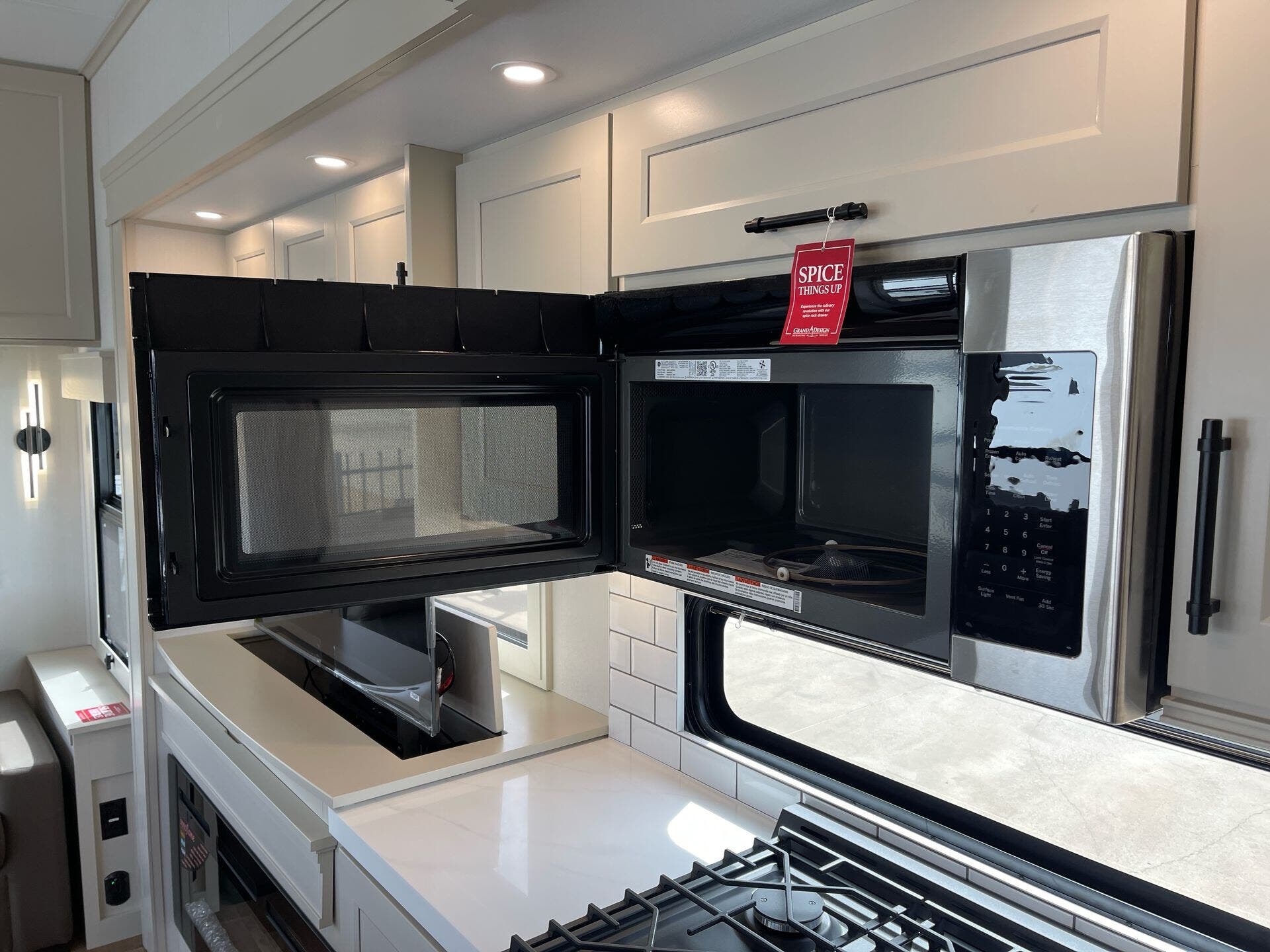 - Residential-style amenities including a full kitchen with Dishwasher, Microwave, Oven, and Stove for easy meal prep on the road.