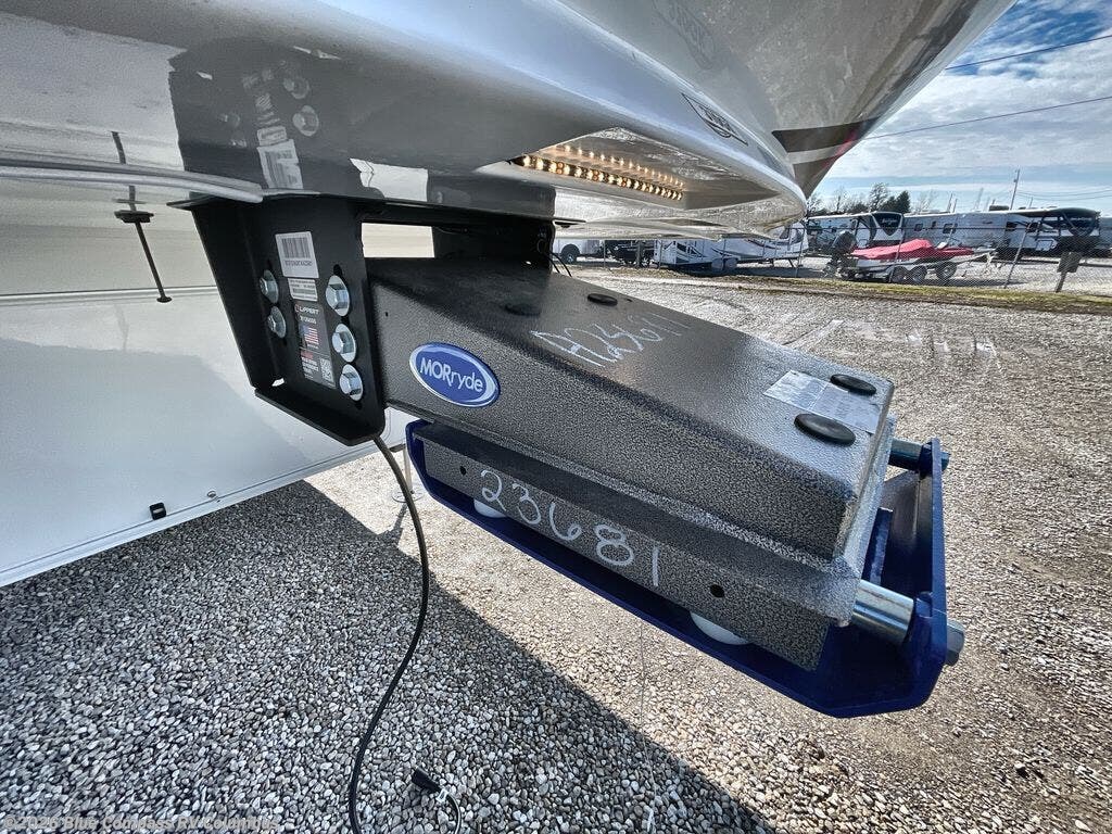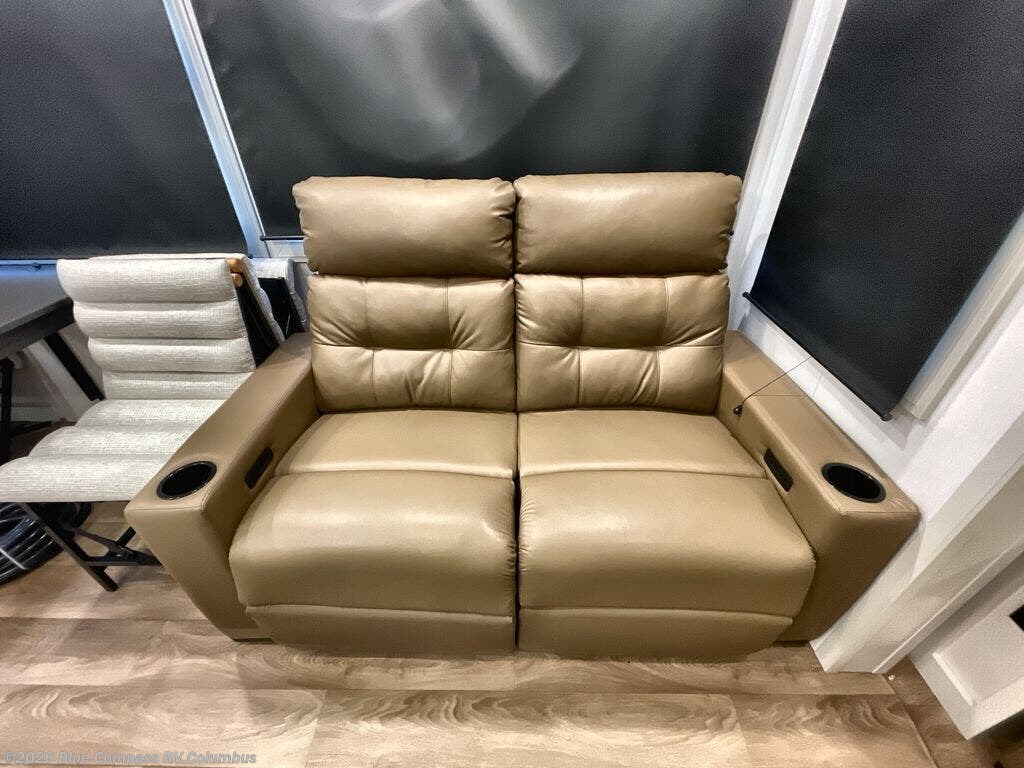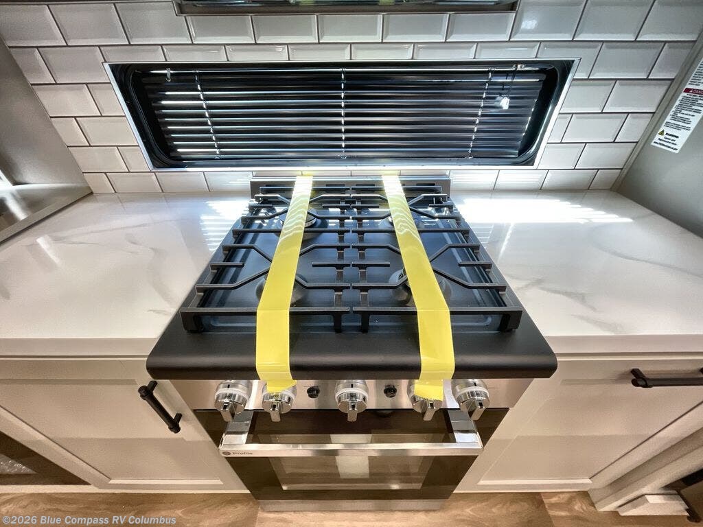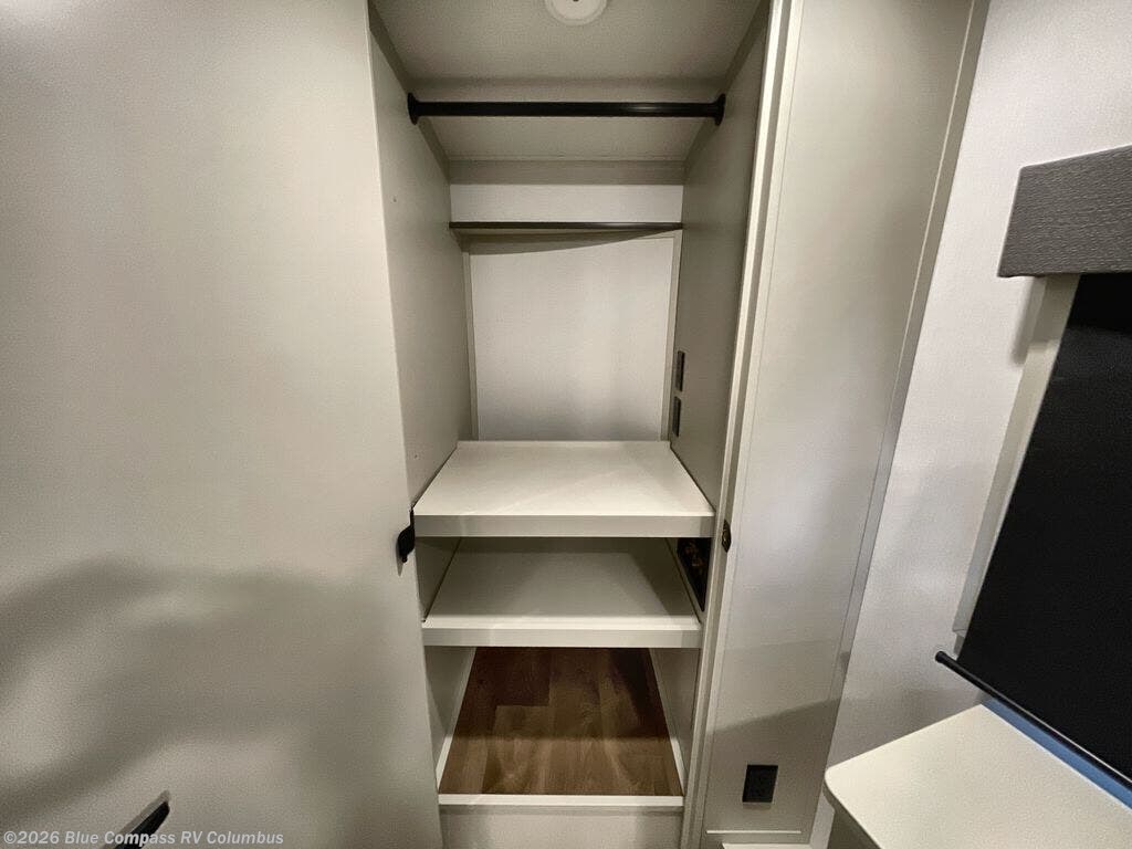 Traveling for long periods at a time is made easy with this gourmet kitchen that can feed your entire group a holiday meal! The professional-grade stainless steel cooktop with a built-in oven, microwave, 20 cu. ft. refrigerator, and a kitchen island offers everything you will need to enjoy cooking for your family and guests. There is abundant storage throughout multiple overhead cabinets, a kitchen pantry and a bath linen cabinet for your towels, and in the front master bedroom which features a large closet. In the bedroom there is also a queen bed slide for added space to sleep comfortable at night, or you may choose an optional king bed if you enjoy more space. You will also find a closet with washer/dryer prep, large wardrobe, clothes hamper plus a slide top dresser. Two nice awnings will provide outdoor living space keeping you protected from the sun and rain, and you can add an optional pull-out kitchen to enjoy convenient cooking outdoors as well.