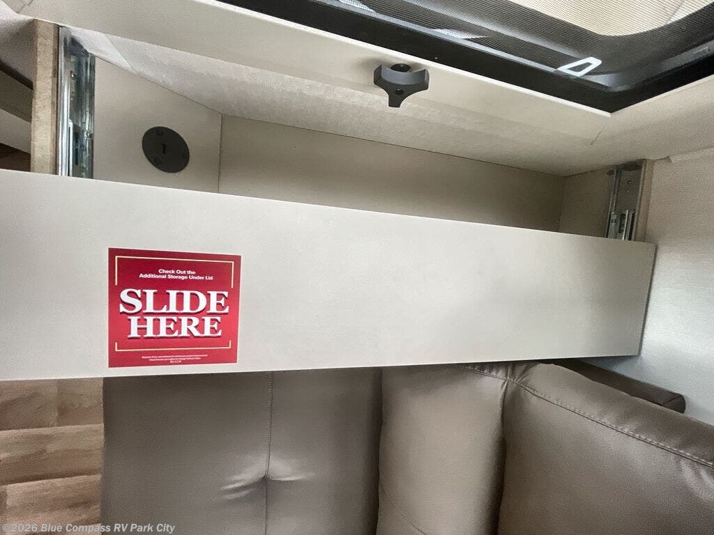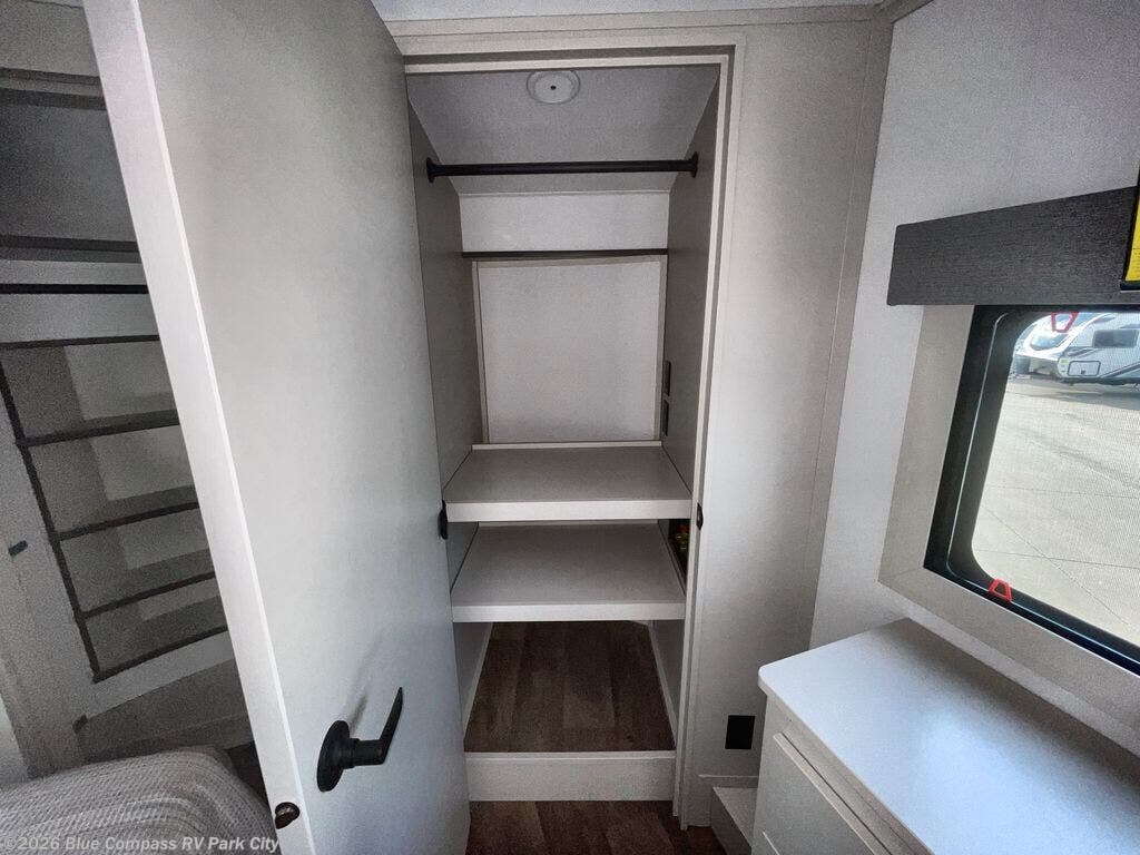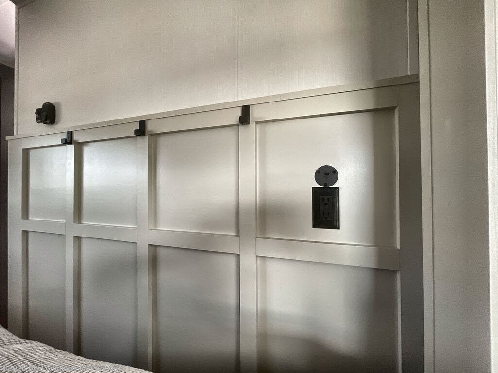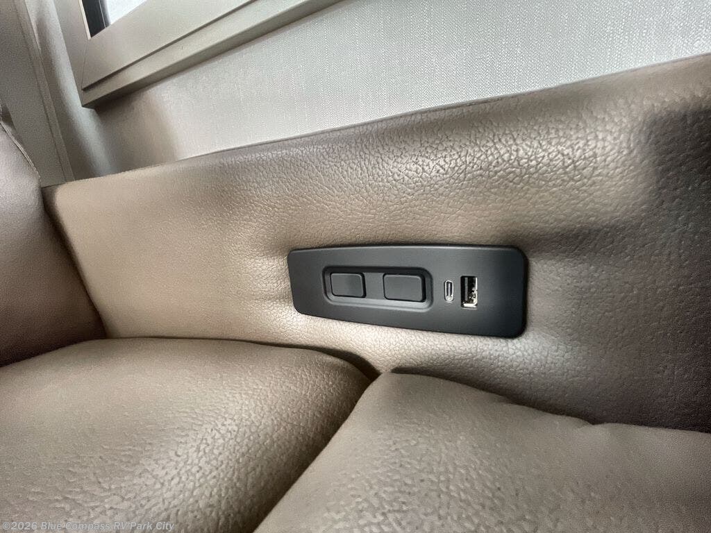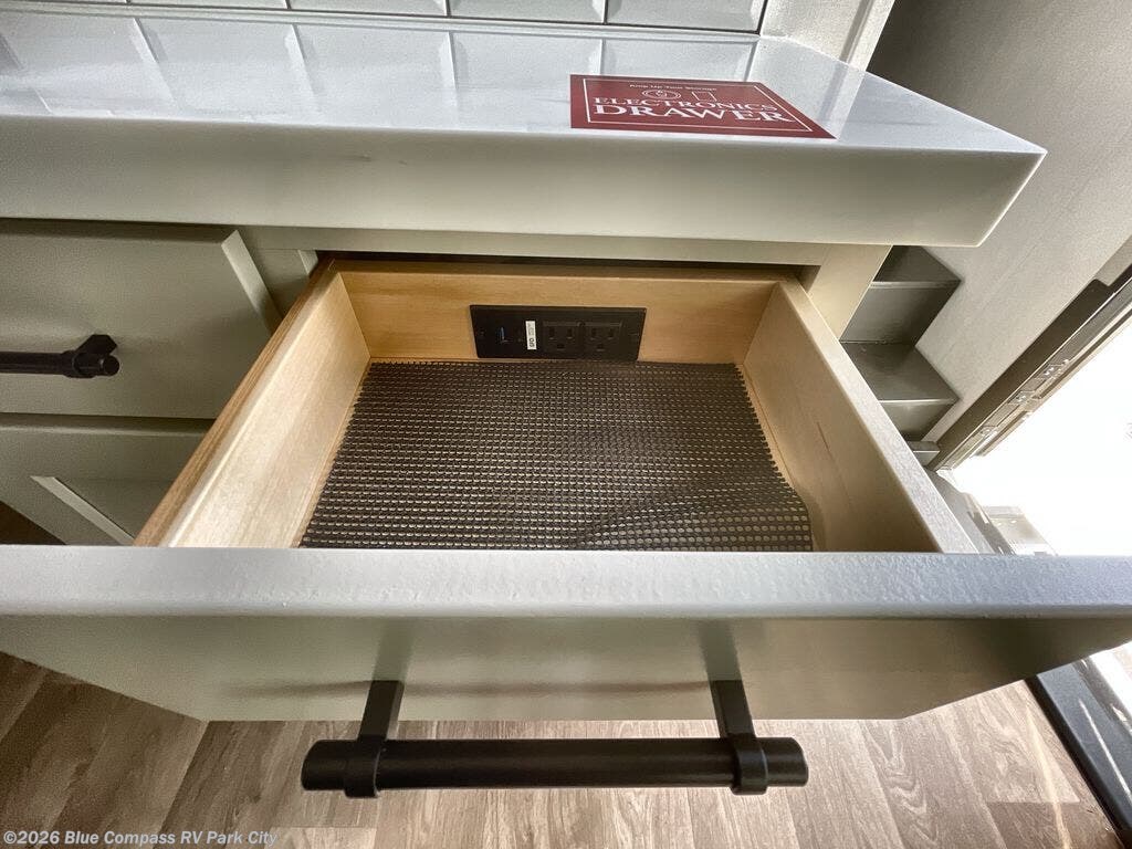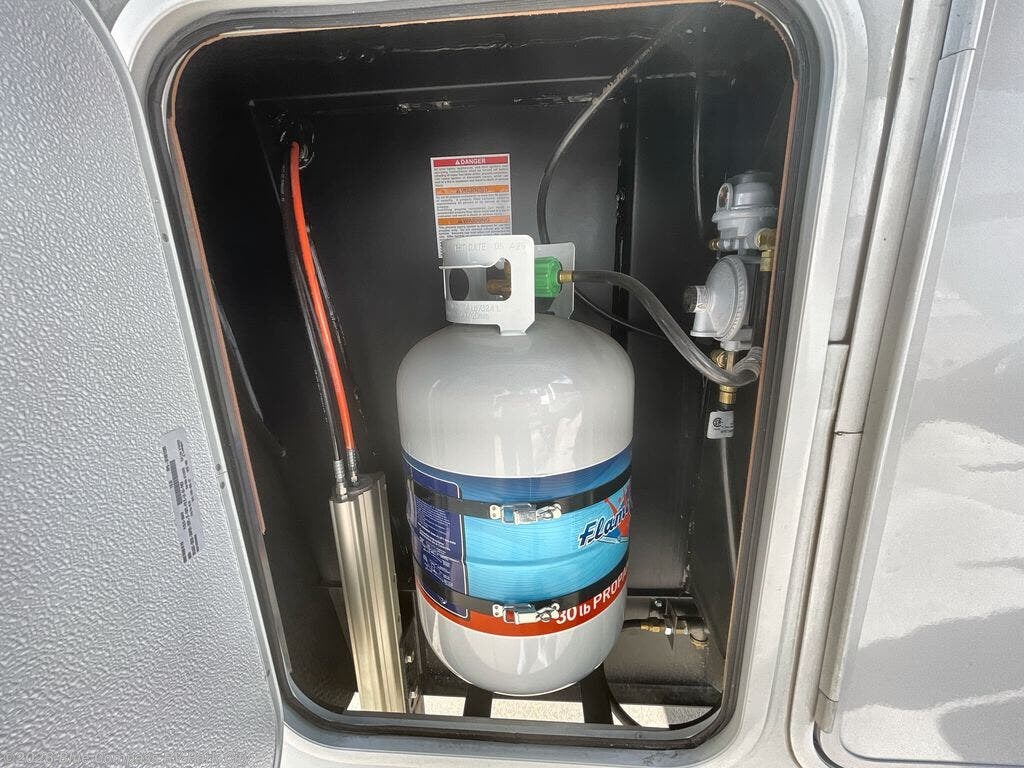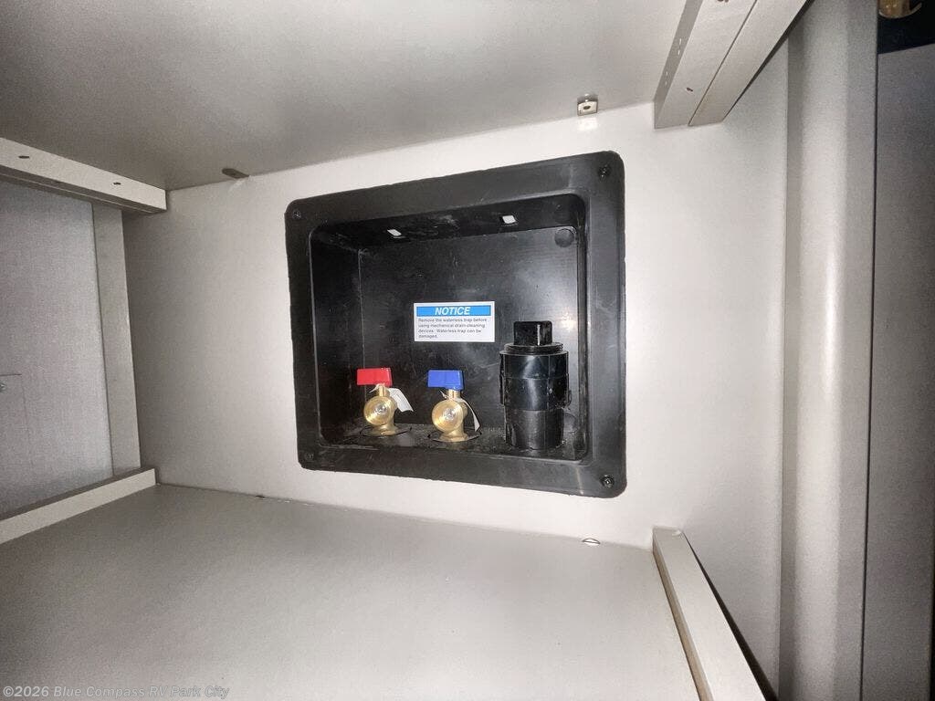 Traveling for long periods at a time is made easy with this gourmet kitchen that can feed your entire group a holiday meal! The professional-grade stainless steel cooktop with a built-in oven, microwave, 12V 20 cu. ft. refrigerator, and a kitchen island offers everything you will need to enjoy cooking for your family and guests. There is abundant storage throughout multiple overhead cabinets, a kitchen pantry and hutch, a bath linen cabinet for your towels, and in the front master bedroom which features a large closet. In the bedroom there is also a queen bed slide for added space to sleep comfortable at night, or you may choose an optional king bed if you enjoy more space. You will also find a closet with washer/dryer prep, large wardrobe, a clothes hamper plus a slide top dresser. Two nice awnings will provide outdoor living space keeping you protected from the sun and rain, and you can add an optional pull-out kitchen to enjoy convenient cooking outdoors as well.