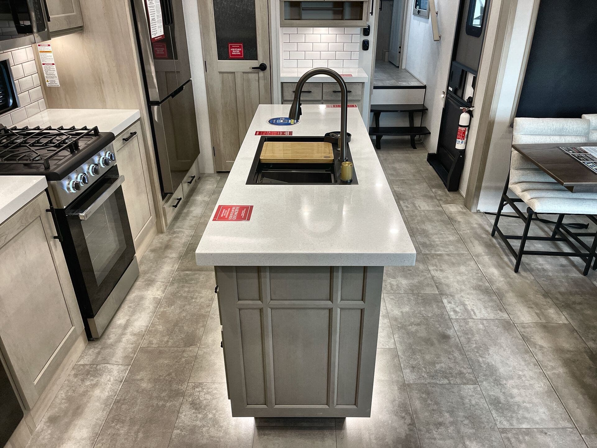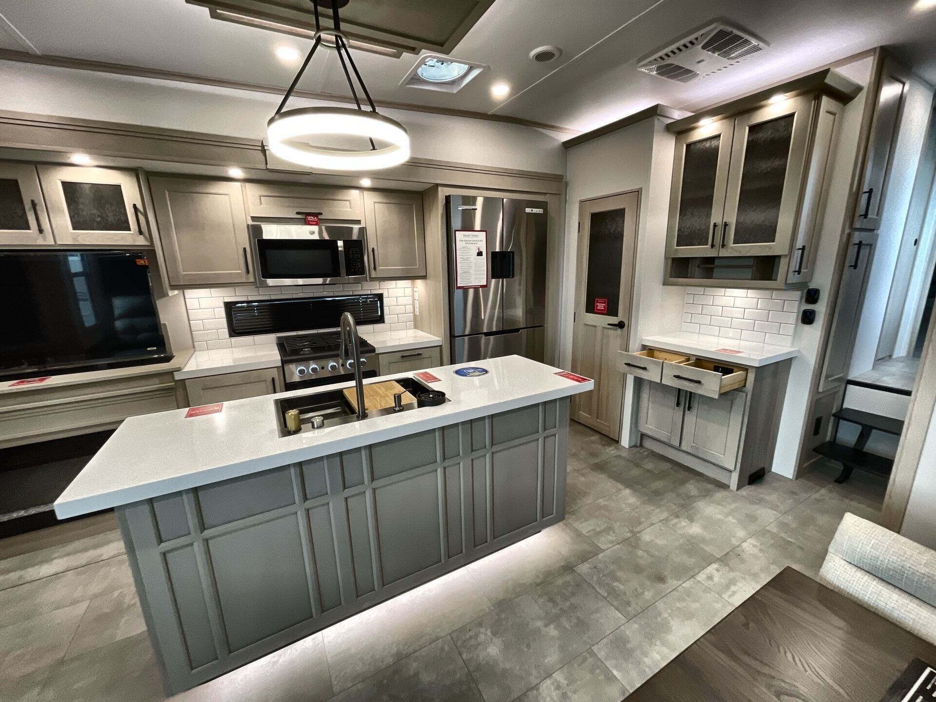Free Standing Dinette w/Chairs, Island Kitchen, Kitchen Sink, Pantry, Shower, Sofa Bed, Washer/Dryer Prep