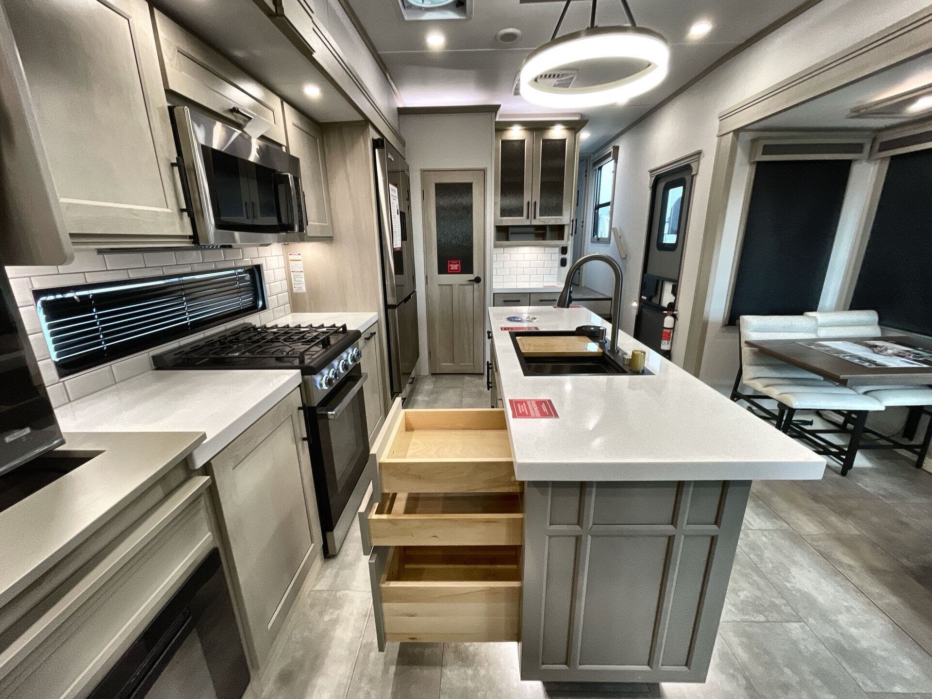 Discover luxury on the road with the 2026 Grand Design Solitude 370DV, a top-tier towable RV designed for extended adventures. This new fifth wheel blends residential comfort with rugged reliability, delivering a versatile floorplan that suits couples and families seeking spacious living, advanced amenities, and off-grid capability. With a robust GVWR, generous freshwater capacity, and a modern galley, this Solitude model stands out among travel trailers and fifth wheels alike.