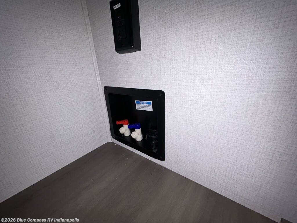 Five slide outs, a full bathroom with dual sinks, a half bath off of the kitchen, and a separate front living room and entertainment area are a few reasons you will enjoy your time spent in this fifth wheel! The separate kitchen is a dream with stainless steel appliances including a built-in oven, a pantry and hutch with counter space, a kitchen island plus a free-standing dinette slide with windows for great views. The entertainment center offers an LED Smart TV with a fireplace below and storage, and the dual opposing tri-fold sofas provide added sleeping space at night. The master bedroom includes a queen bed plus space savings sliding doors that lead you to the rear full bathroom with dual sinks, linen storage, and washer/dryer prep. The exterior has several storage choices as well including a pass-through compartment for fishing poles and such, plus the unique sliding tray in the rear allows you to bring along larger items such as camping tables, portable grills, golf clubs, totes and more.