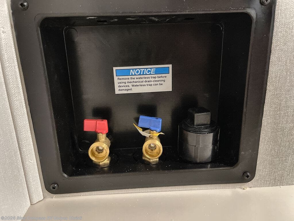 Five slide outs, a full bathroom with dual sinks, a half bath off of the kitchen, and a separate front living room and entertainment area are a few reasons you will enjoy your time spent in this fifth wheel! The separate kitchen is a dream with stainless steel appliances including a built-in oven, a pantry and hutch with counter space, a kitchen island plus a free-standing dinette slide with windows for great views. The entertainment center offers an LED Smart TV with a fireplace below and storage, and the dual opposing tri-fold sofas provide added sleeping space at night. The master bedroom includes a queen bed plus space savings sliding doors that lead you to the rear full bathroom with dual sinks, linen storage, and washer/dryer prep. The exterior has several storage choices as well including a pass-through storage compartment for fishing poles and such, plus the unique sliding tray in the rear allows you to bring along larger items such as camping tables, portable grills, golf clubs, totes and more.