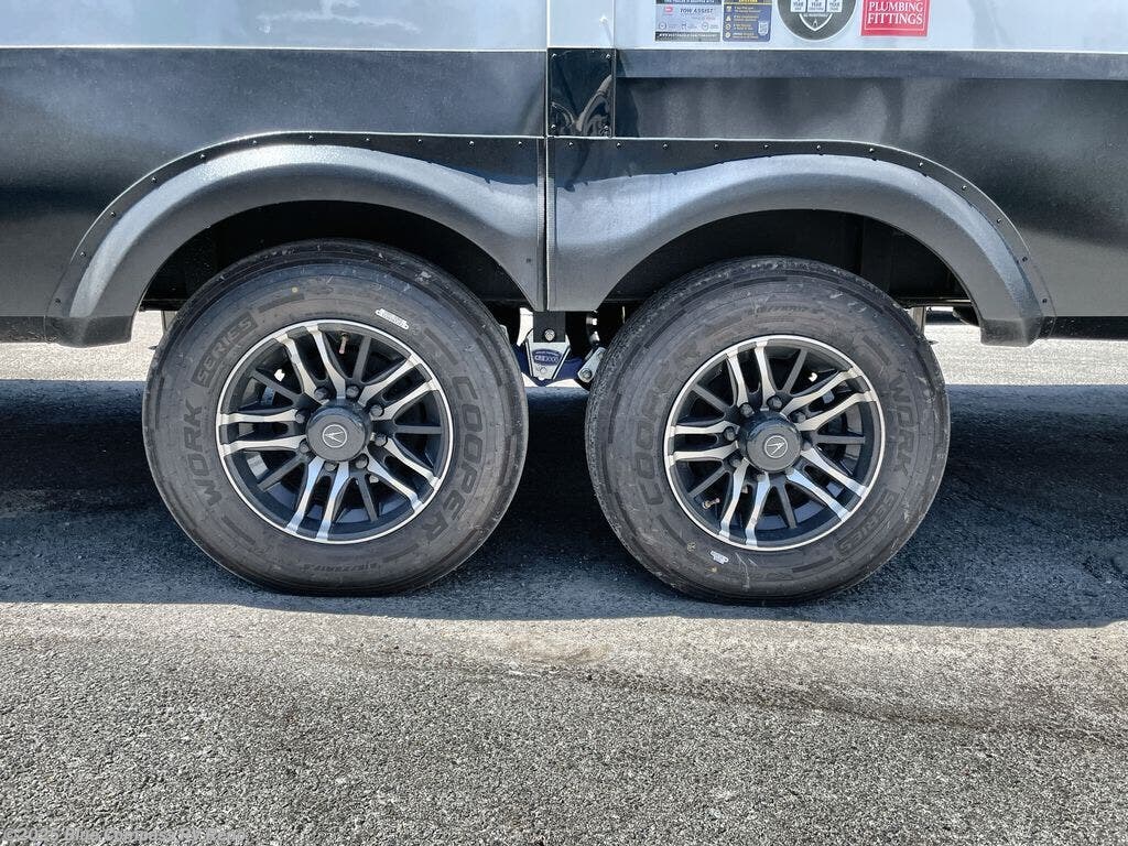 Each Solitude fifth wheel by Grand Design features a 101" wide-body construction, heavy duty 8,000 lb. axles, frameless tinted windows, and high-gloss gel coat sidewalls. You can camp year around thanks to the Weather-Tek Package that includes a 35K BTU high-capacity furnace, an all-in-one enclosed and heated utility center, and a fully enclosed underbelly with heated tanks and storage. Inside, you'll love the premium roller shades, hardwood cabinet doors, solid surface countertops, plus residential finishes throughout to make you truly feel at home. Each model also includes a MORryde CRE3000 suspension system, self adjusting brakes, and a MORryde pin box that will provide smooth towing from home to campground. Affordable luxury is possible with the Solitude fifth wheels; choose yours today!