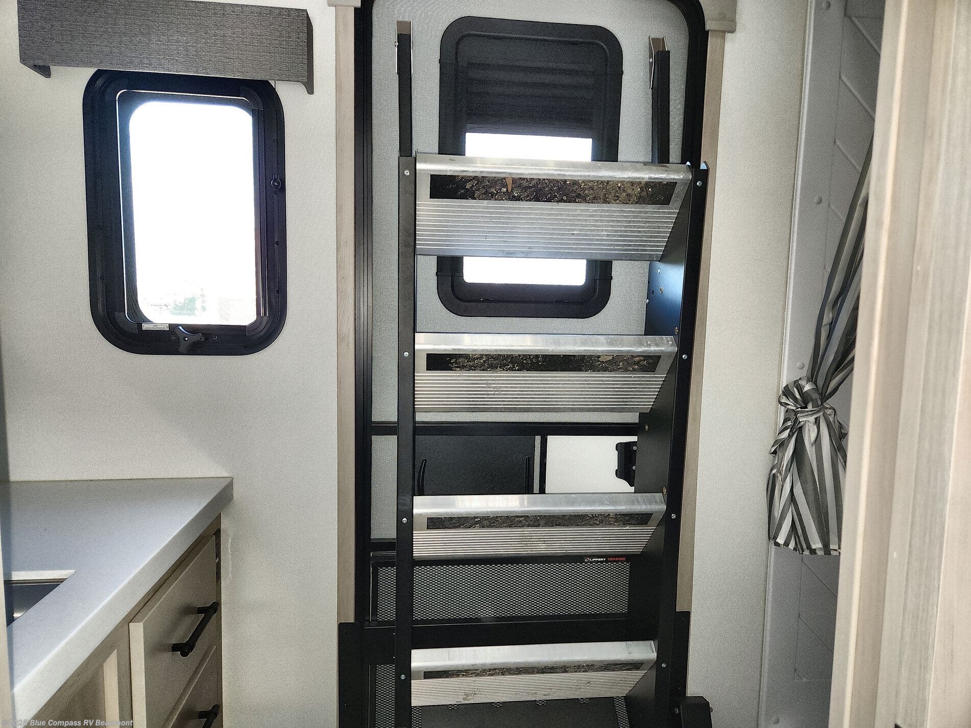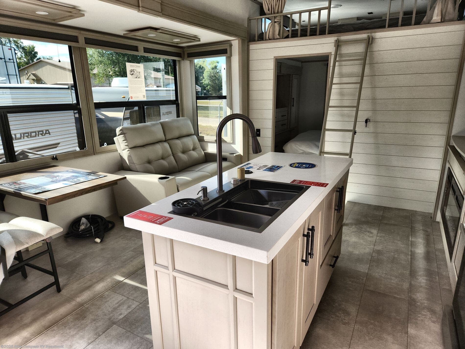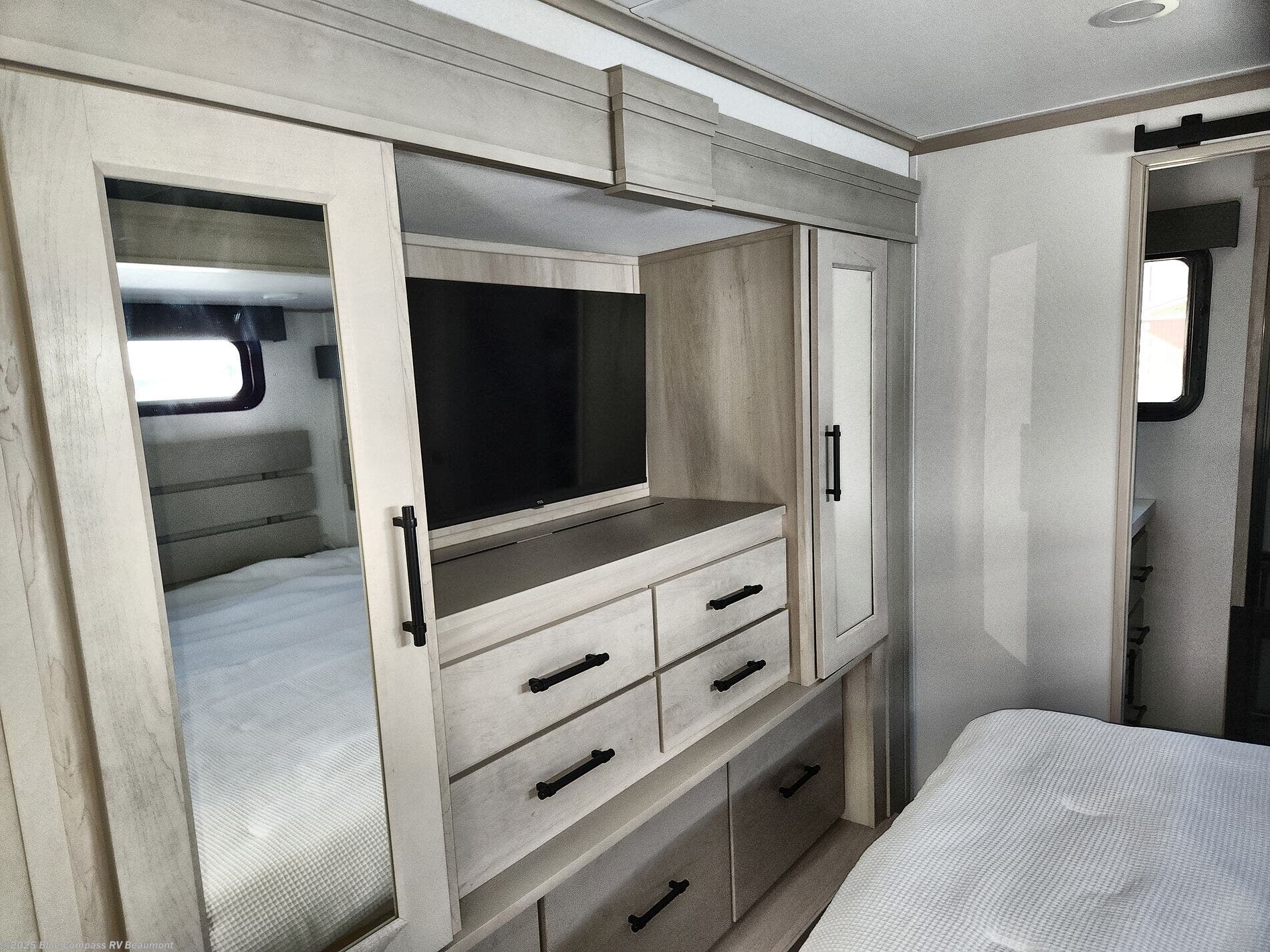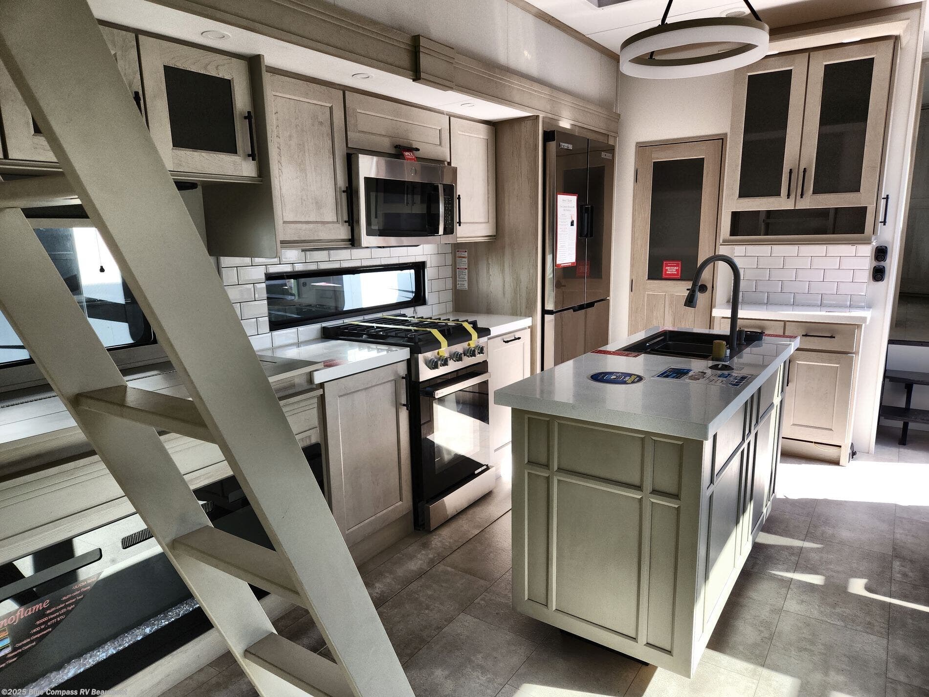 For an affordable luxury extended stay for your family, this Solitude is it! Two private bedrooms plus an overhead Sky Suite loft above the rear bedroom which also has it's own private rear entry/exit door is just the beginning of what is in store for your camping convenience. The upscale kitchen features an island with dishwasher prep, a smart sink, a 12V 20 cu. ft. refrigerator for your perishables, and a built-in oven. There is also a microwave, pantry, and hutch for your dishes, plus a free standing dinette! You can easily take along extra family and friends with the second private bedroom featuring it's own private bath and entry which is great for another couple, and there is even loft space above this rear private bedroom for added storage or sleeping for children. And, you will find ample storage for clothing and belongings throughout with nice size closets, overhead cabinets, plus loads of outside storage.