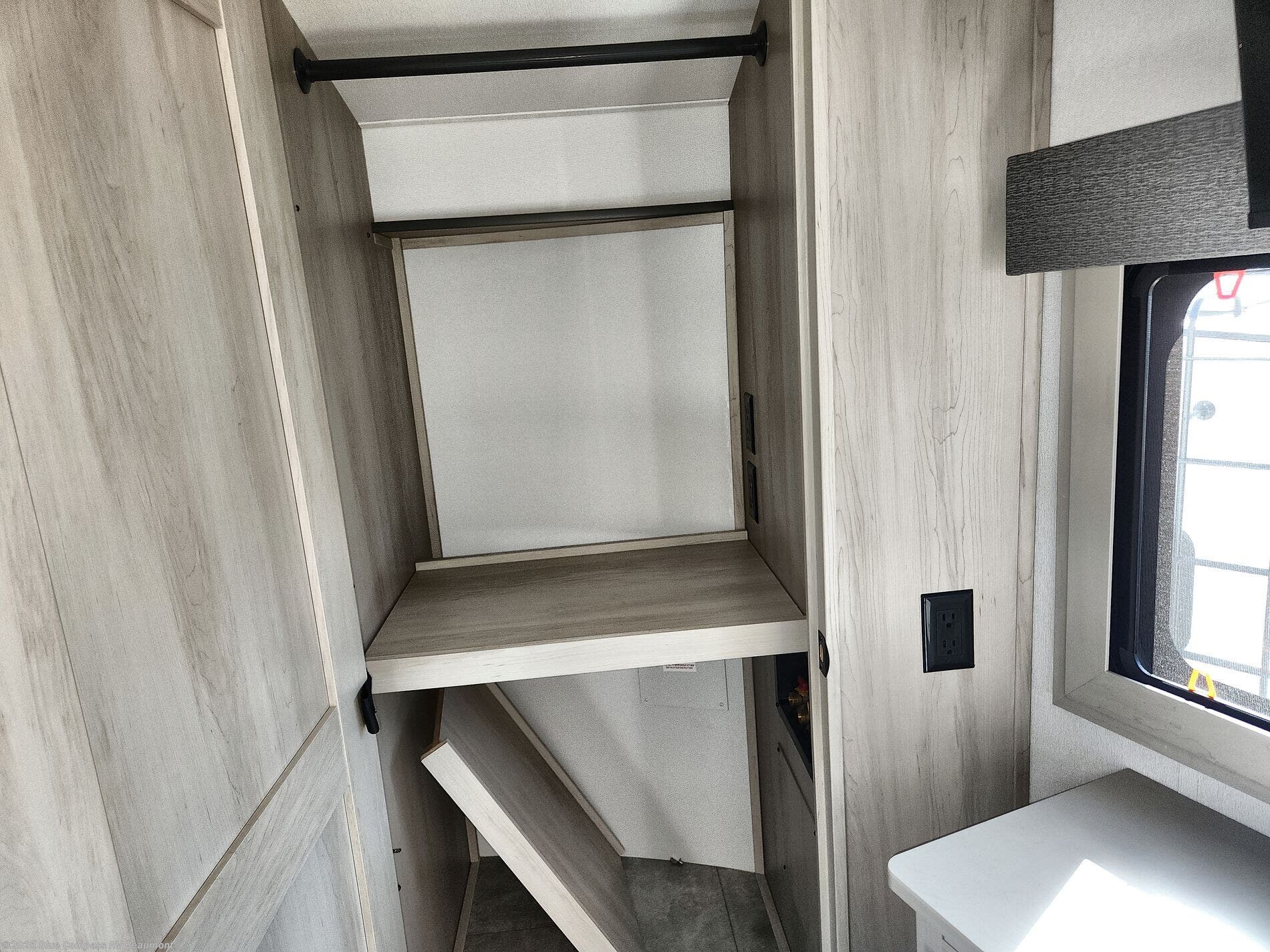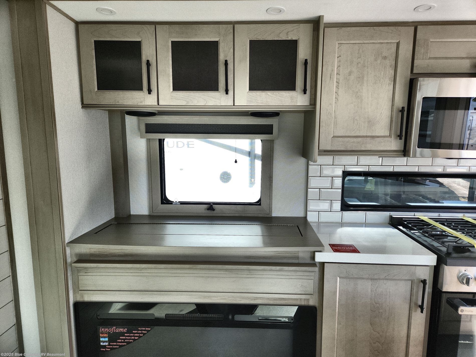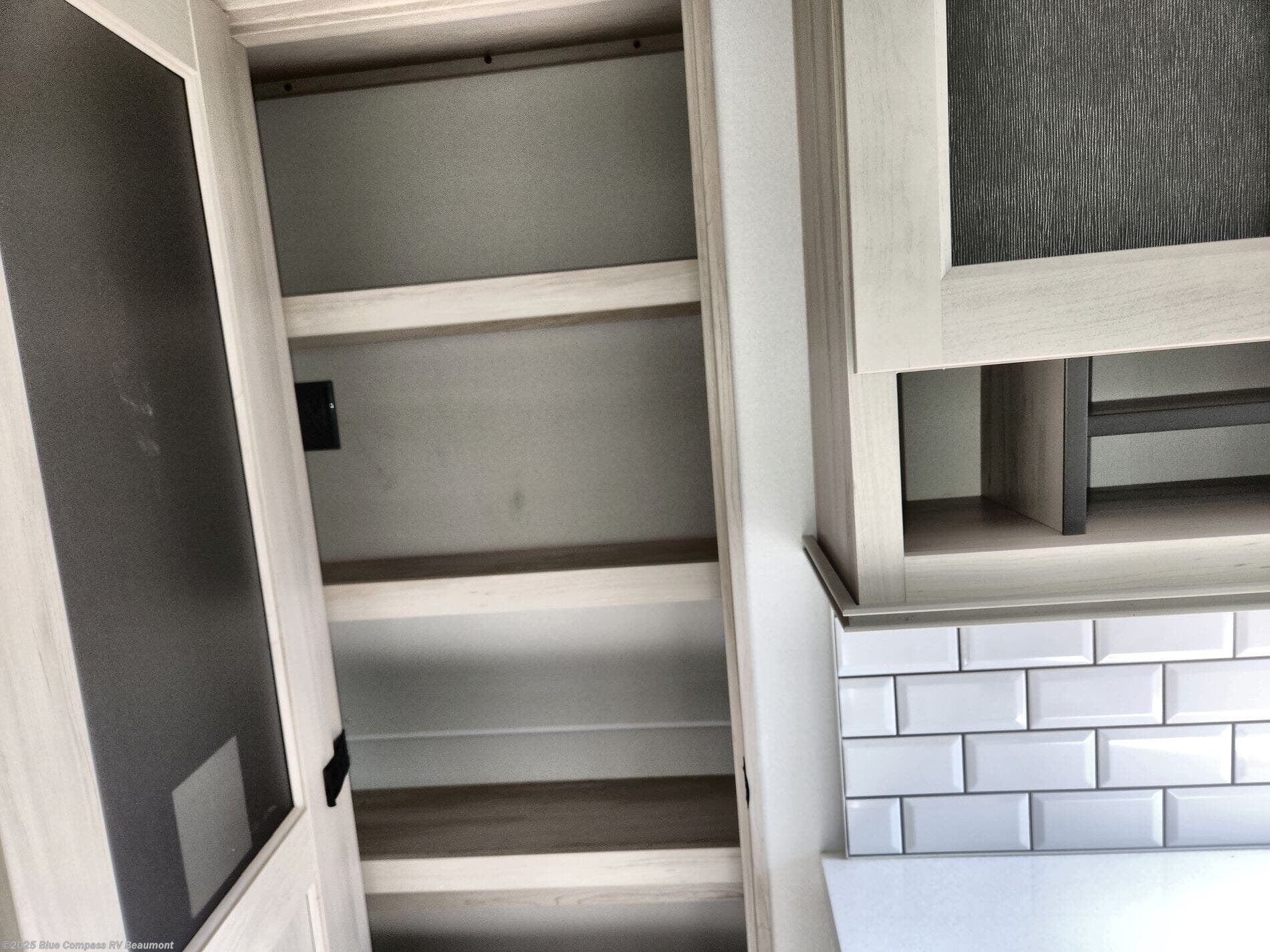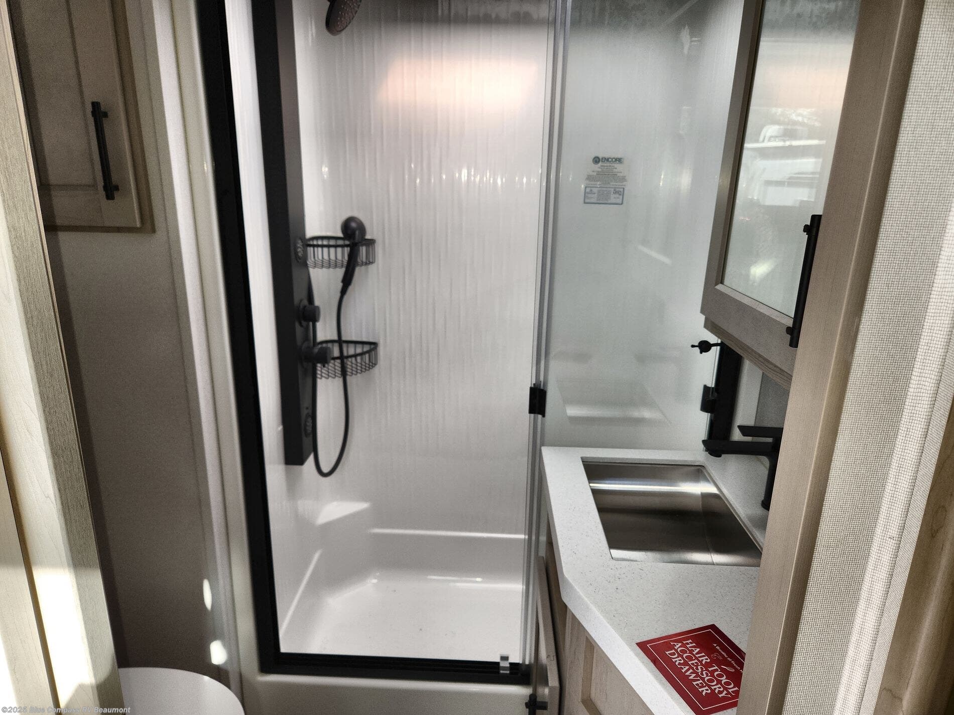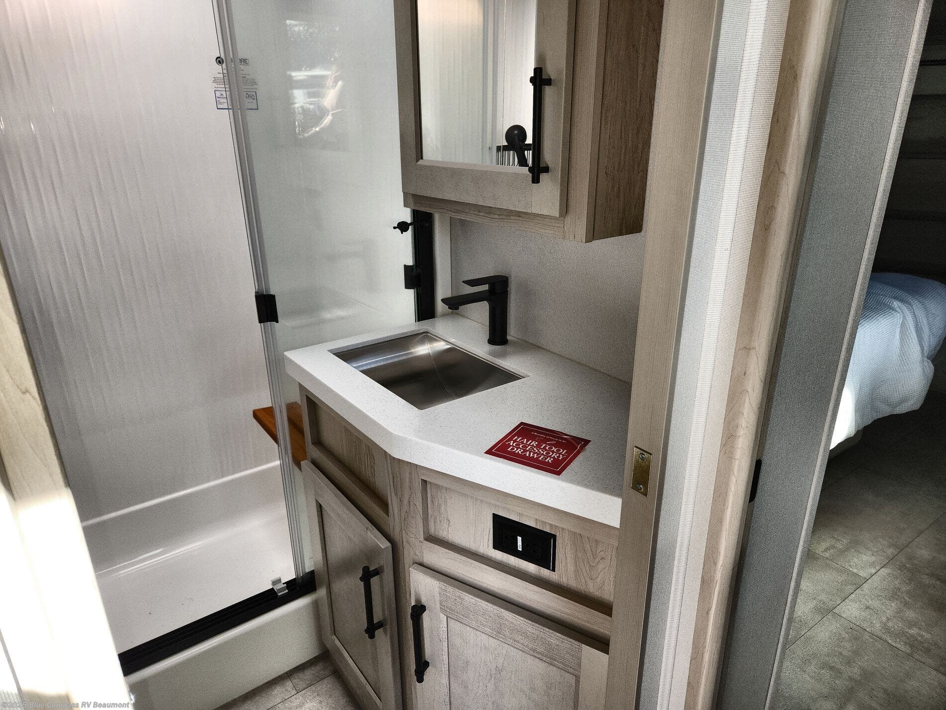 For an affordable luxury extended stay for your family, this Solitude is it! Two private bedrooms plus an overhead Sky Suite loft above the rear bedroom which also has it's own private rear entry/exit door is just the beginning of what is in store for your camping convenience. The upscale kitchen features an island with dishwasher prep, a smart sink, a 12V 20 cu. ft. refrigerator for your perishables, and a built-in oven. There is also a microwave, pantry, and hutch for your dishes, plus a free standing dinette! You can easily take along extra family and friends with the second private bedroom featuring it's own private bath and entry which is great for another couple, and there is even loft space above this rear private bedroom for added storage or sleeping for children. And, you will find ample storage for clothing and belongings throughout with nice size closets, overhead cabinets, plus loads of outside storage.